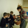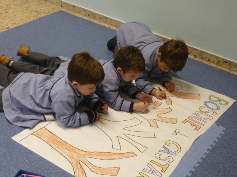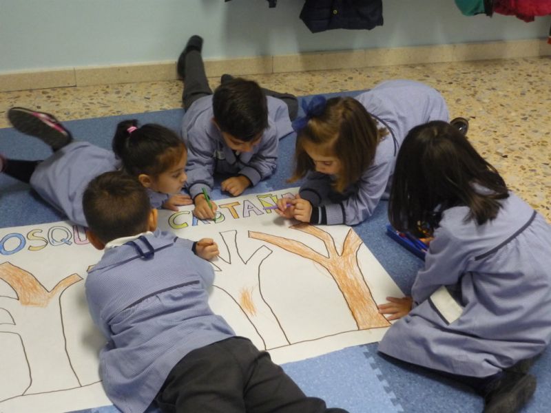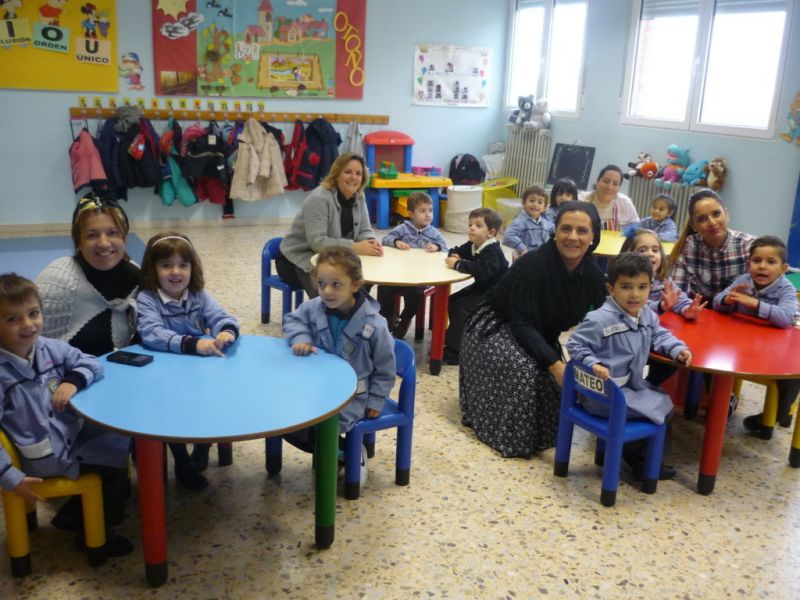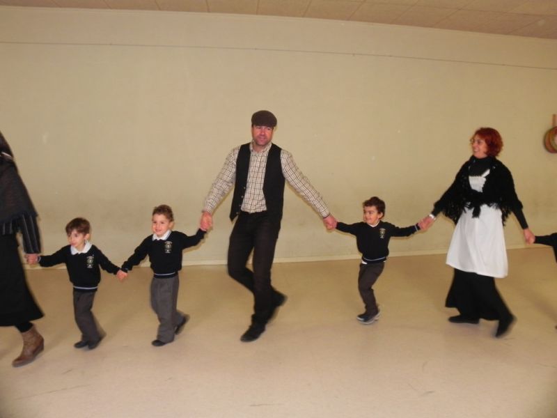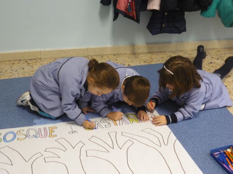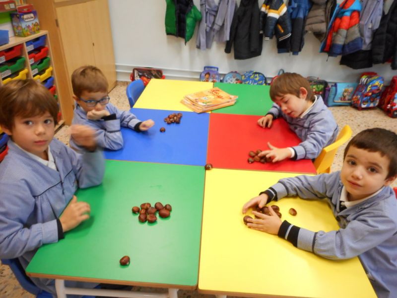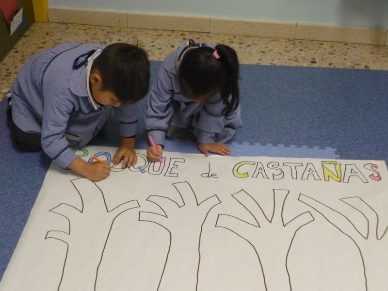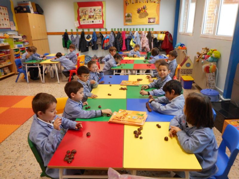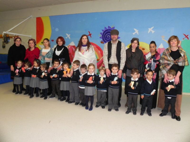 Esta mañana otoñal la hemos dedicado a la fiesta de las castañas, este fruto tan bueno que recogemos en esta época del año. Nuestras mamás y un papá de educación infantil estaban guapísimas ataviadas con sus faldas largas, chales, pañuelos y delantales, irradiaban felicidad al ver cómo sus pequeños, en las clases, les entregaban las castañas para asarlas.