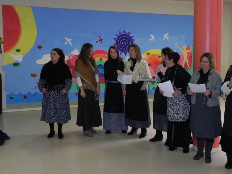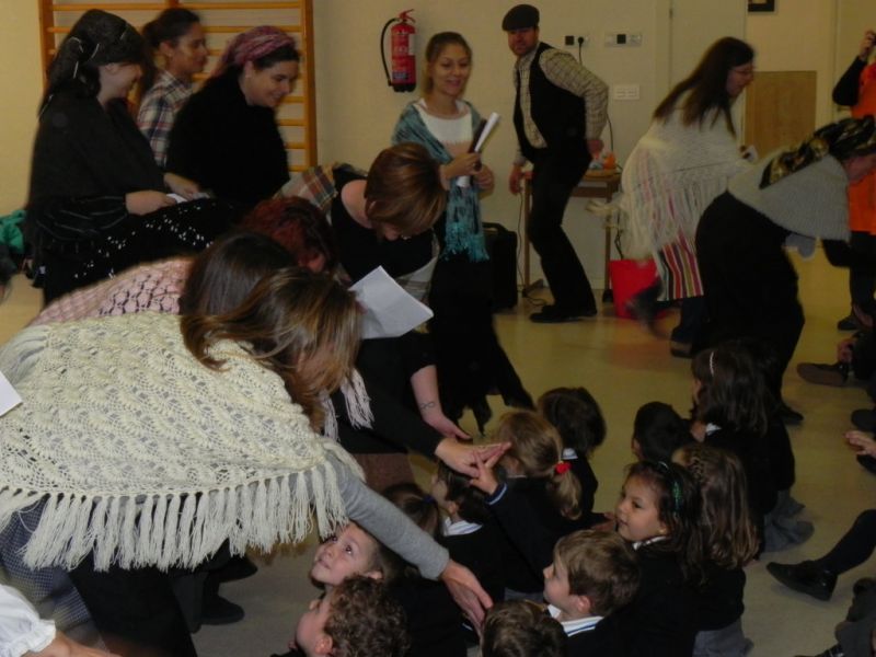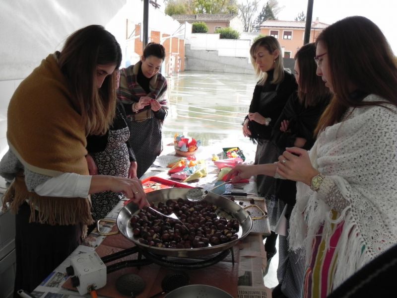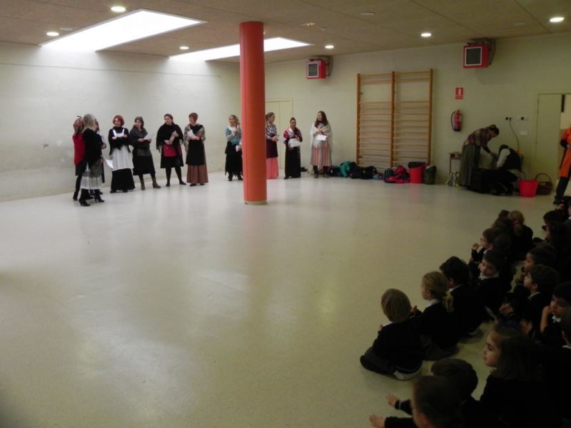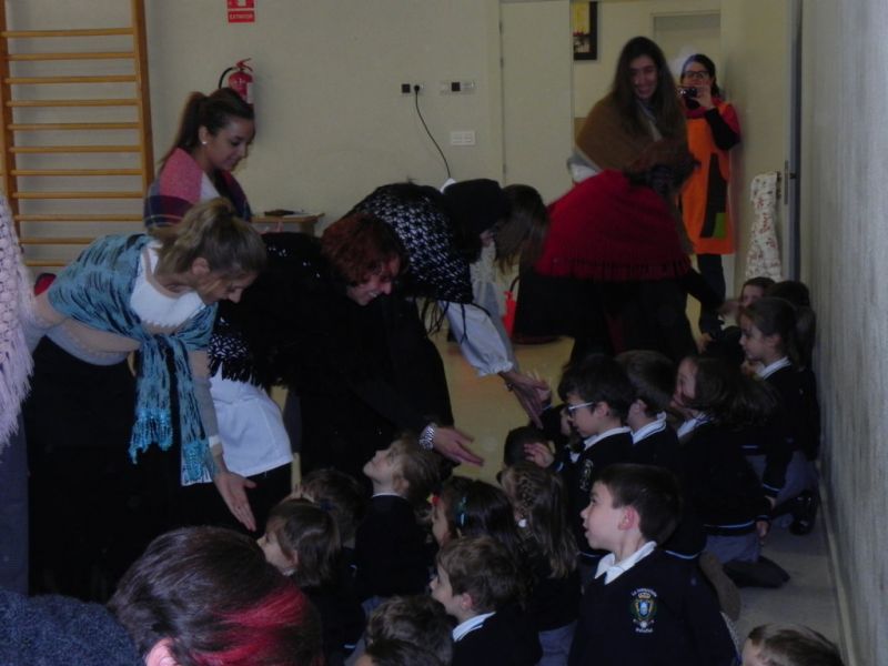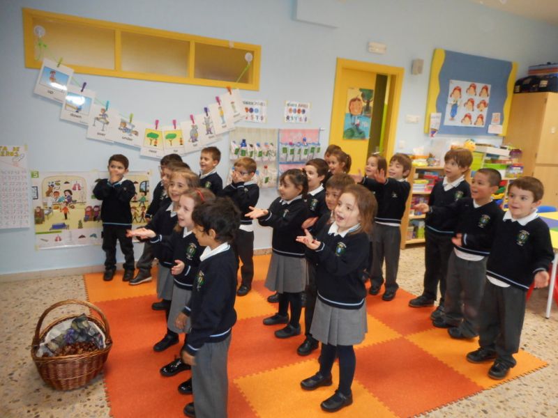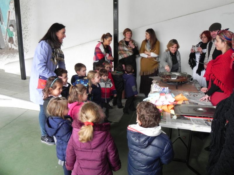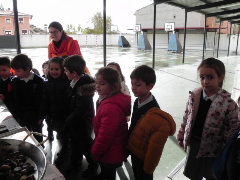 Les recitaron poesías y adivinanzas propias de esta época del año. Los niños estuvieron viendo cómo las asaban a la vez que las animaban con bonitas canciones y poesías. Como la ocasión requería, las castañeras nos ofrecieron canciones con coreografía incluida.