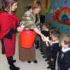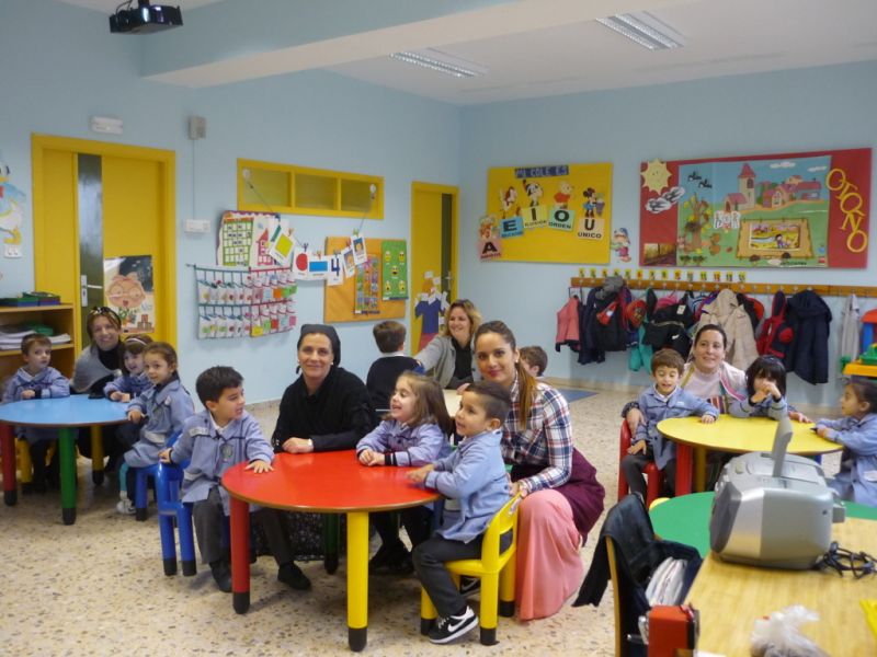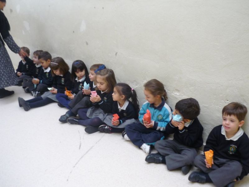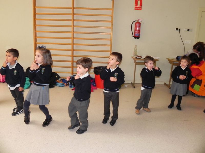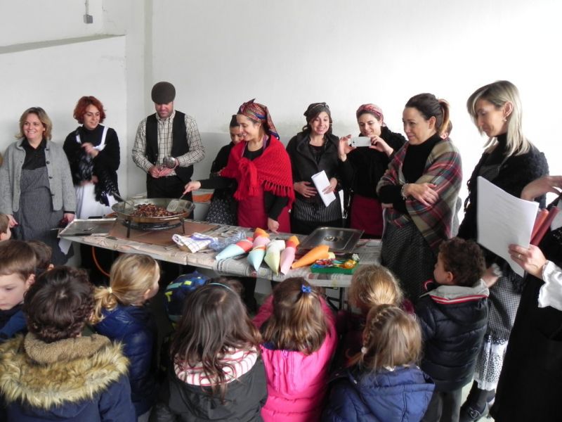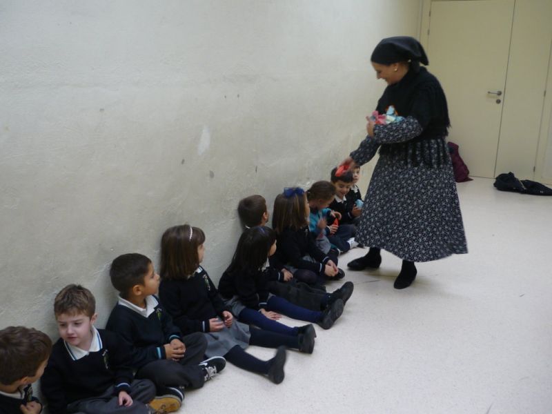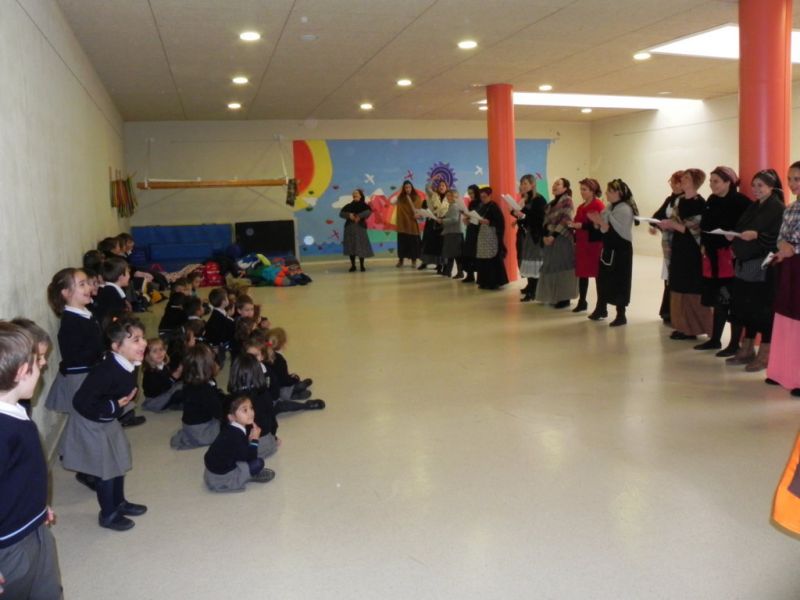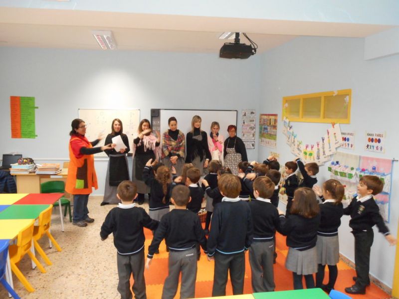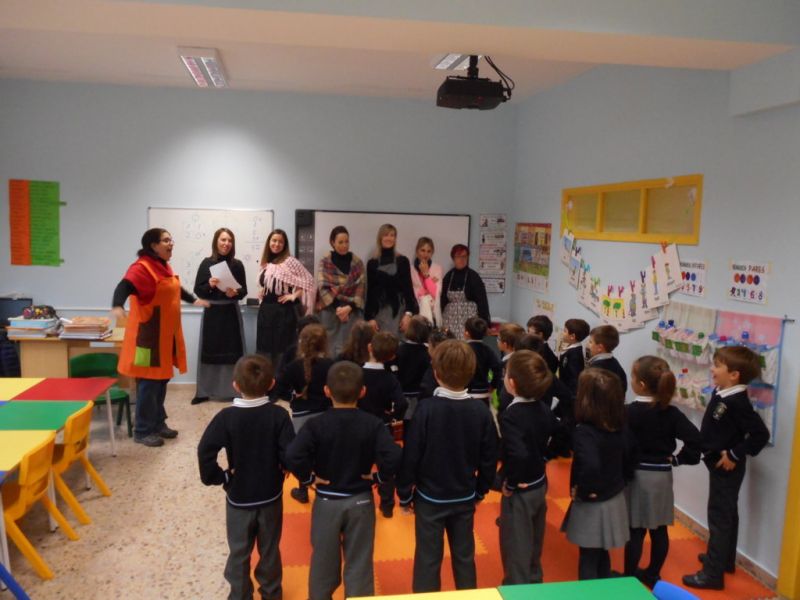Les recitaron poesías y adivinanzas propias de esta época del año. Los niños estuvieron viendo cómo las asaban a la vez que las animaban con bonitas canciones y poesías. Como la ocasión requería, las castañeras nos ofrecieron canciones con coreografía incluida.