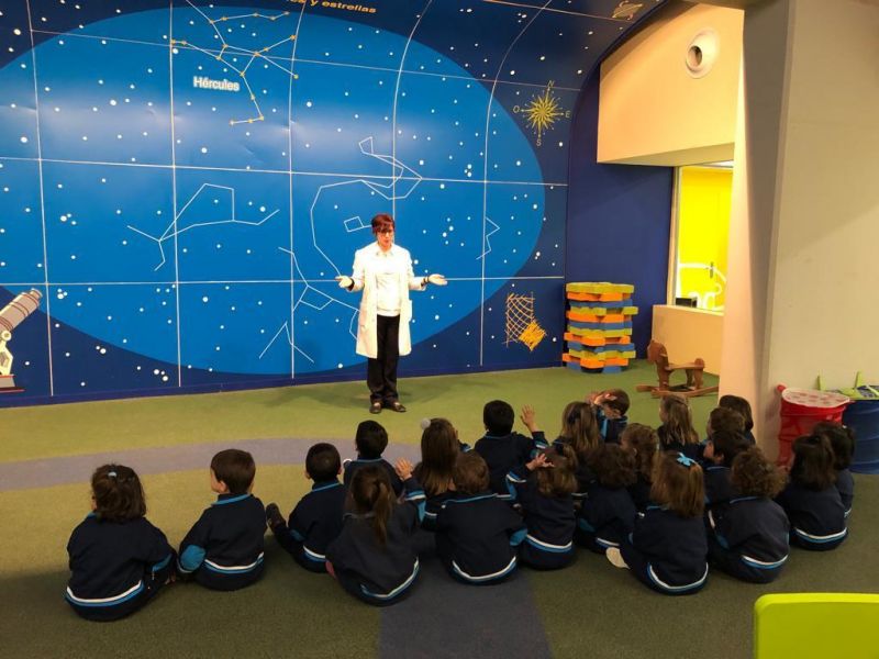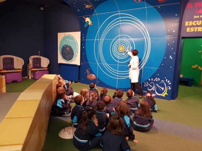 Los alumnos de Infantil visitan el Museo de la Ciencia, donde están aprendiendo mediante juegos algunos conceptos científicos, en la casa del río les han explicado ecosistemas fluviales, en concreto el del río Pisuerga. En la zona de acuarios y terrarios han visualizado las principales especies de peces, anfibios y crustáceos que habitan o habitaron en las aguas y riberas del Pisuerga. Han tocado sapos y tritones. Han inaugurado con autoridades la nueva proyección del planetario «Lucía». Posteriormente van a ir a Divertifiesta, donde lo van a pasar fenomenal, con piscinas de bolas, disfraces y juegos.