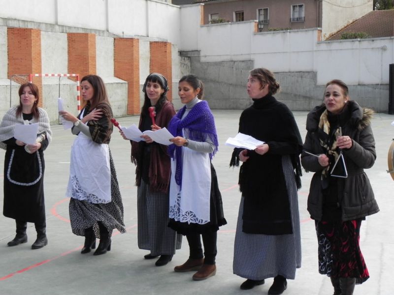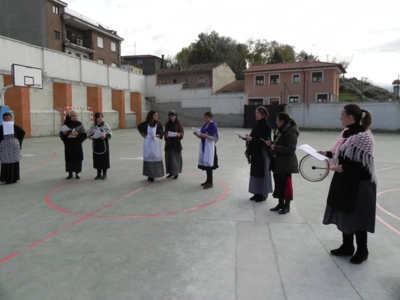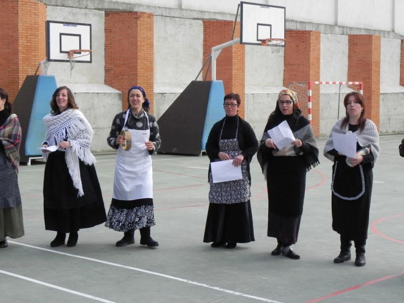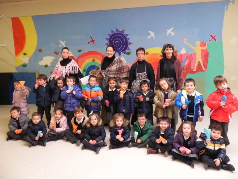 Les recitaron poesías y adivinanzas propias de esta época del año. Los niños estuvieron viendo cómo las asaban a la vez que las animaban con bonitas canciones y poesías. Como la ocasión requería, las castañeras nos ofrecieron canciones con coreografía incluida.