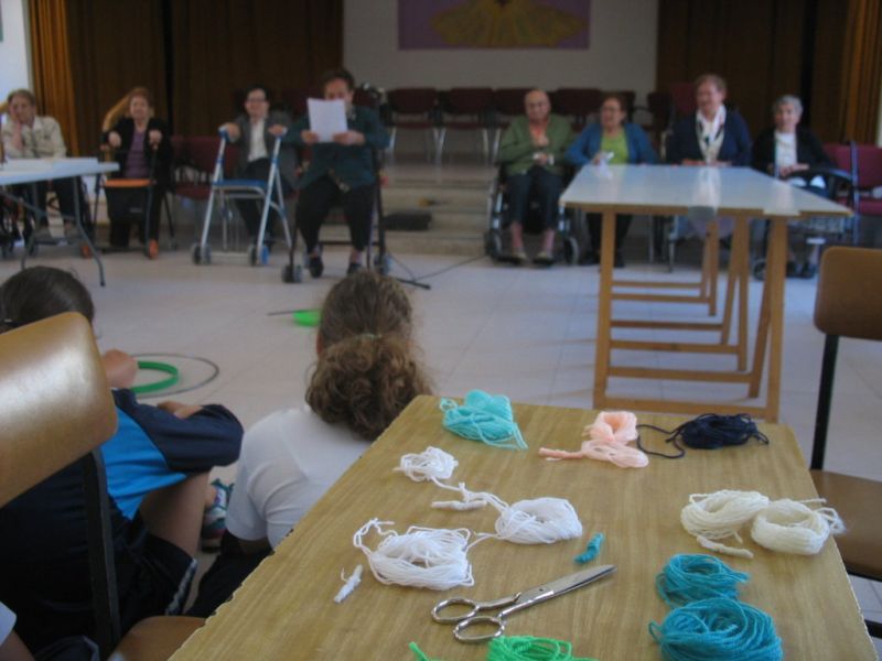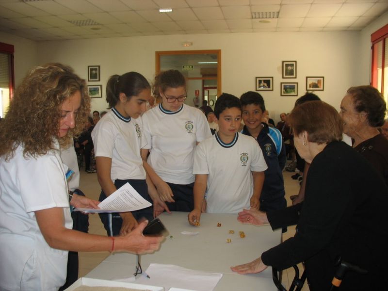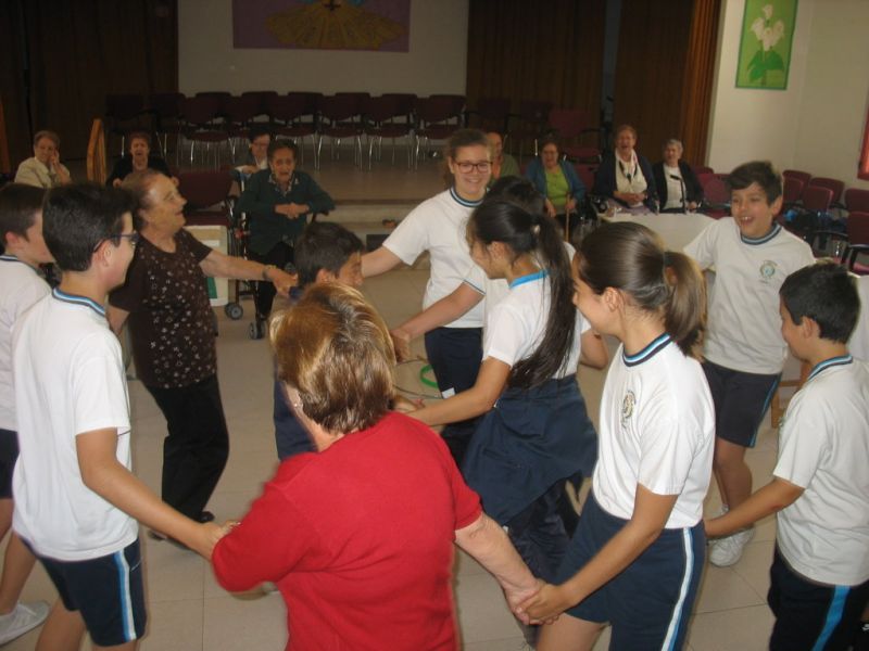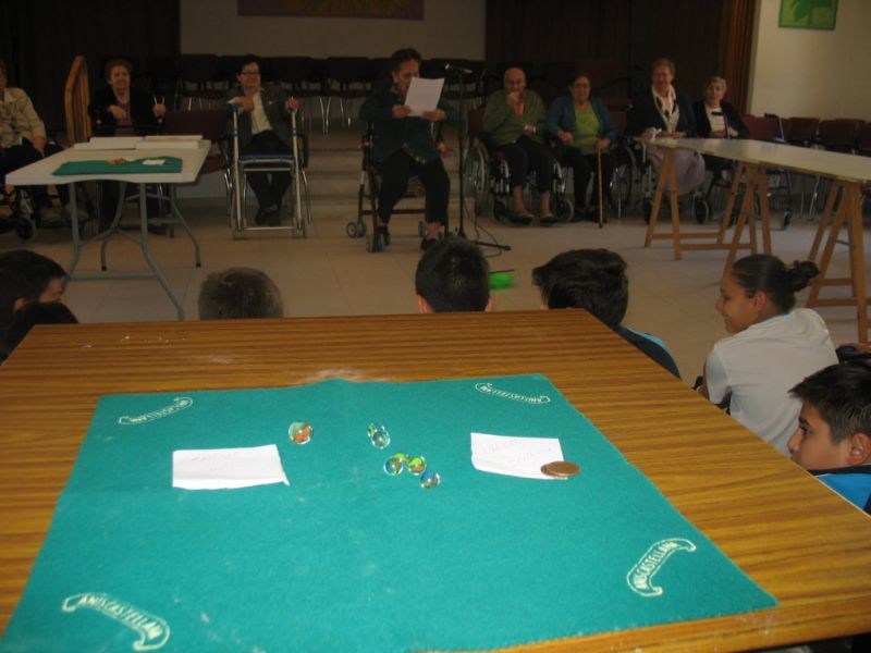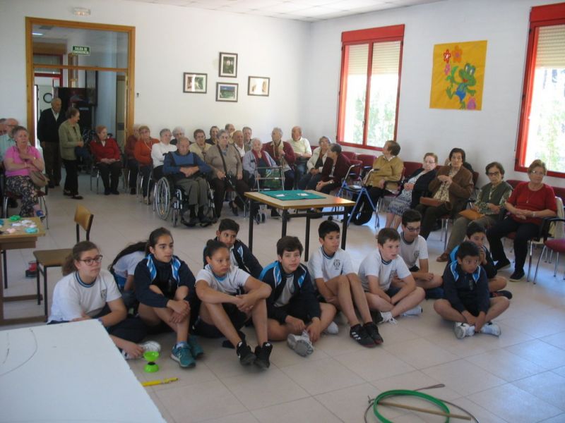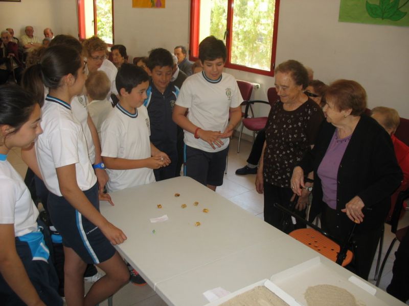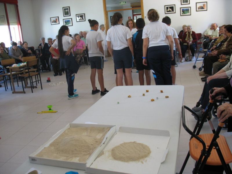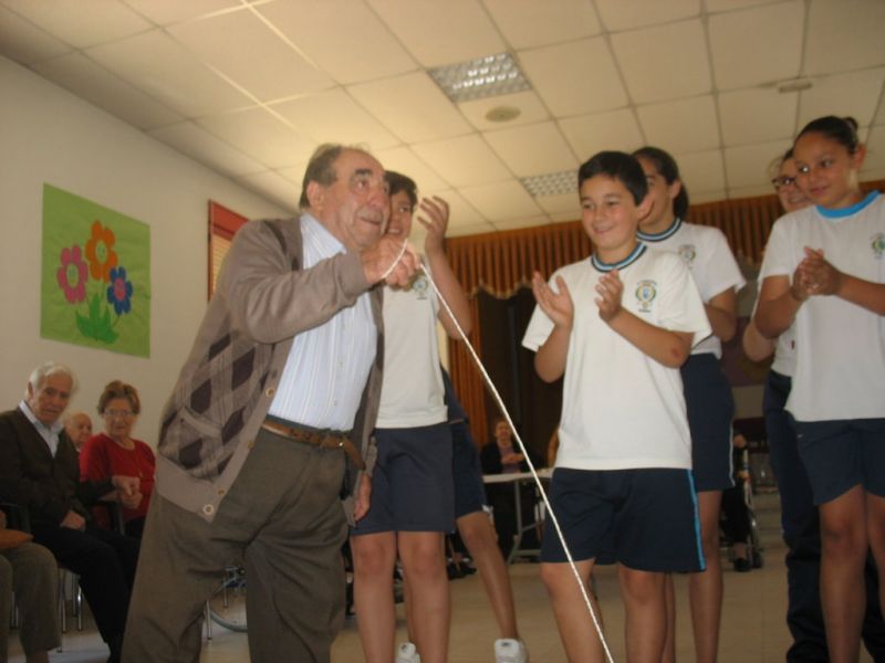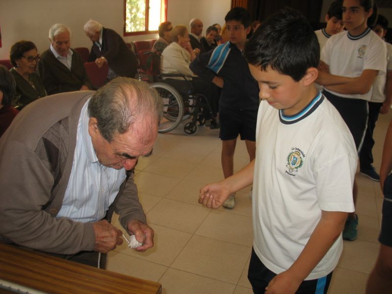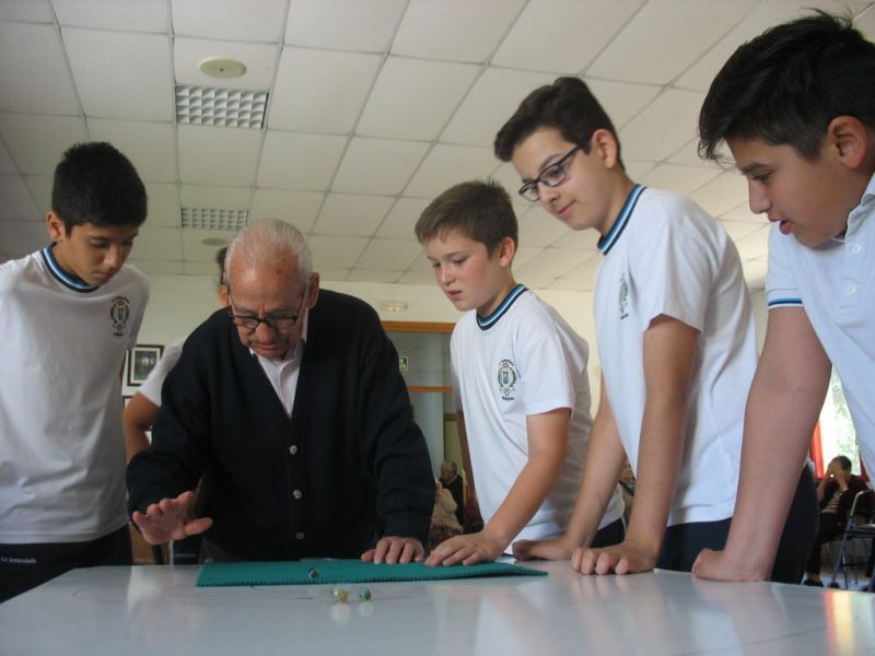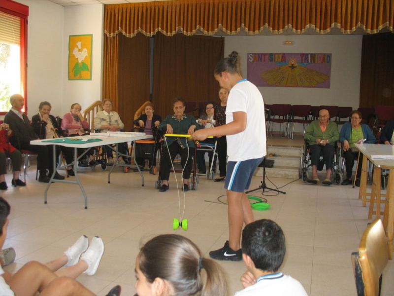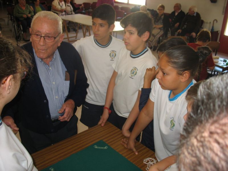 En la mañana de hoy hemos realizado una actividad intergeneracional entre los residentes de la «Santísima Trinidad» y los alumnos/as de 6º de E. Primaria de nuestro Colegio. Los mayores han contado cómo se divertían cuando eran pequeños, e inventaban juegos que ahora están en desuso; unos han hecho de «profes» y otros de «alumnos», pero ambos compartían en esta especial mañana las historias recordadas de esos juegos tan sencillos y precarios pero con mucha creatividad.