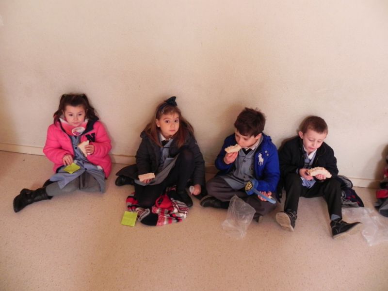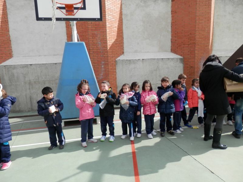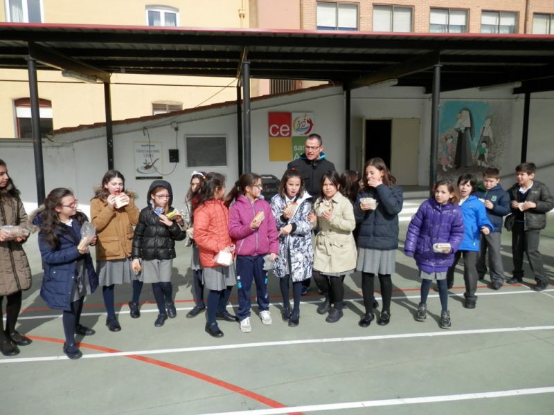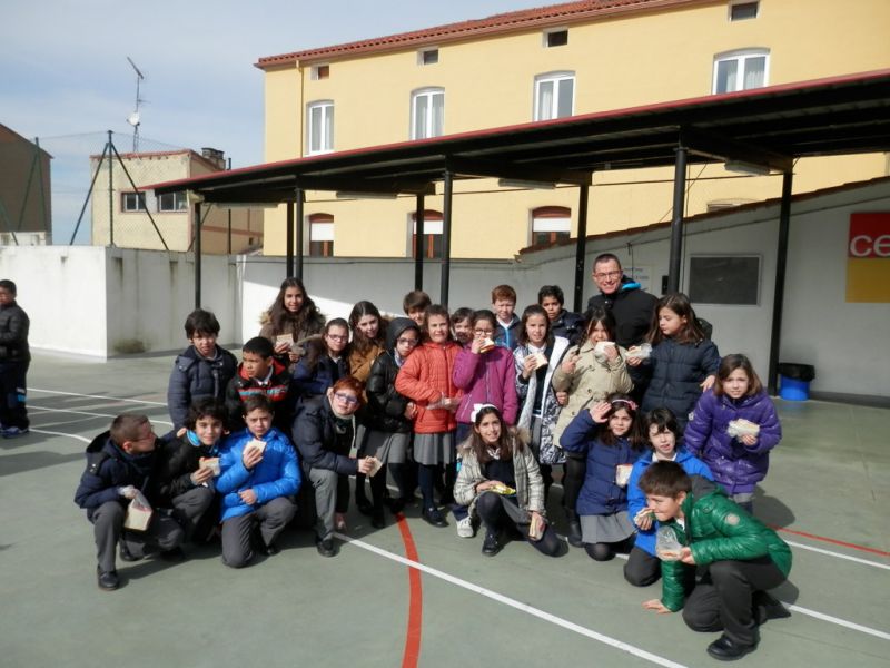 Al acto acudieron los párrocos de la localidad Rafa González y Vicente Sanz, que dieron las gracias a los niños por su participación. Todos juntos comieron su bocata en el patio con alegría e ilusión por haber colaborado en este proyecto.