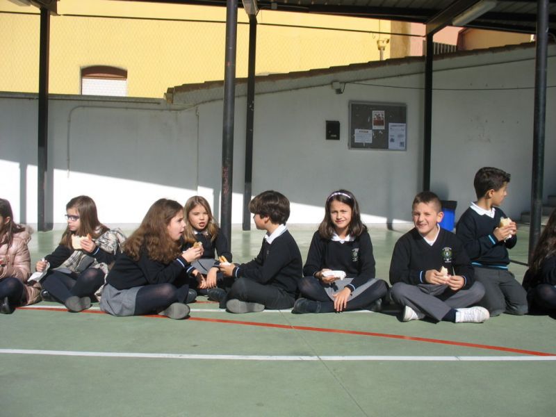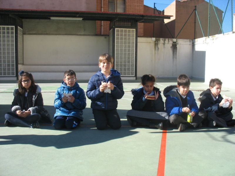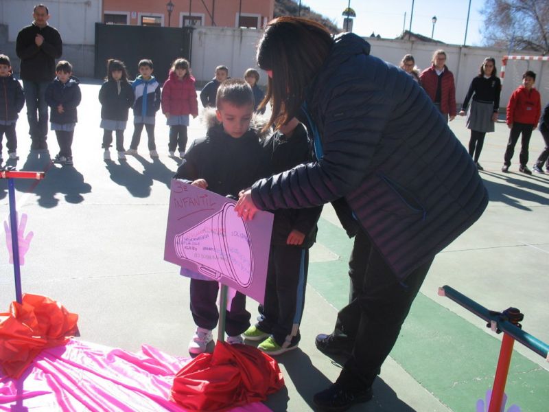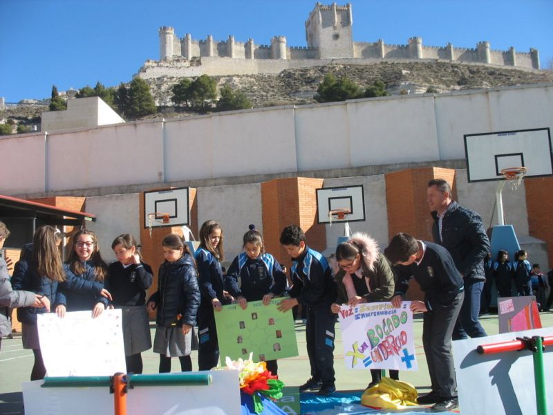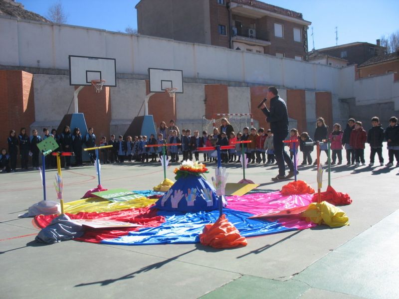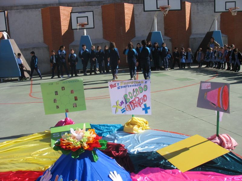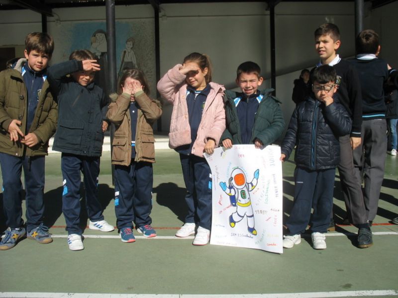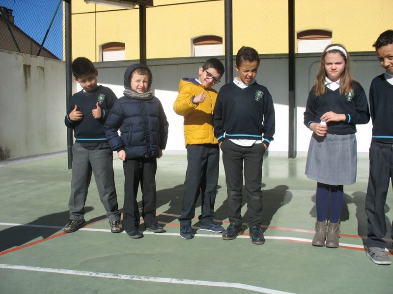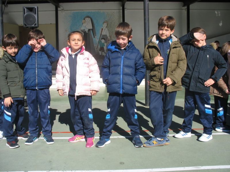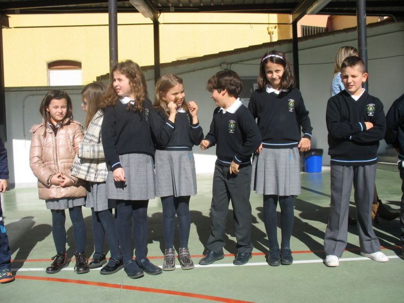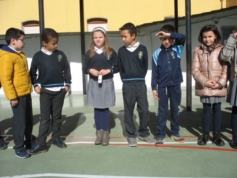 En el patio, cada curso, ha ido enseñando su gesto trabajado y se ha explicado su significado.