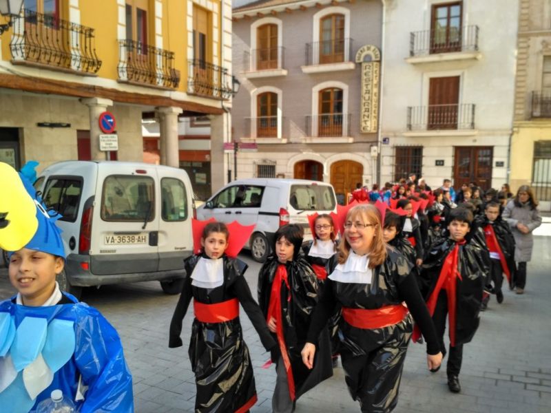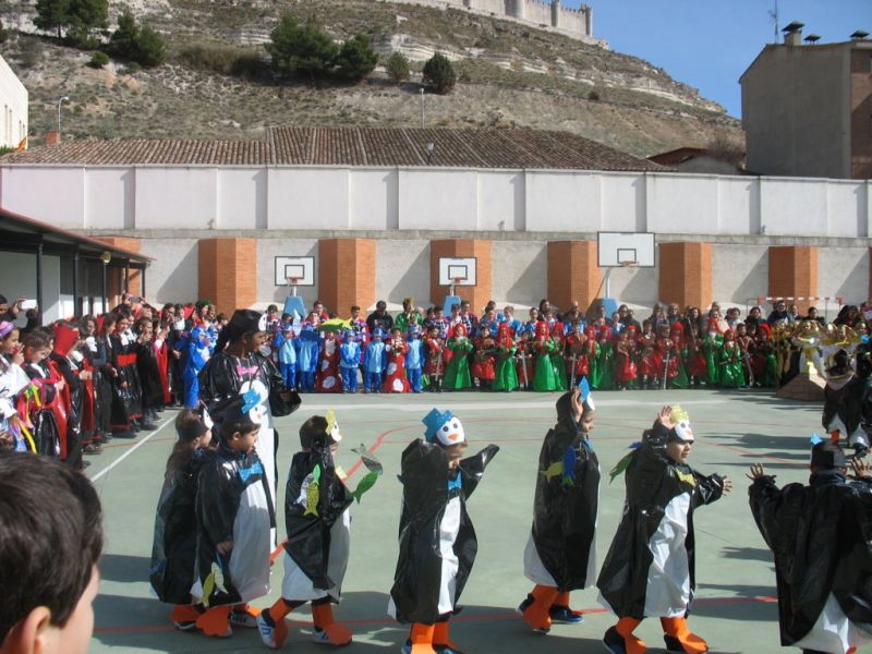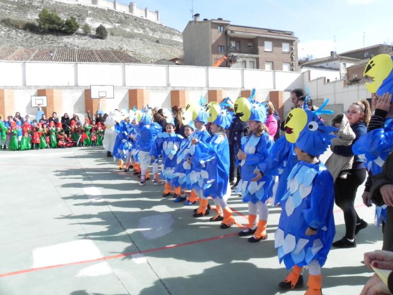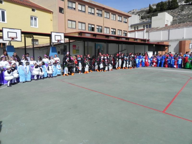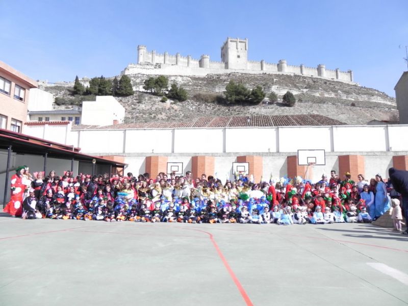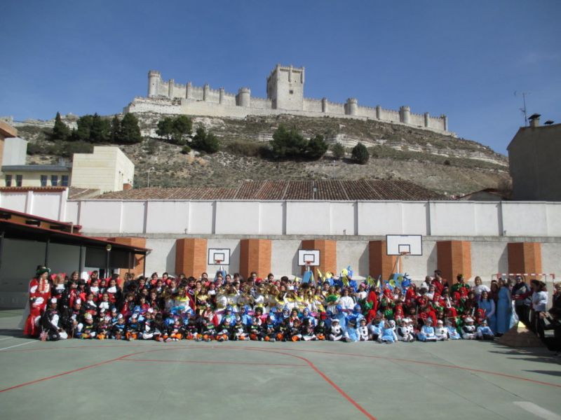 ¡Llega el Carnaval! Días anteriores y bajo el lema «Turismo sostenible» los alumnos han trabajado todo lo referente a los diferentes lugares que tienen que ver con las películas animadas, infantiles, elegidas para este carnaval, a sus protagonistas y valores positivos que sacamos de ellos. Pudimos ver a muchos de los personajes de Frozen, Madagascar, Lilo y Stitch, Brave, El príncipe de Egipto, El jorobado de Notre Dame, Río, Hotel Transyslvania y Mulán, todo ello fundido en un mar de color, imaginación y alegría. Hicieron un recorrido por las calles del pueblo donde los peñafielenses pudieron disfrutar de la magia del carnaval con nuestros alumnos, acabando en el patio del colegio bailando todos juntos.