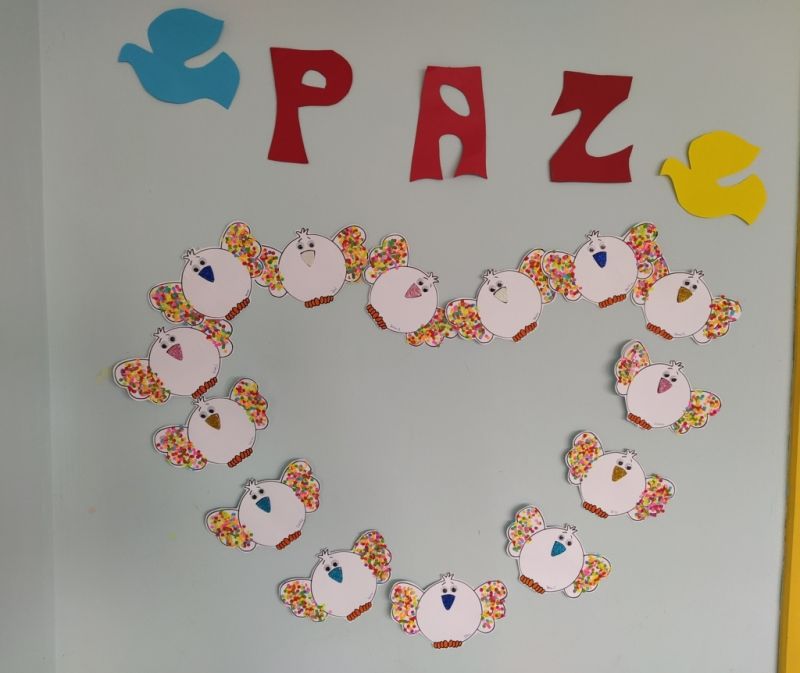 Los alumnos de infantil también han querido dar color y alegría a sus palomas de la Paz. Han trabajado distintas actividades y dinámicas para conseguir la paz en su vida cotidiana.