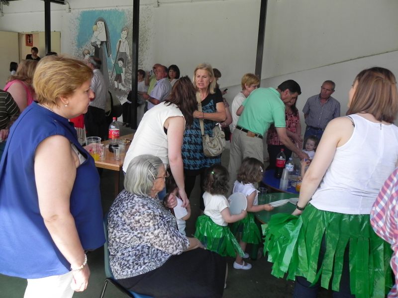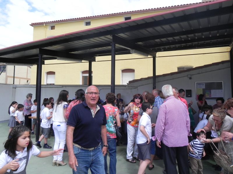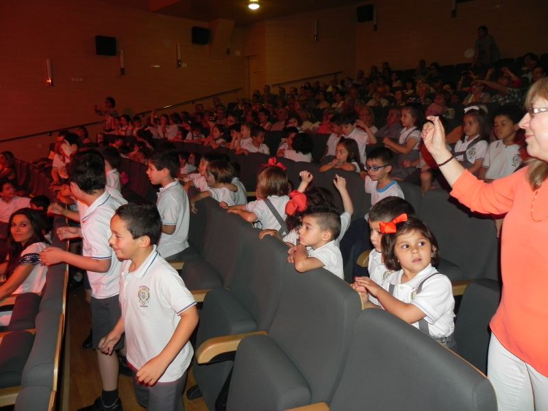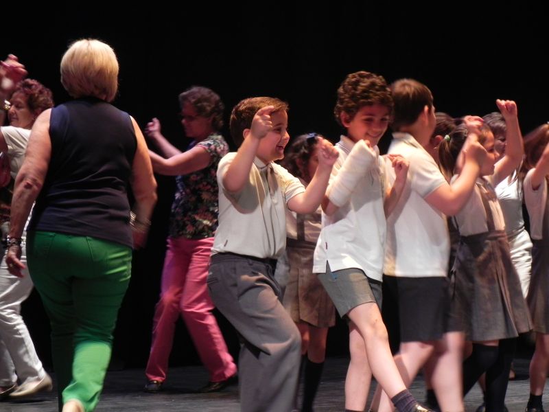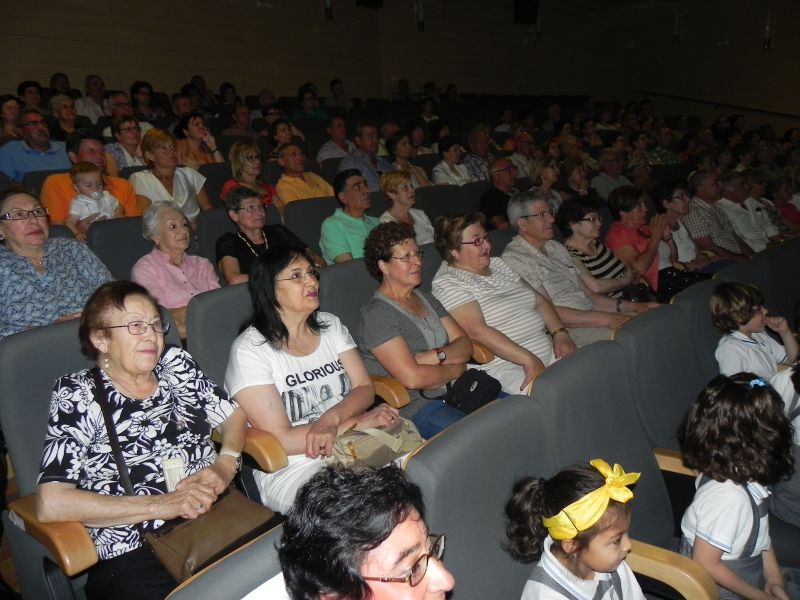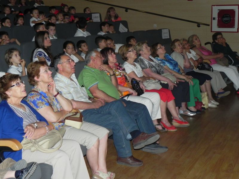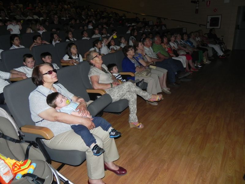 el gran día, tan esperado por todos. Los abuelos esperaban impacientes, en el auditorio, la entrada de sus nietos, para ver sus caritas sonrientes y llenas de ilusión. Primero se hizo una presentación con las fotos de los abuelos, seguidamente los alumnos les deleitaron con bailes y canciones. Algunos espectadores homenajeados se les escapaba de vez en cuando alguna lagrimilla, al ver a sus pequeños subidos en el escenario, derrochando alegría y desparpajo. Una vez acabado el acto en el auditorio todos fueron al patio del colegio a degustar un merecido refresco y a bailar todos juntos profes, niños y abuelos.