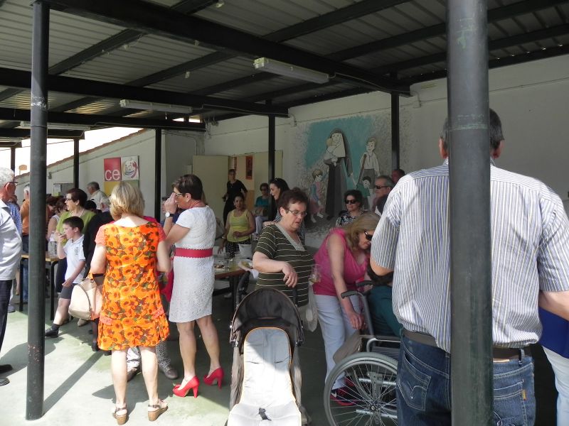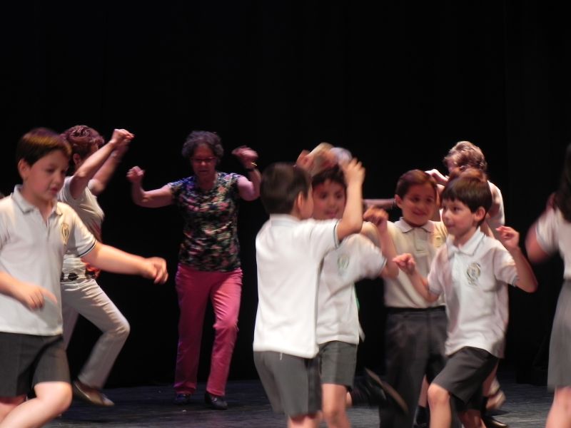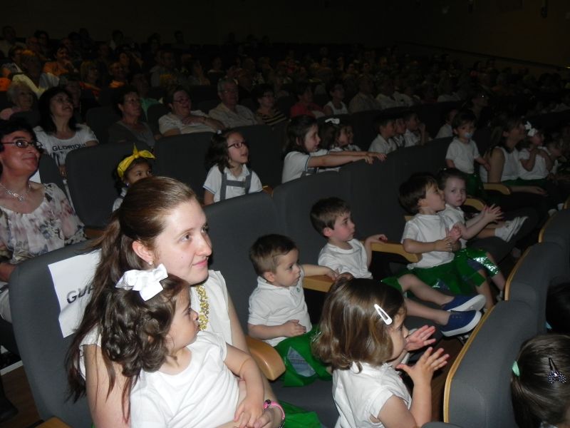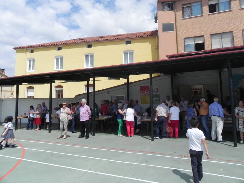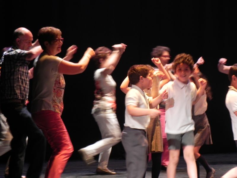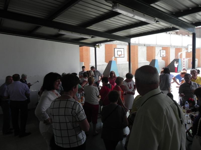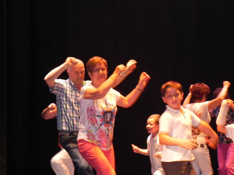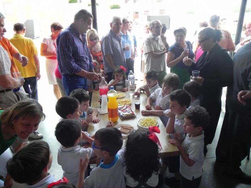 el gran día, tan esperado por todos. Los abuelos esperaban impacientes, en el auditorio, la entrada de sus nietos, para ver sus caritas sonrientes y llenas de ilusión. Primero se hizo una presentación con las fotos de los abuelos, seguidamente los alumnos les deleitaron con bailes y canciones. Algunos espectadores homenajeados se les escapaba de vez en cuando alguna lagrimilla, al ver a sus pequeños subidos en el escenario, derrochando alegría y desparpajo. Una vez acabado el acto en el auditorio todos fueron al patio del colegio a degustar un merecido refresco y a bailar todos juntos profes, niños y abuelos.