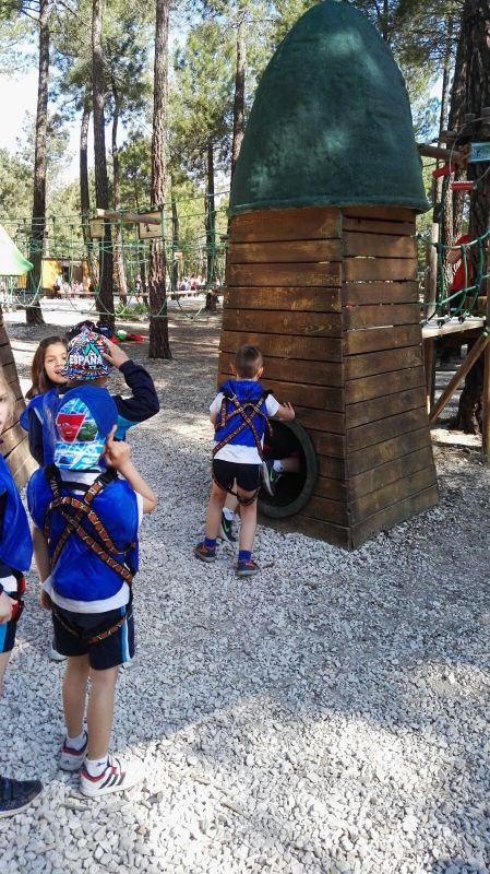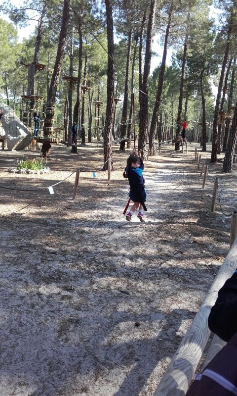 Los alumnos de 1º y 2º de Primaria esperaban al autobús con ilusión. Su destino, Pinocio, un Parque de aventuras situado en pleno corazón de la Tierra de Pinares Segoviana, donde se combinan de una manera extraordinaria la naturaleza y la emoción. Van a poder disfrutar de tirolinas, gimkanas, tiro con arco … en compañía de sus profesores.