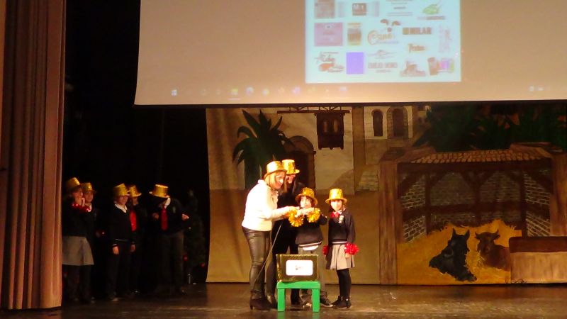 Continuamos con la tradicional rifa del AMPA Santa Ana que se realiza gracias a la colaboración de empresas de la localidad o cercanas a ellas y por supuesto la aportación de los espectadores comprando los boletos. Se repartieron diecinueve¡¡¡¡ cestas navideñas.