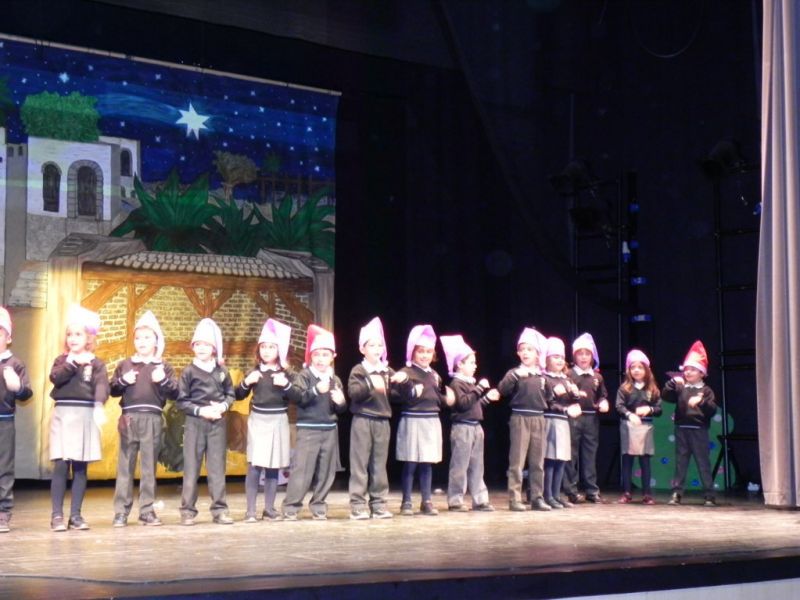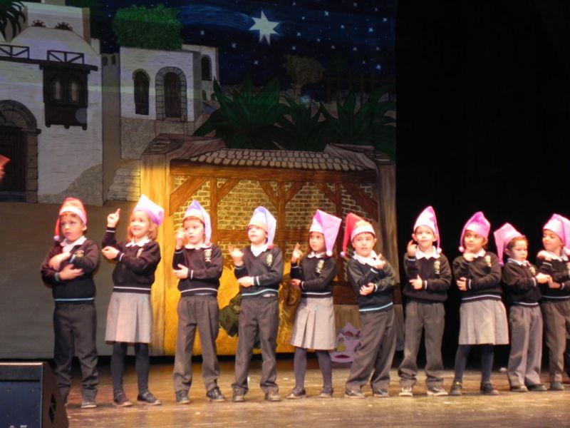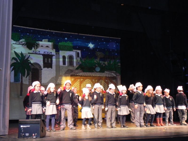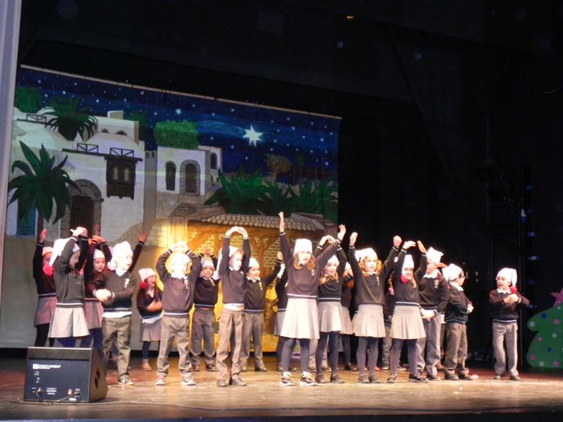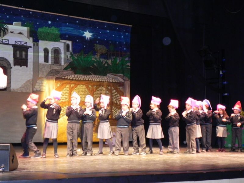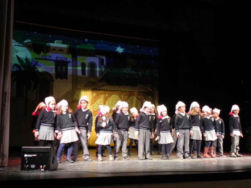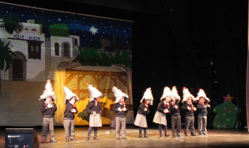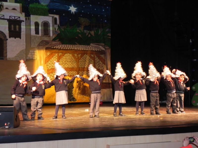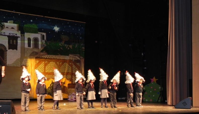 El primer trimestre llega a su fin y con ello el festival de Navidad. Desde el colegio celebramos con villancicos el nacimiento de Jesús. El auditorio estaba al completo, los familiares de los alumnos esperaban impacientes por ver cómo sus hijos cantaban, bailaban, reían o se quedaban parados ante la expectación de tanta gente.