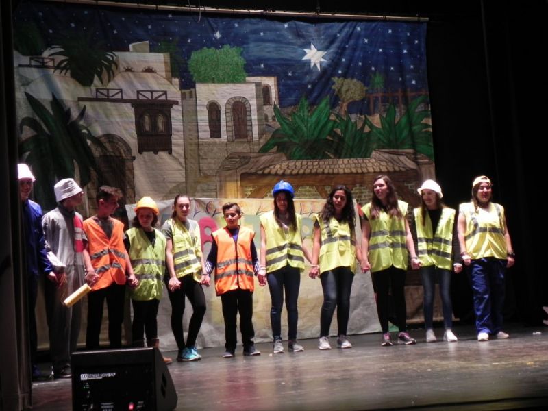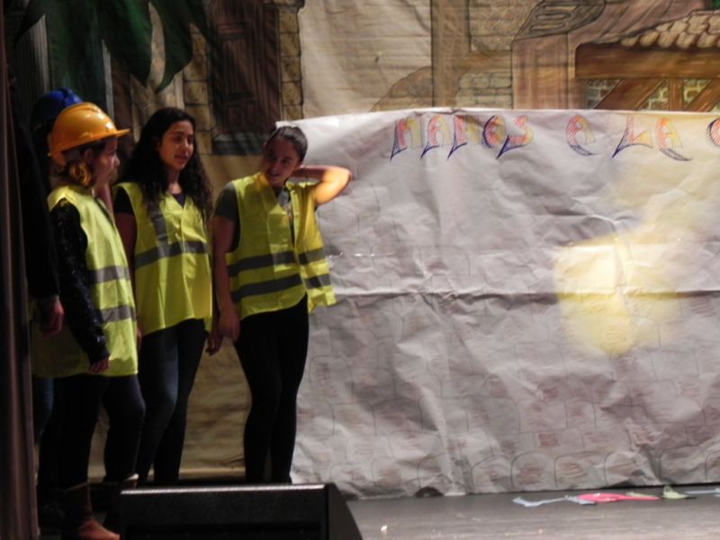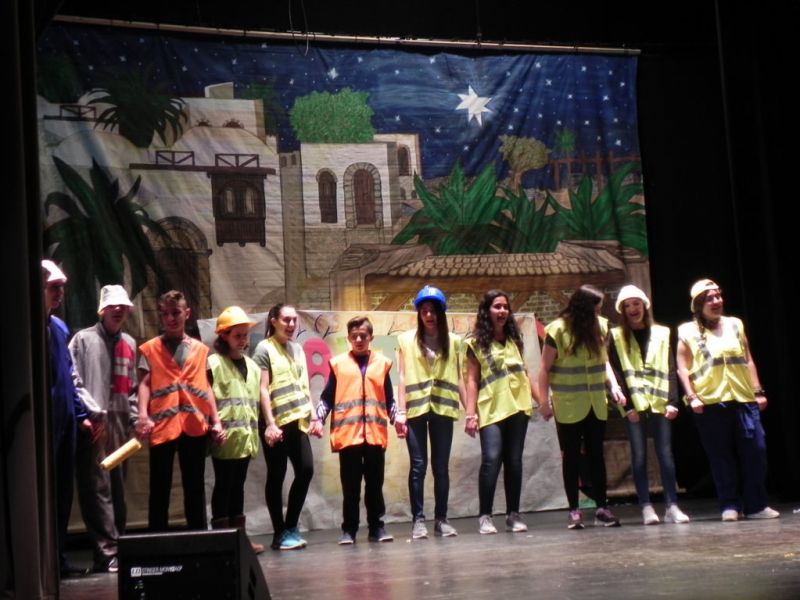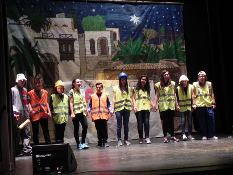 Posteriormente cantaron y bailaron villancicos los alumnos de Primaria, donde pudimos ver, con diferentes ritmos, sus dotes de artistas. Un grupo de antiguos alumnos del Colegio nos preparó también una pequeña representación de «Manos a la obra en Navidad» en la que todos aplaudimos con energía y alegría al verles de nuevo, agradeciéndoles un montón su colaboración y trabajo.