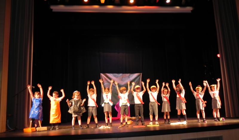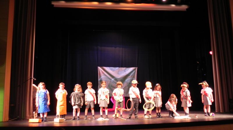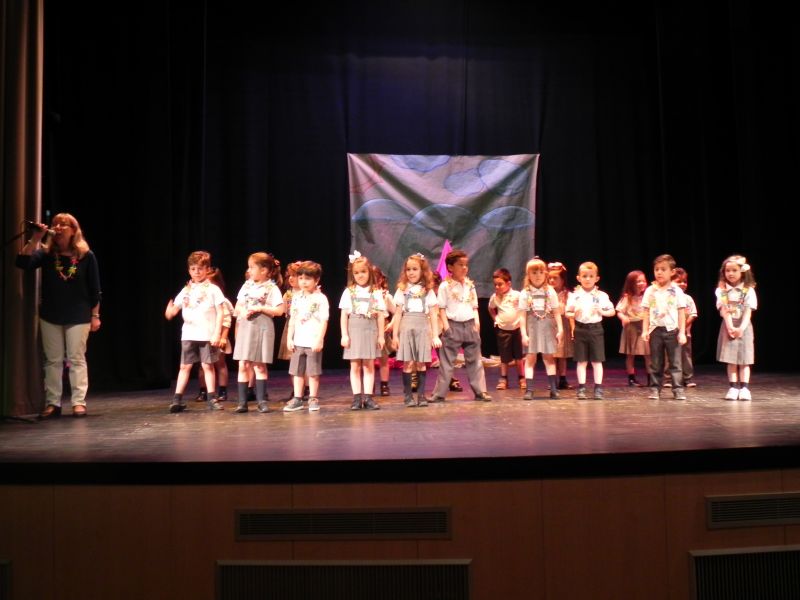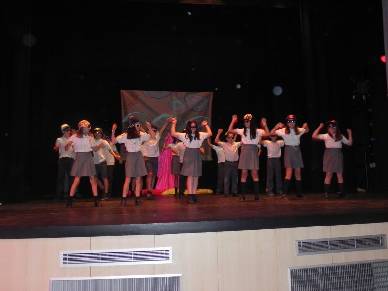 A continuación, uno a uno, van pasando por el escenario todos los cursos haciendo que los espectadores rían y canten al ritmo de rumba, pop, bamba…