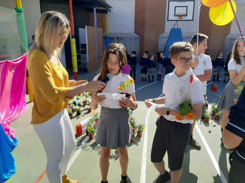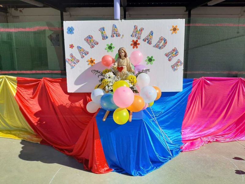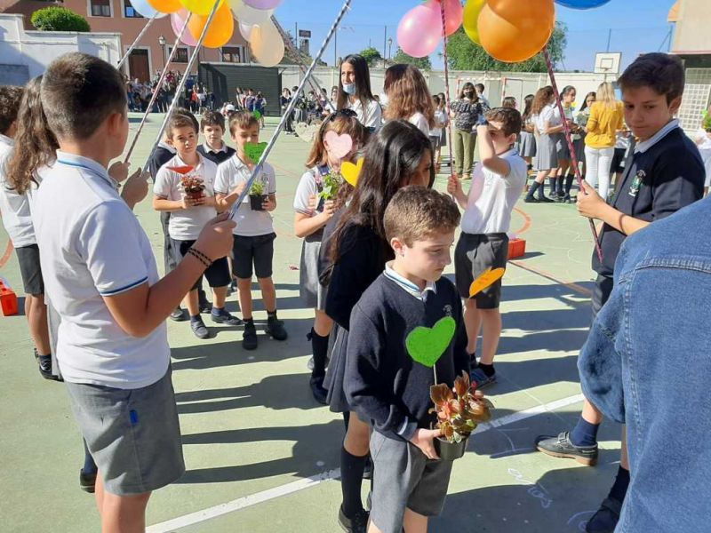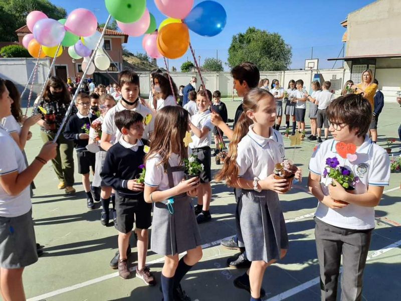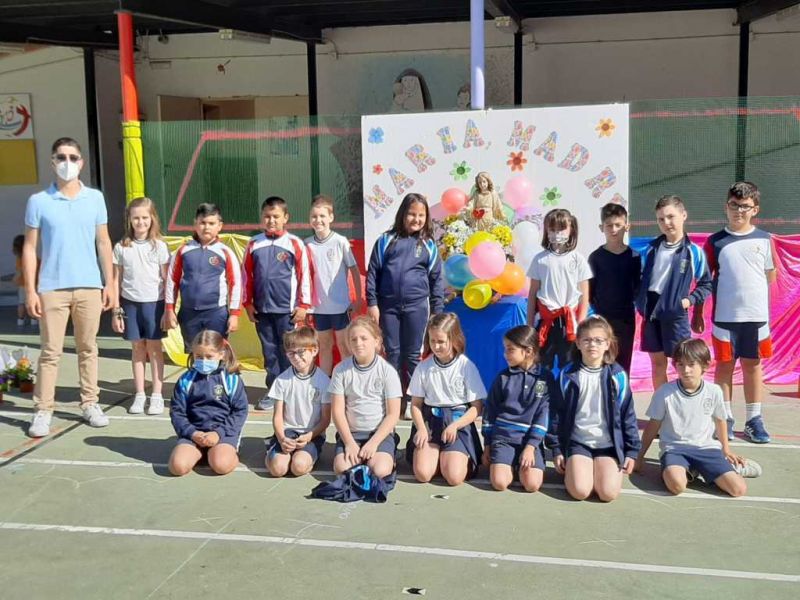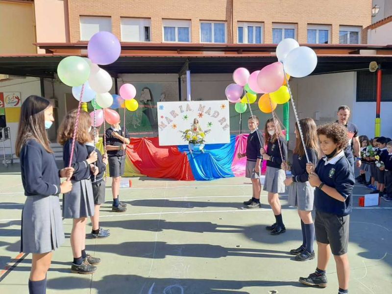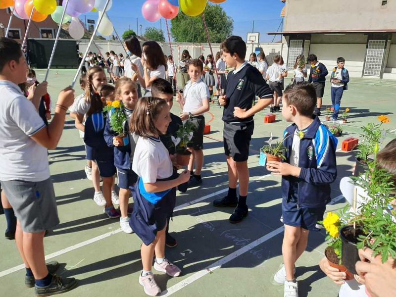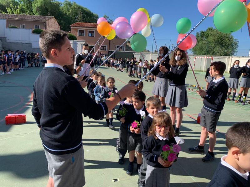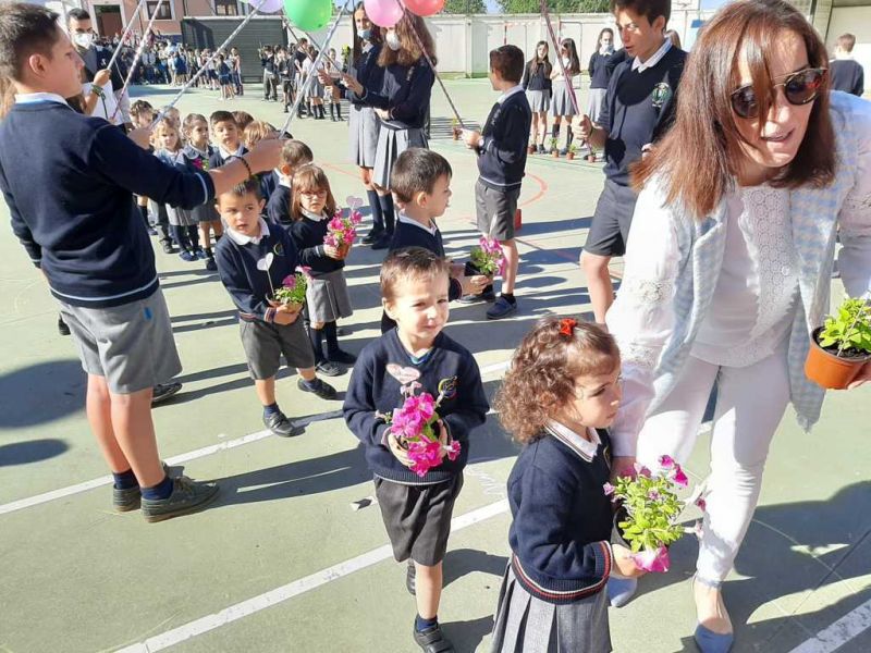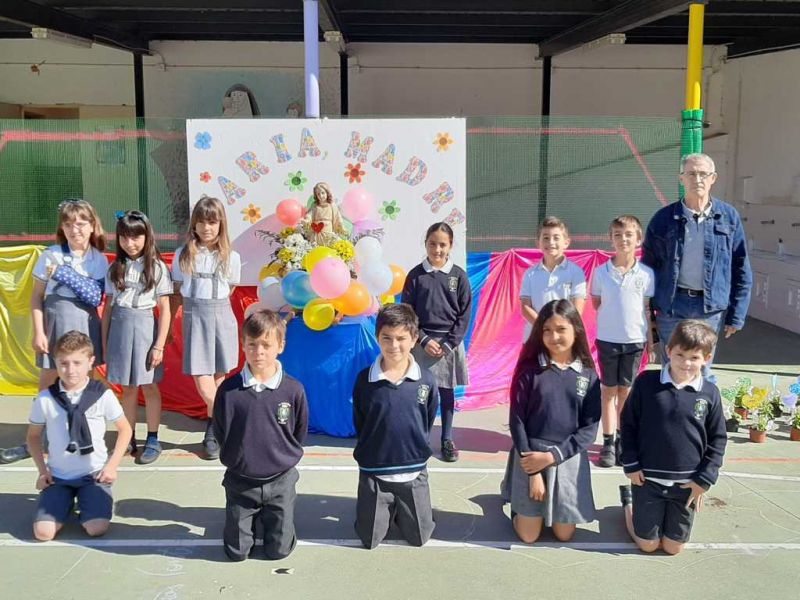 Durante el mes de mayo, los alumnos del Colegio La Inmaculada han decorado diferentes flores, a la vez que han cuidado una planta con cariño y esmero, escribiendo mensajes de amor, respeto y comprensión. A las 9:15 de la mañana ya estaban todos preparados para hacer el recorrido procesional acompañando a la virgen por las calles anexas al cole. Una vez en el patio, cada alumno ha ofrecido su flor a María, formando entre todos un bonito jardín.