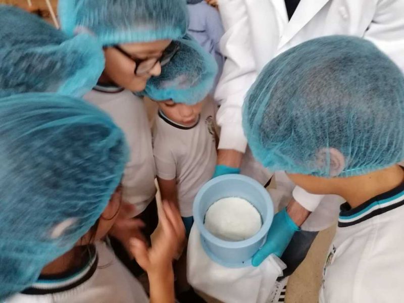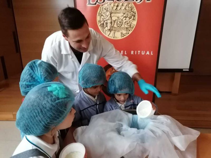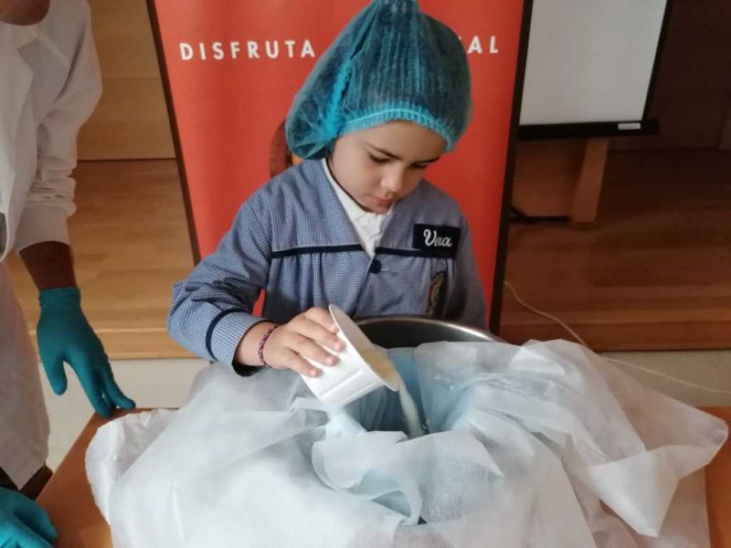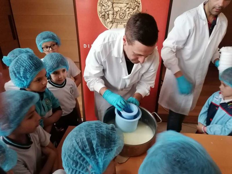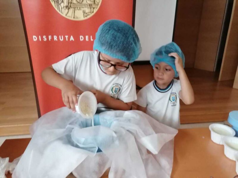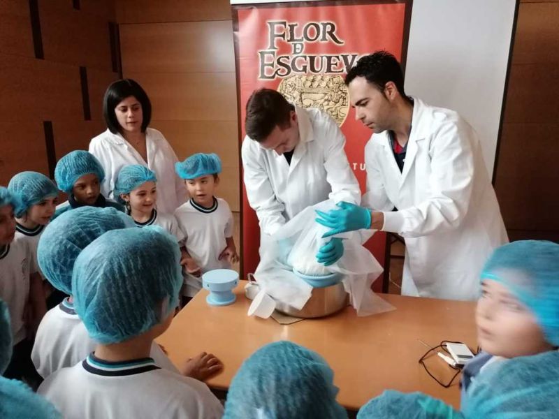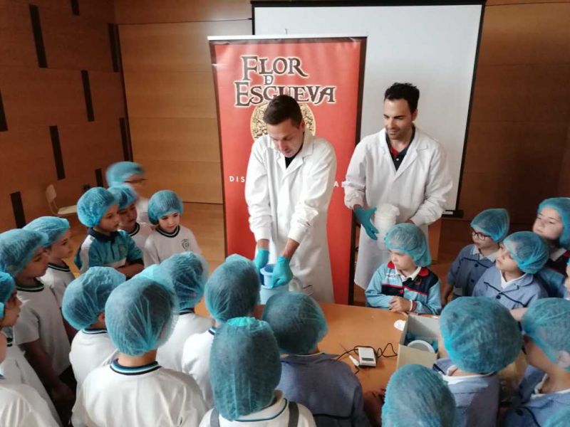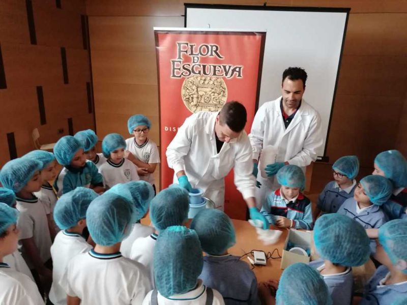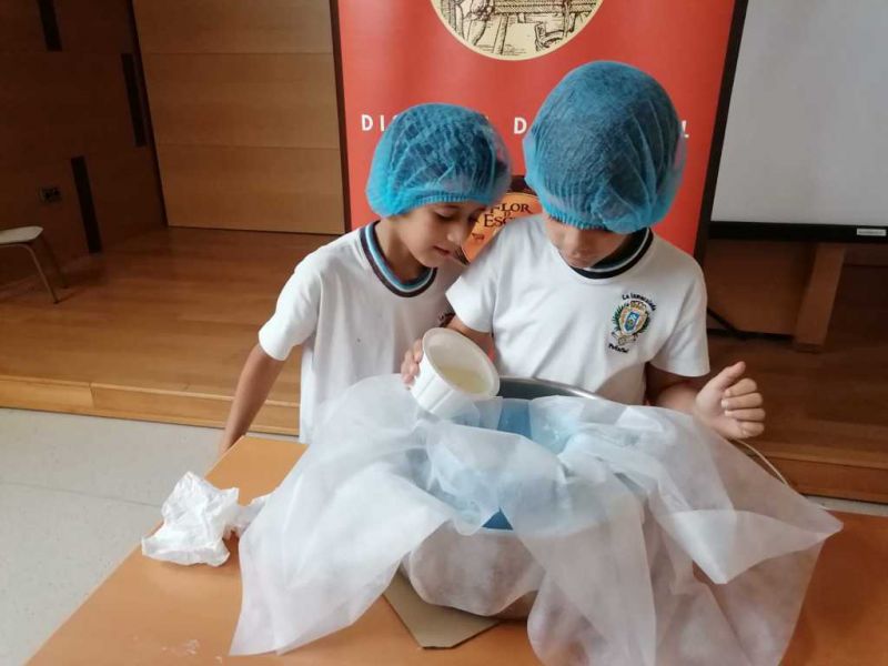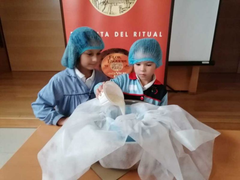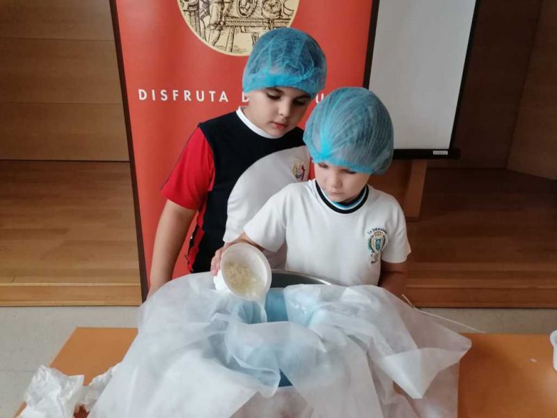 Cuba, moldeo y prensado del queso, suero, cuajo, … estas son algunas de las palabras que hemos aprendido en el taller del queso. Ha sido un día fabuloso en el que hemos disfrutado y experimentado en primera persona el proceso de transformación de la leche en este magnífico queso Flor de Esgueva. Por último, hemos degustado deliciosos quesos para apreciar sus cualidades.