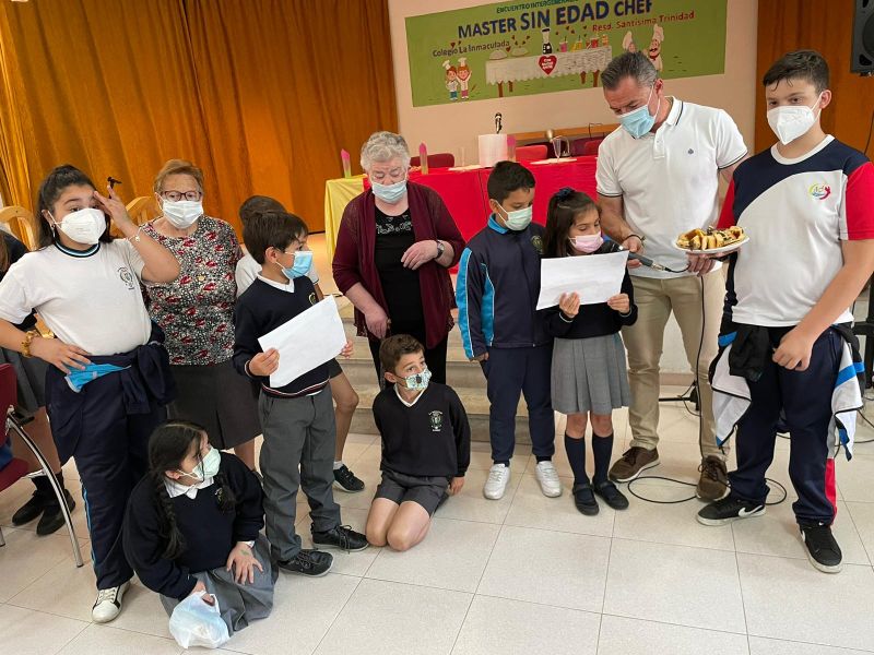 Máster SINedad Chef, un proyecto INTERGENERACIONAL entre los abuel@s de la residencia Santísima Trinidad y los alumnos de segundo, tercero y cuarto de primaria del colegio La Inmaculada. Con fogones que no calentaban, ni cazuelitas, ni cazuelones, pero lo que si que han calentado, han ido sus CORAZONES. Entre todos hemos preparado nuestra receta, la hemos presentado y como no, la hemos degustado. Momentos especiales, con gente súper especial. Agradecimiento especial a la Obra Social la Caixa, Ampa la Inmaculada, al equipo de la residencia y a los miembros de FSA local.