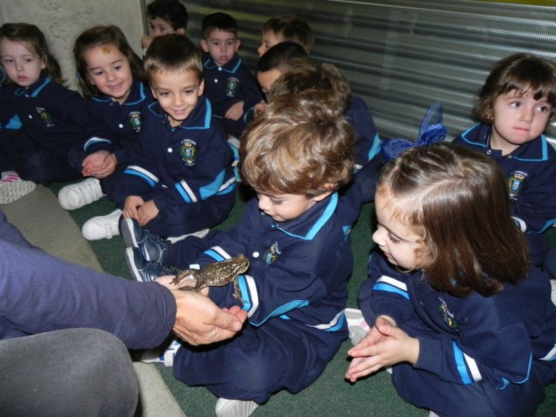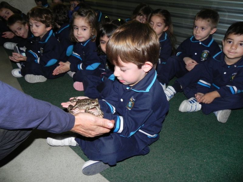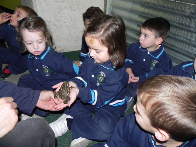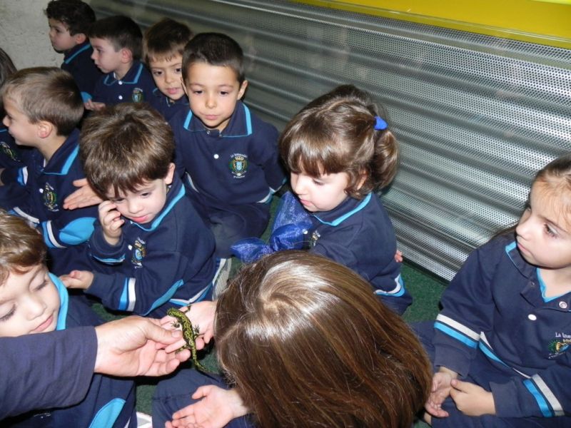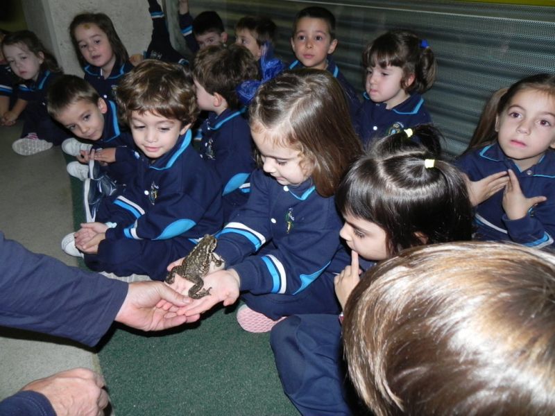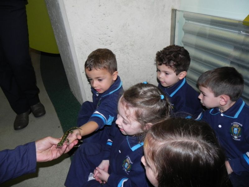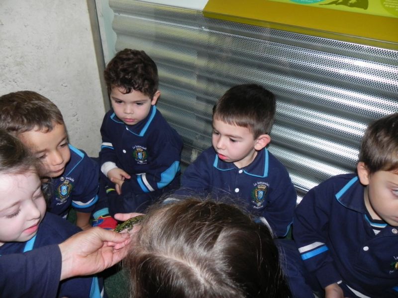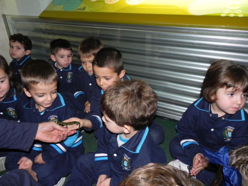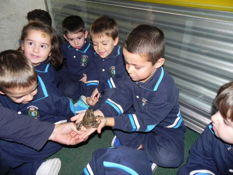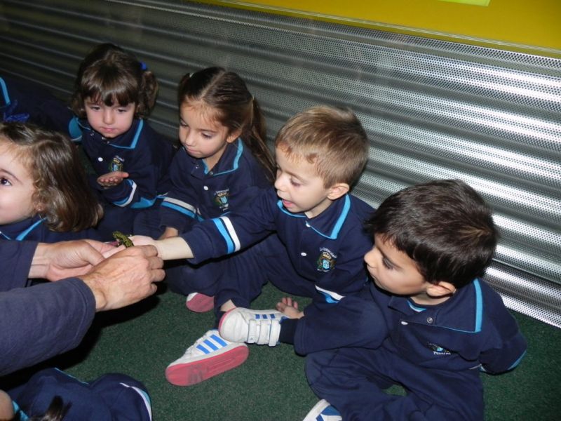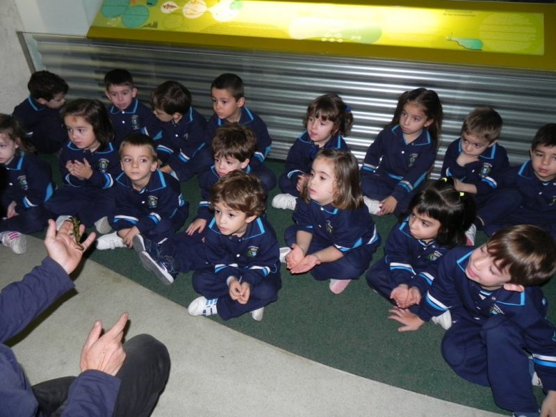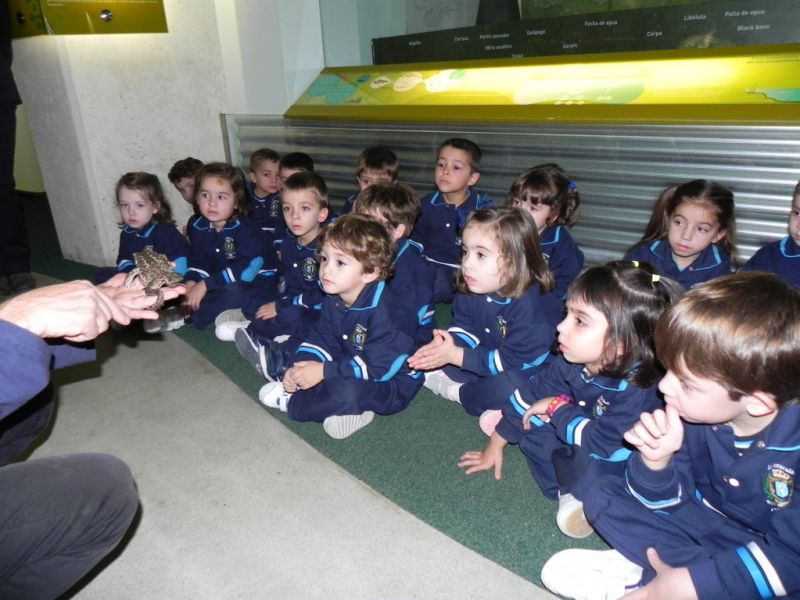 Hoy, los niños/as de Infantil están disfrutando mucho en la visita al Museo de la Ciencia de Valladolid, sobre todo en el Planetario con sus audiovisuales, ¡qué maravilla! En la casa del río les han explicado los ecosistemas fluviales, en concreto el del río Pisuerga, han visto en módulos interactivos cómo funcionan los ríos. En la zona de acuarios y terrarios han visualizado las principales especies de peces, anfibios y crustáceos que habitan o habitaron en las aguas y riberas del Pisuerga. Han tocado sapos y tritones. Después van a ir a Divertifiesta, donde lo van a pasar fenomenal, acabando con un «pintacaras».