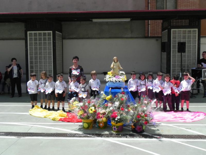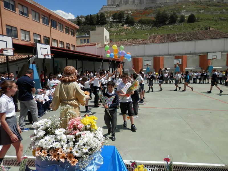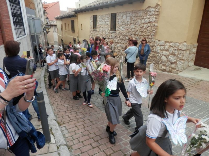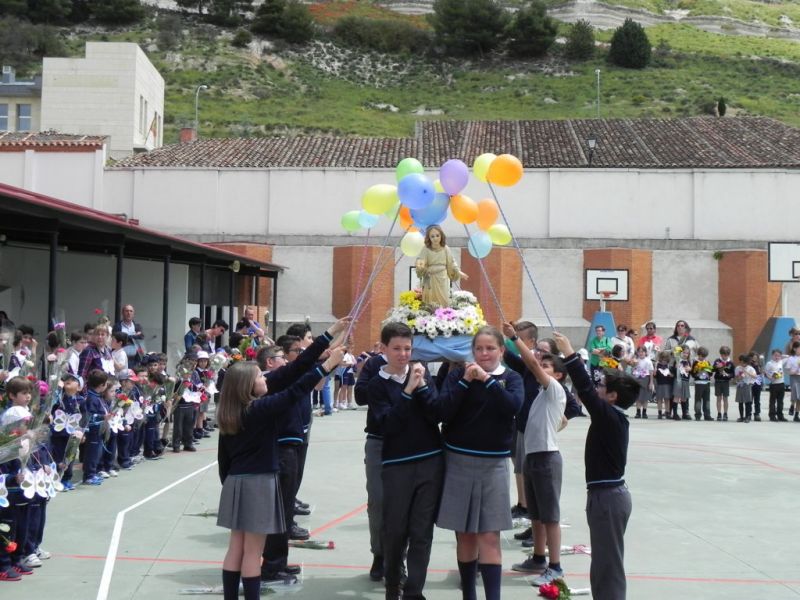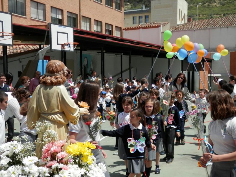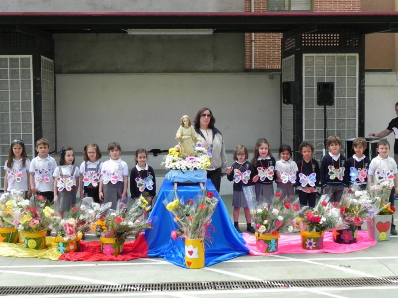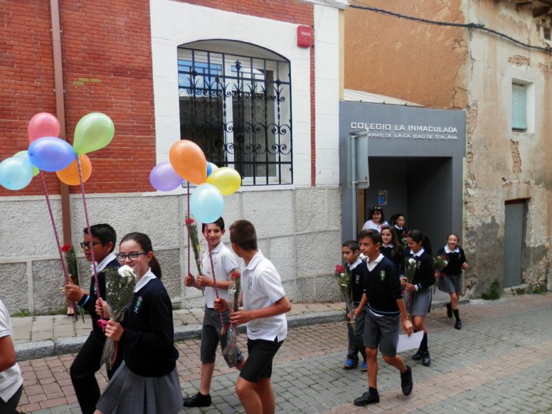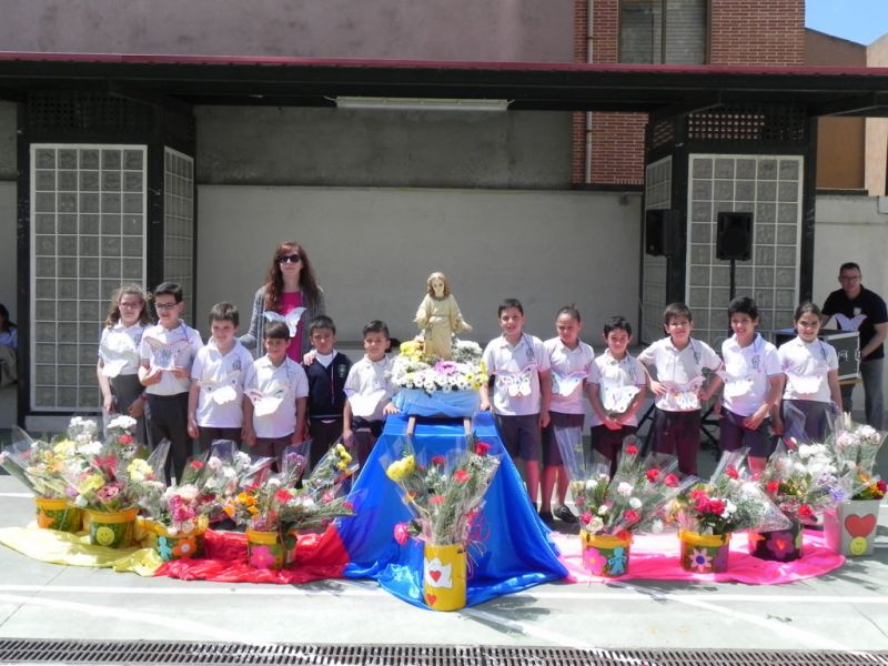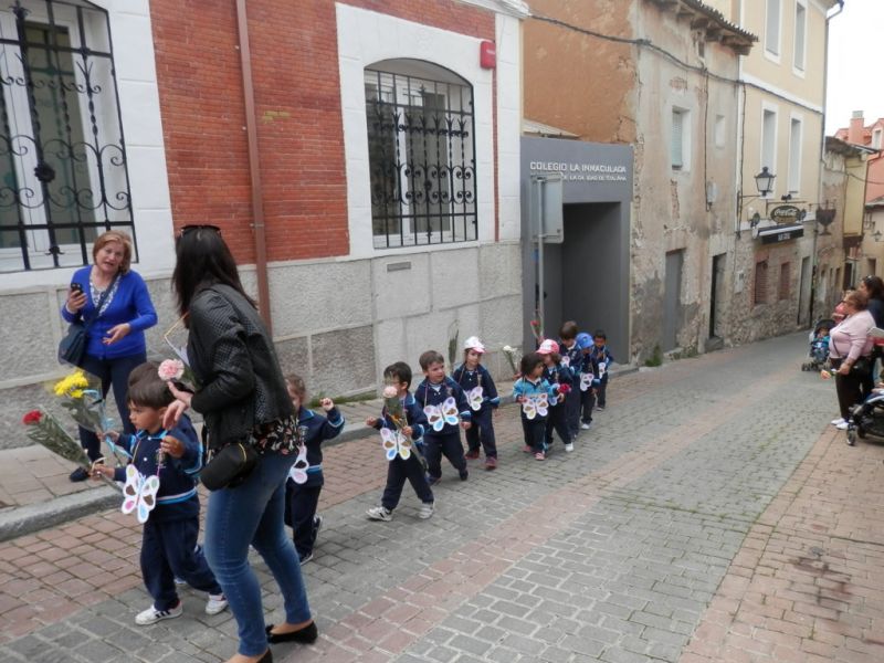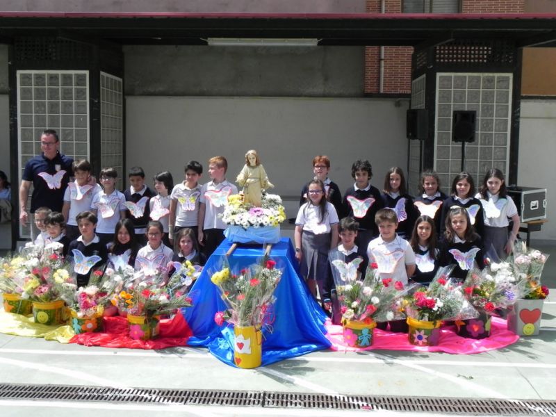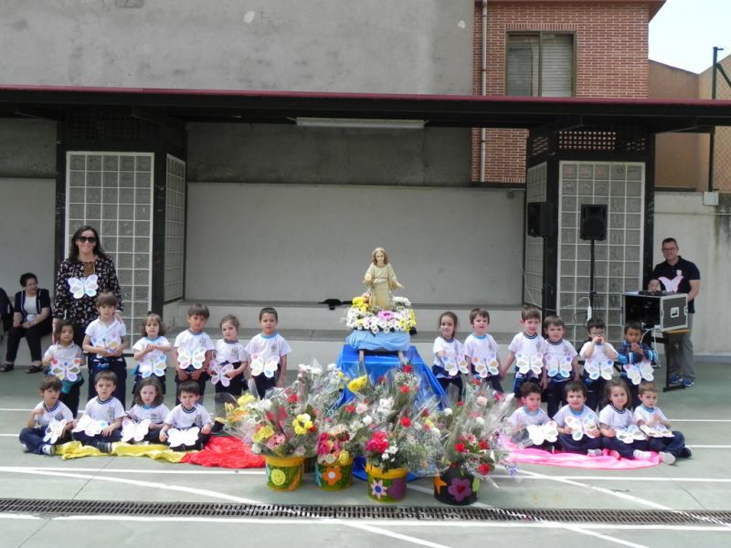 Durante el mes de mayo, los alumnos del Colegio La Inmaculada han coloreado, dibujado y plasmado en una mariposa todos los valores que han trabajado a lo largo del curso: solidaridad, diálogo, silencio, contemplación, fragilidad, meditación, etc. Hoy todos estaban preparados con sus flores para comenzar la procesión con la Virgen Niña por las calles anexas al cole. Una vez en el patio, cada uno ofreció su flor a María a la vez que enseñaba su mariposa como símbolo de amor hacia ella. Cada tutor leyó una pequeña oración de agradecimiento.