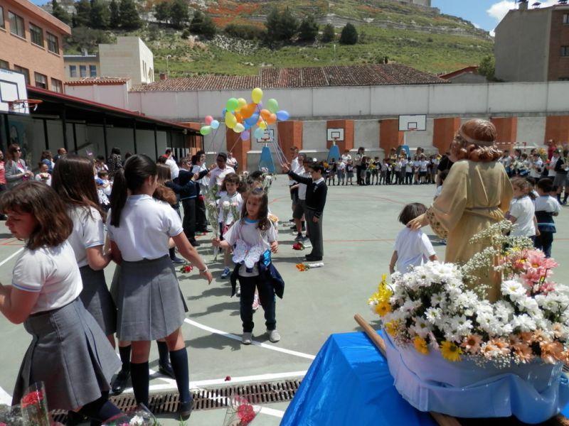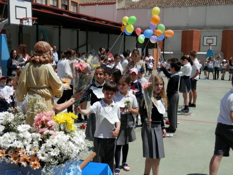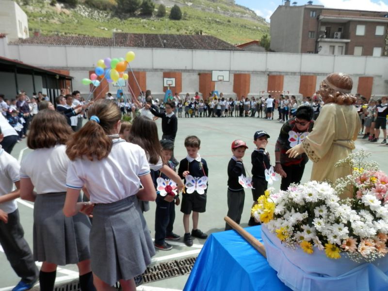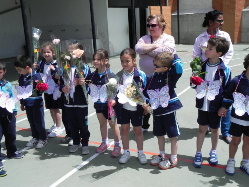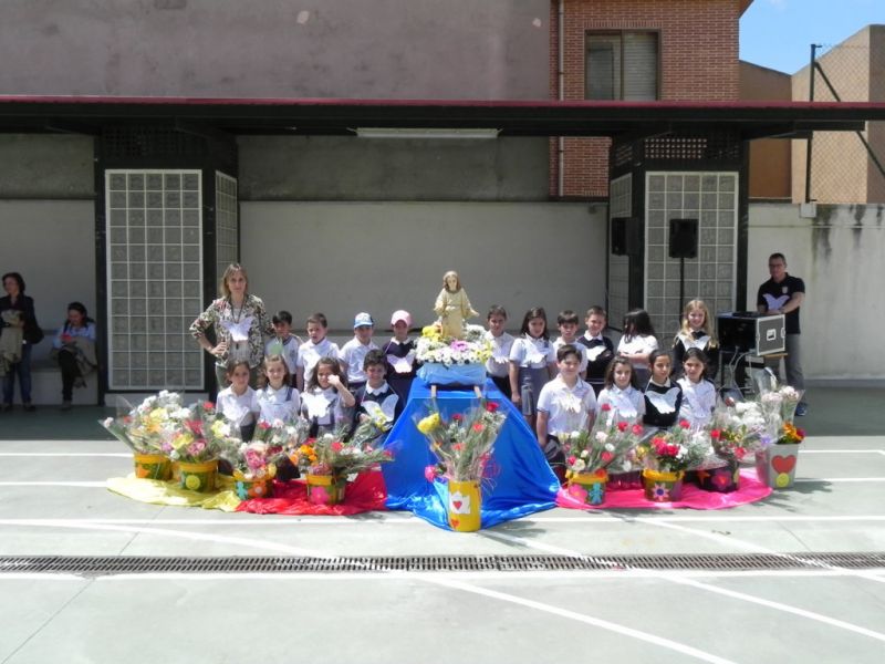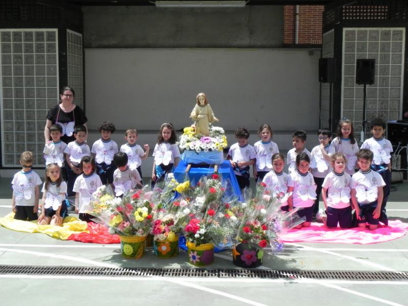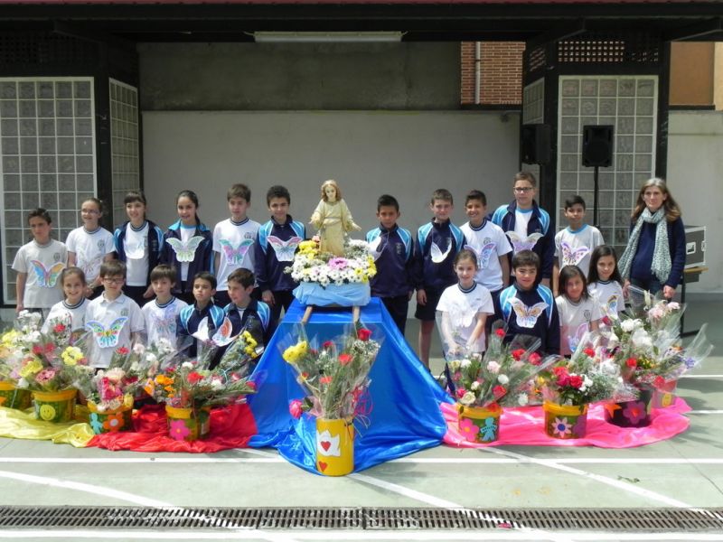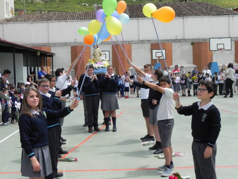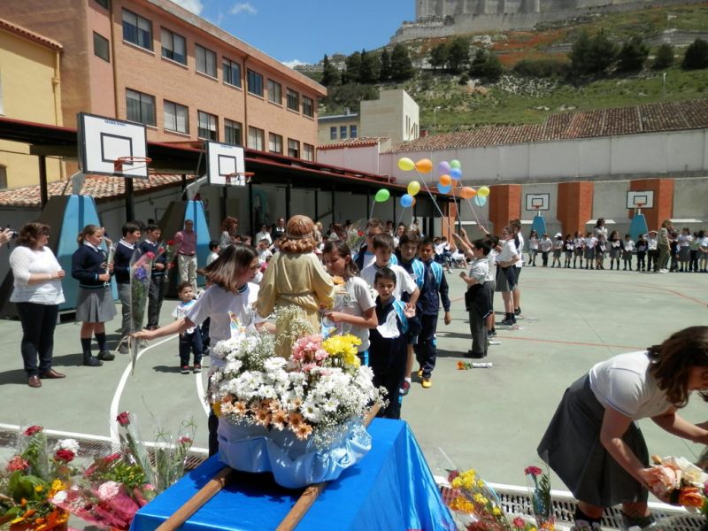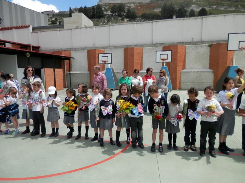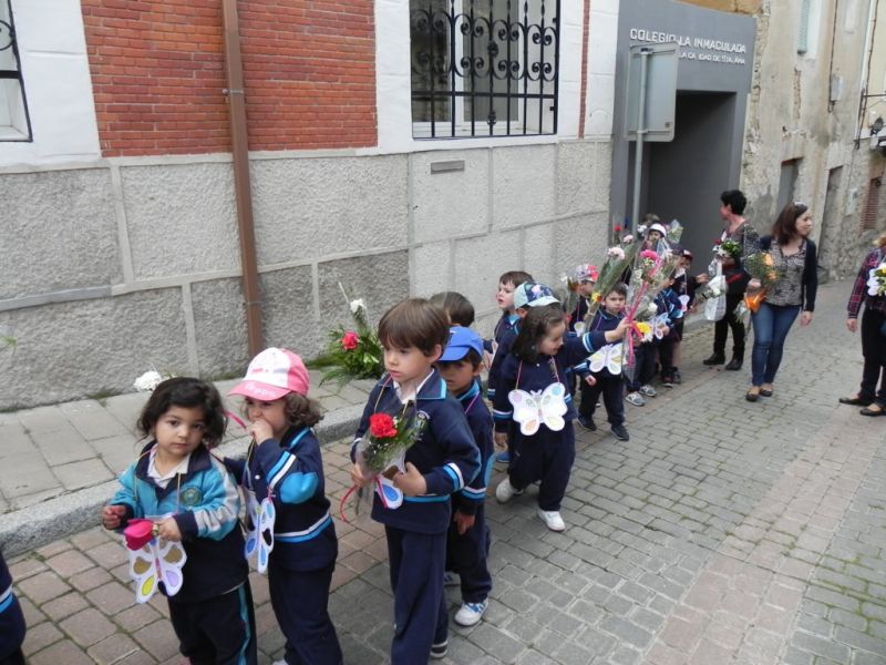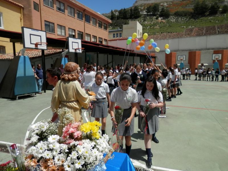 Durante el mes de mayo, los alumnos del Colegio La Inmaculada han coloreado, dibujado y plasmado en una mariposa todos los valores que han trabajado a lo largo del curso: solidaridad, diálogo, silencio, contemplación, fragilidad, meditación, etc. Hoy todos estaban preparados con sus flores para comenzar la procesión con la Virgen Niña por las calles anexas al cole. Una vez en el patio, cada uno ofreció su flor a María a la vez que enseñaba su mariposa como símbolo de amor hacia ella. Cada tutor leyó una pequeña oración de agradecimiento.