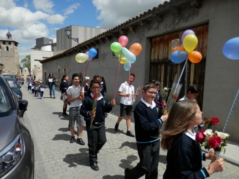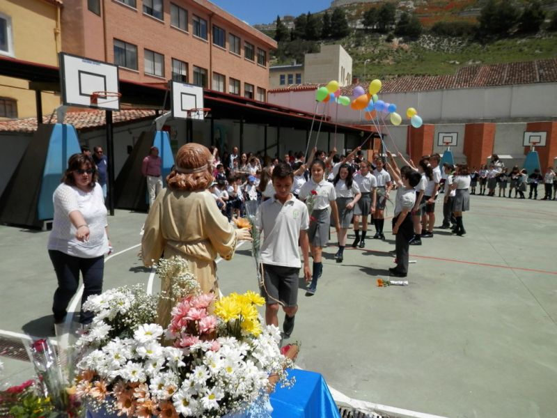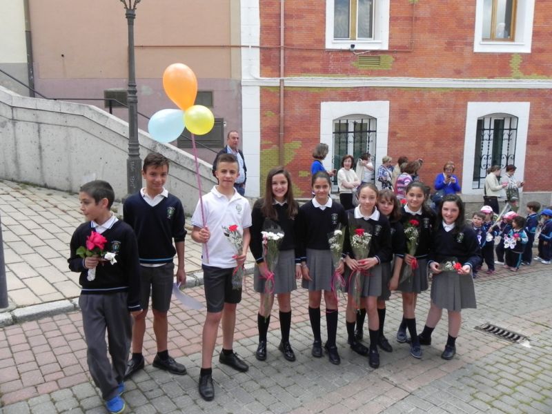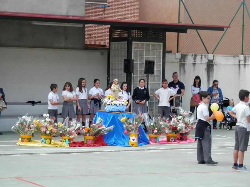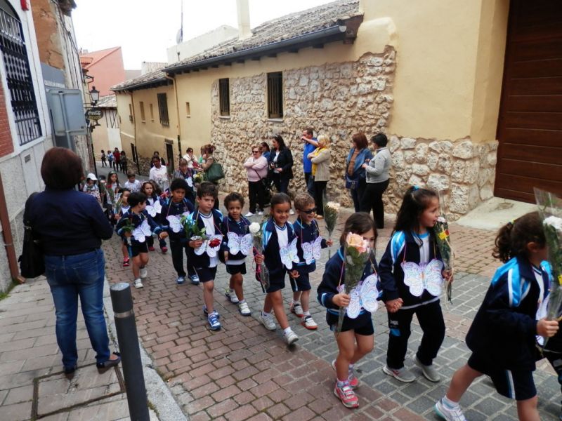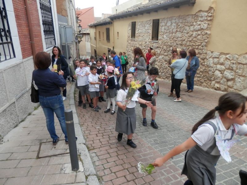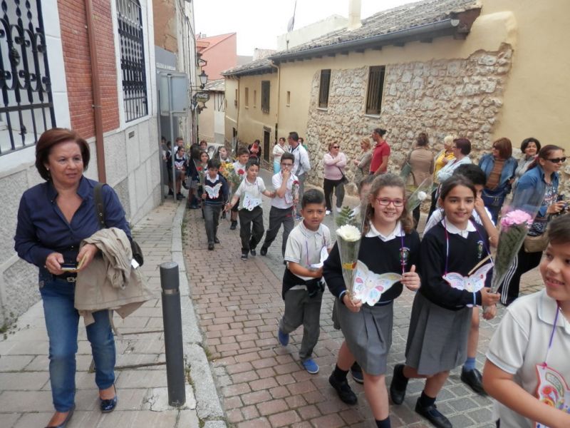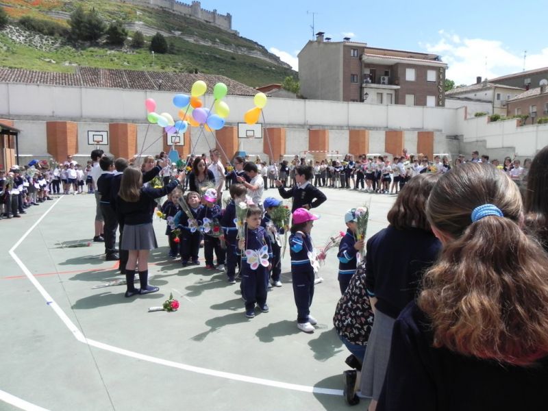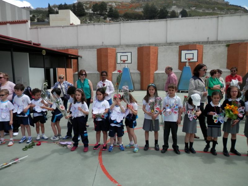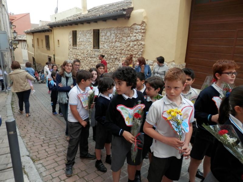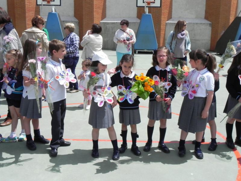 Durante el mes de mayo, los alumnos del Colegio La Inmaculada han coloreado, dibujado y plasmado en una mariposa todos los valores que han trabajado a lo largo del curso: solidaridad, diálogo, silencio, contemplación, fragilidad, meditación, etc. Hoy todos estaban preparados con sus flores para comenzar la procesión con la Virgen Niña por las calles anexas al cole. Una vez en el patio, cada uno ofreció su flor a María a la vez que enseñaba su mariposa como símbolo de amor hacia ella. Cada tutor leyó una pequeña oración de agradecimiento.
