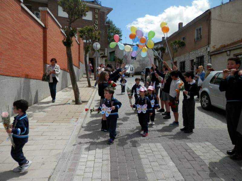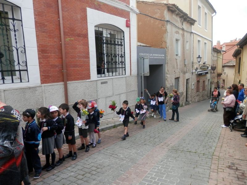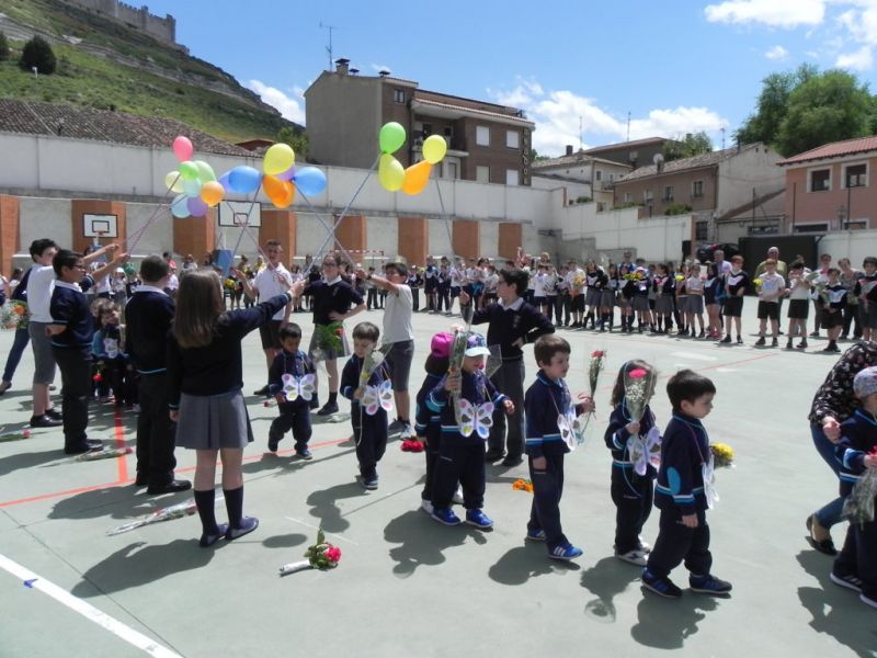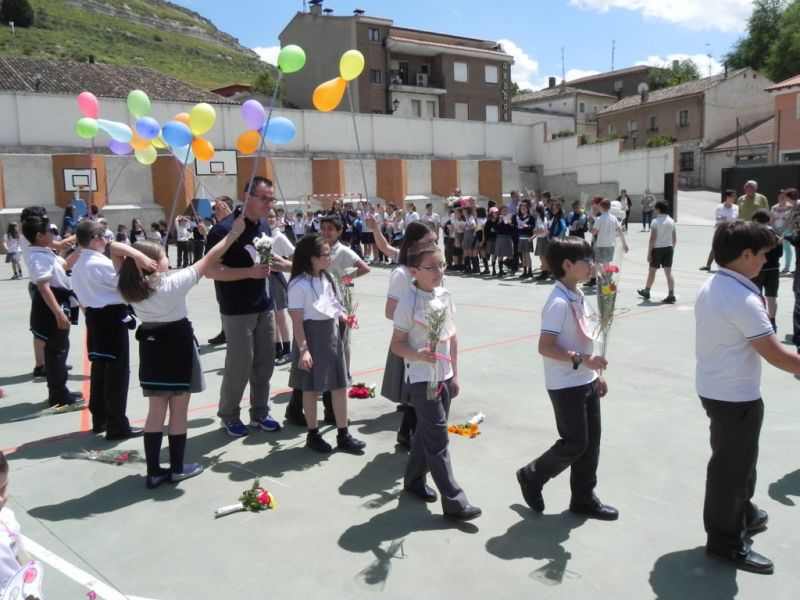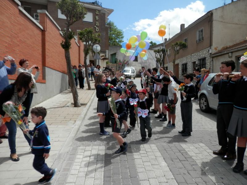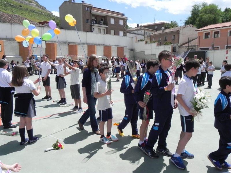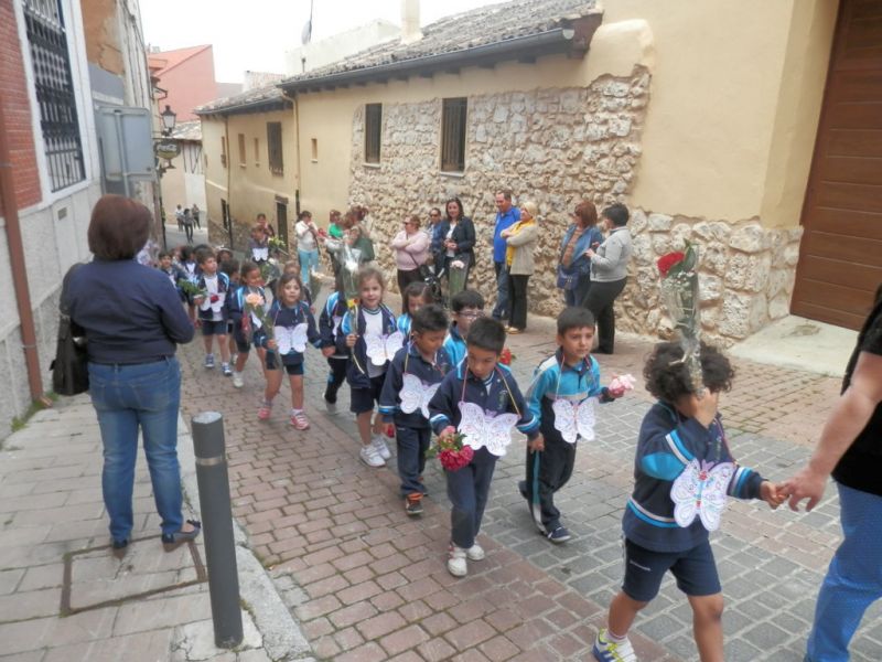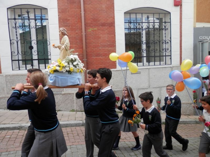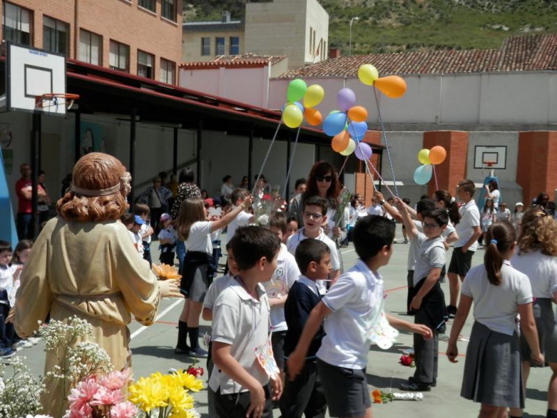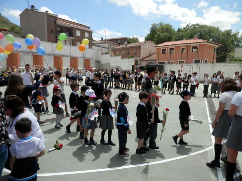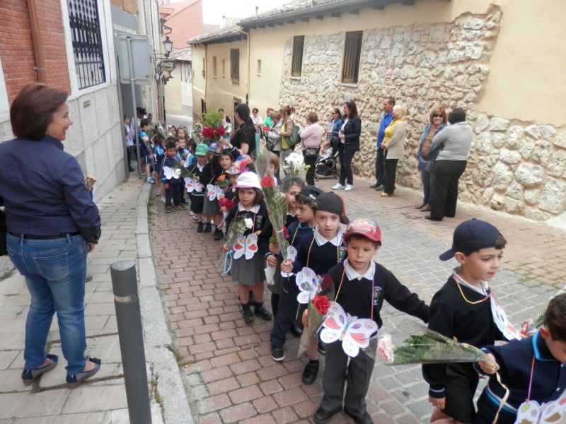 Durante el mes de mayo, los alumnos del Colegio La Inmaculada han coloreado, dibujado y plasmado en una mariposa todos los valores que han trabajado a lo largo del curso: solidaridad, diálogo, silencio, contemplación, fragilidad, meditación, etc. Hoy todos estaban preparados con sus flores para comenzar la procesión con la Virgen Niña por las calles anexas al cole. Una vez en el patio, cada uno ofreció su flor a María a la vez que enseñaba su mariposa como símbolo de amor hacia ella. Cada tutor leyó una pequeña oración de agradecimiento.