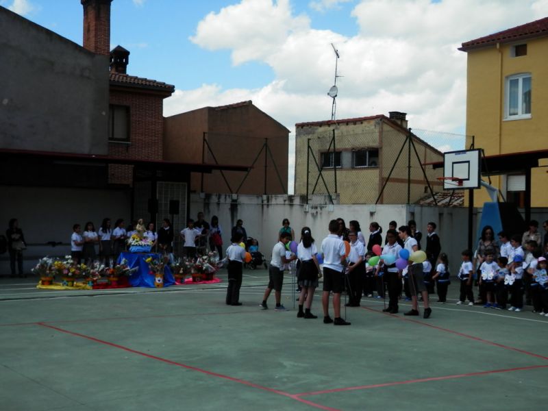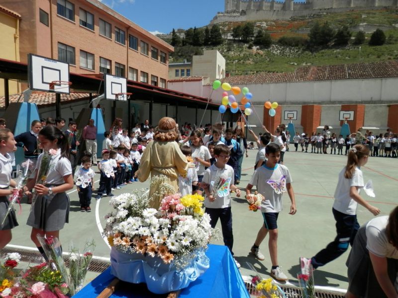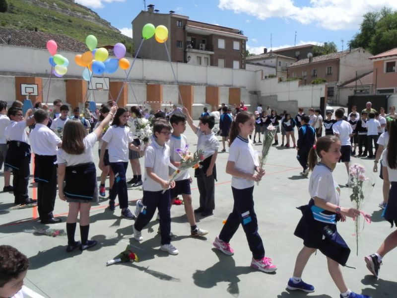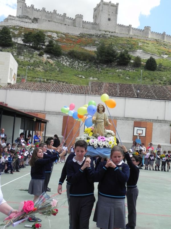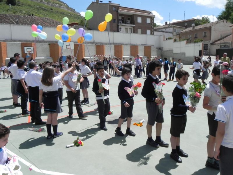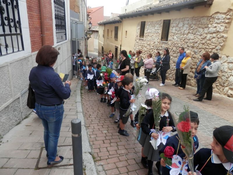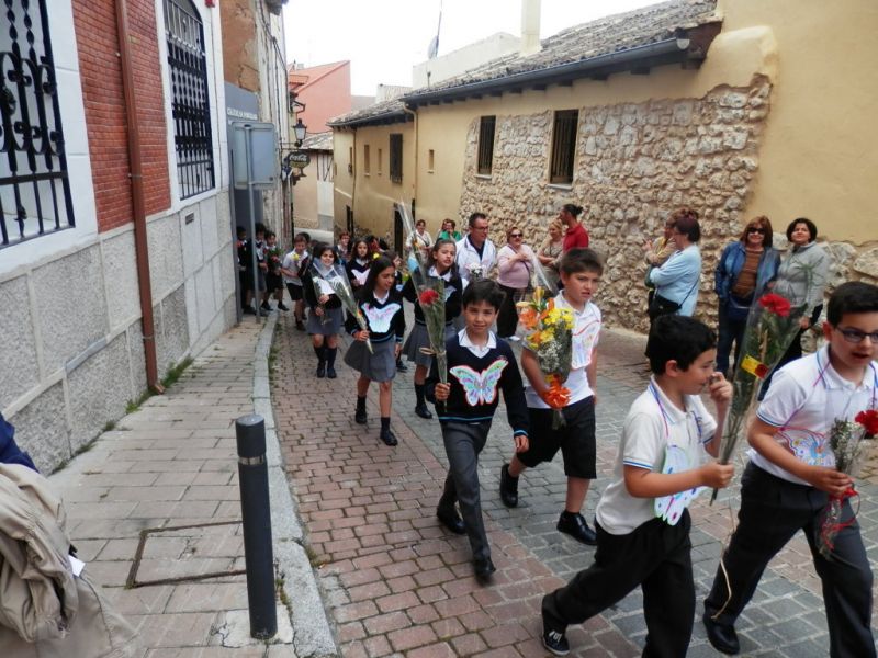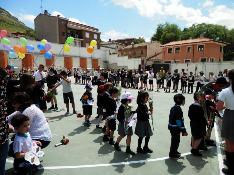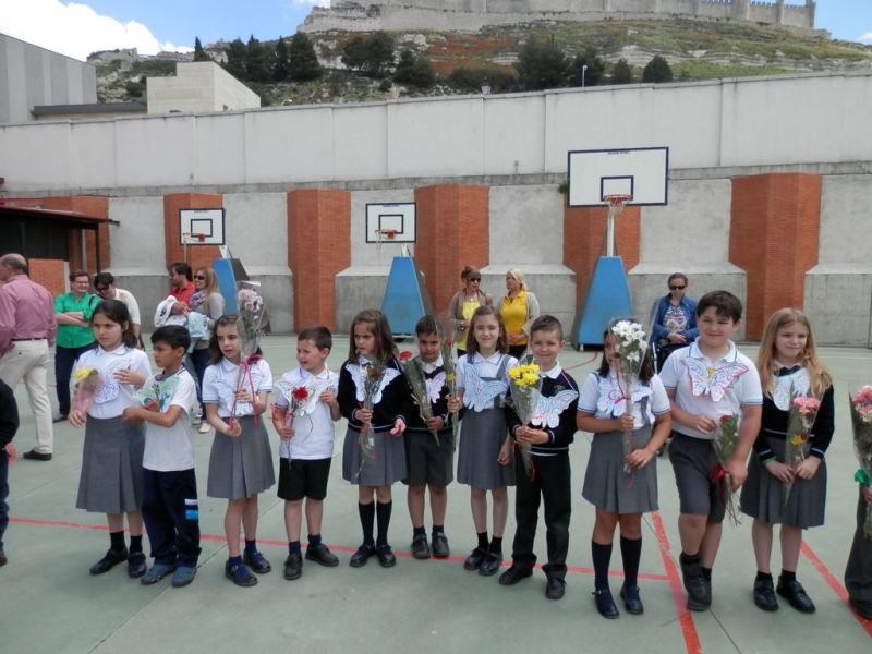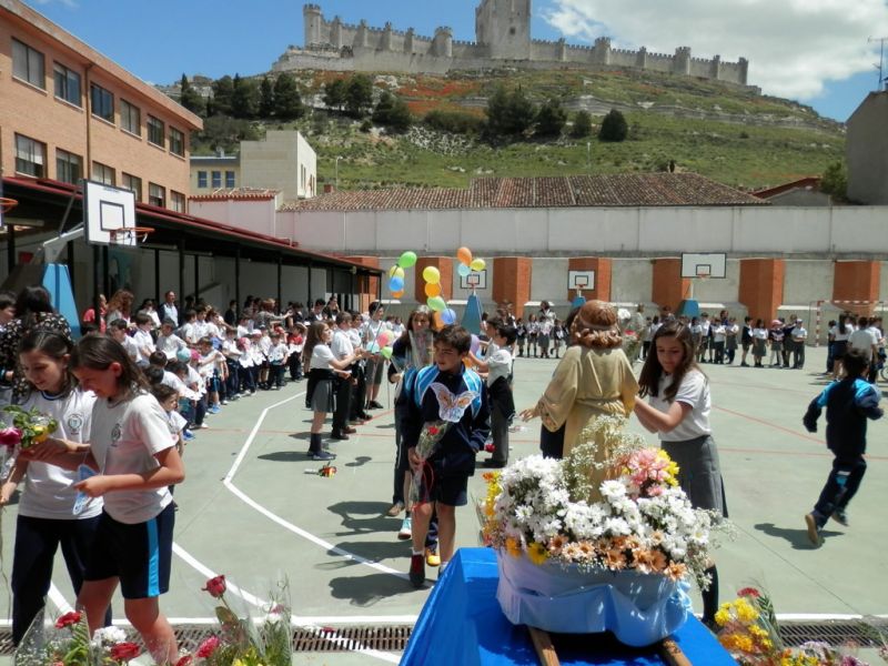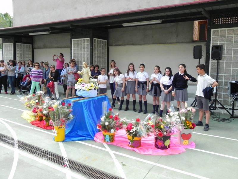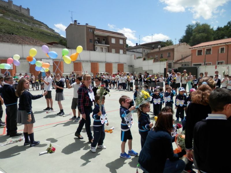 Durante el mes de mayo, los alumnos del Colegio La Inmaculada han coloreado, dibujado y plasmado en una mariposa todos los valores que han trabajado a lo largo del curso: solidaridad, diálogo, silencio, contemplación, fragilidad, meditación, etc. Hoy todos estaban preparados con sus flores para comenzar la procesión con la Virgen Niña por las calles anexas al cole. Una vez en el patio, cada uno ofreció su flor a María a la vez que enseñaba su mariposa como símbolo de amor hacia ella. Cada tutor leyó una pequeña oración de agradecimiento.