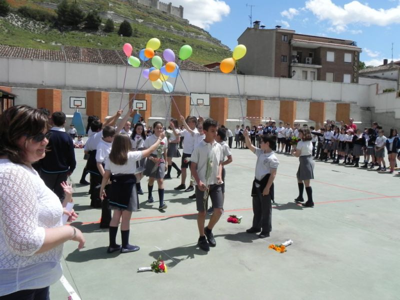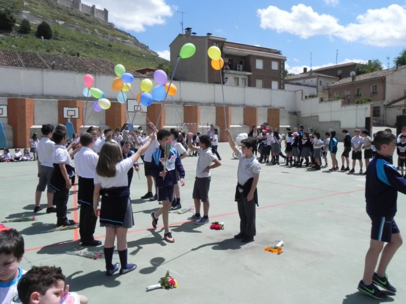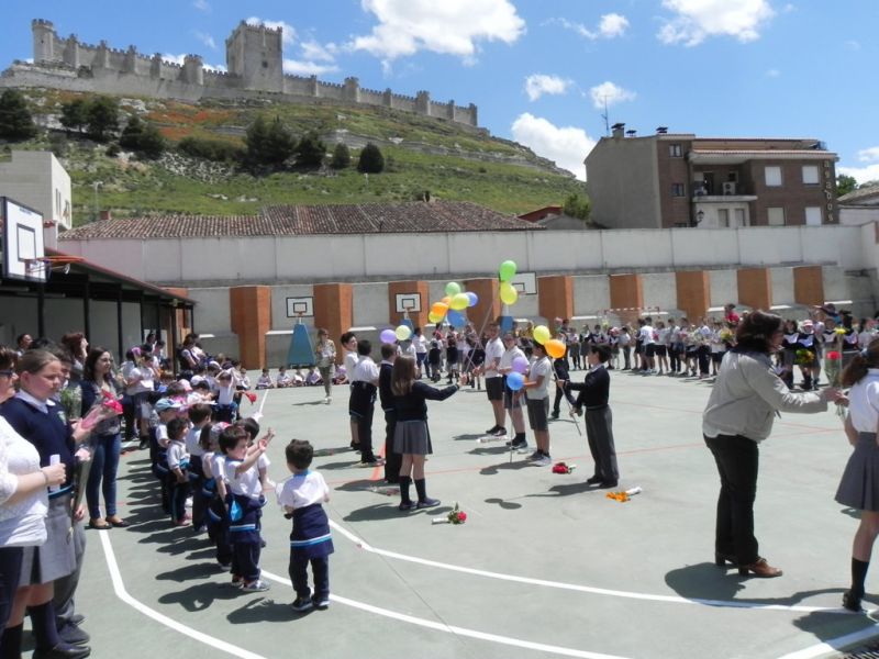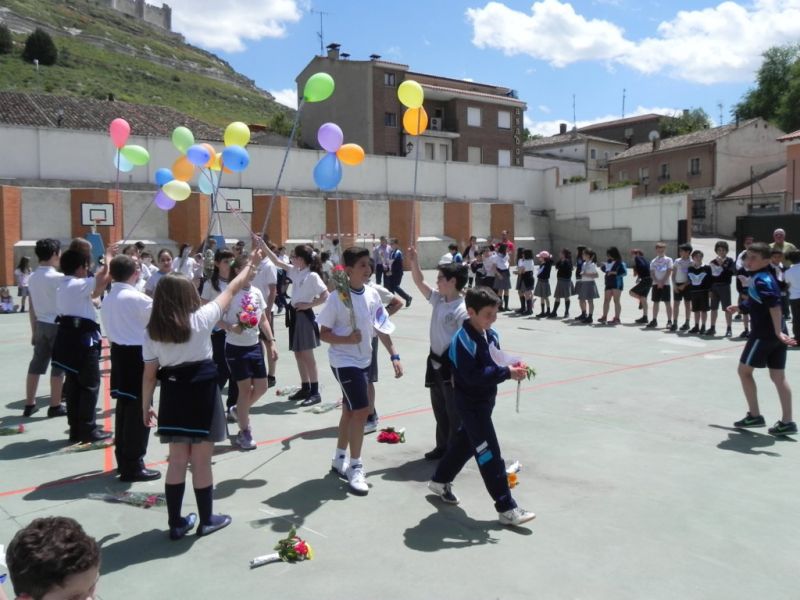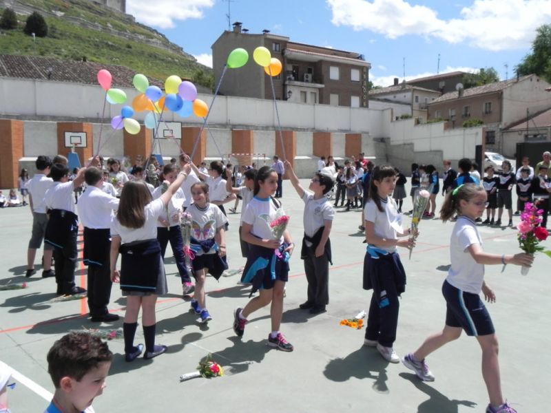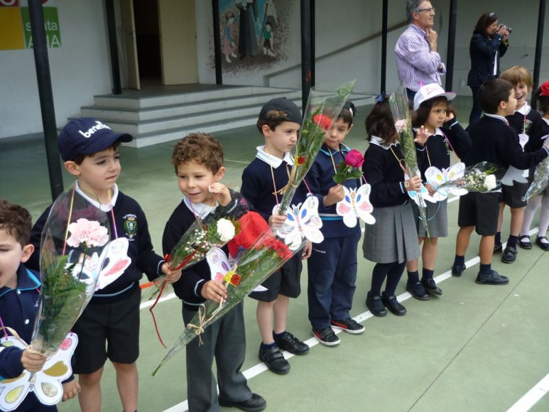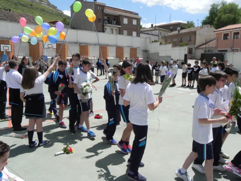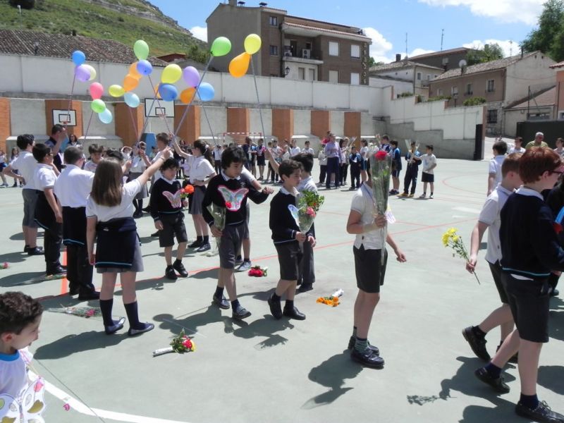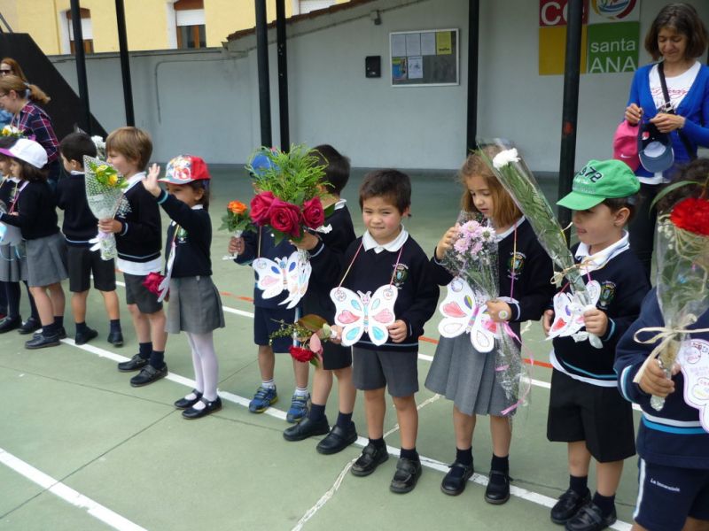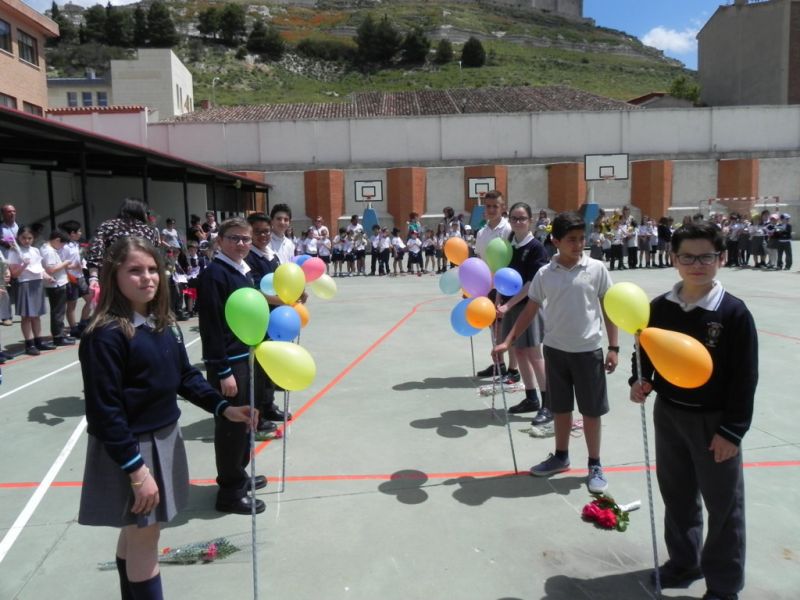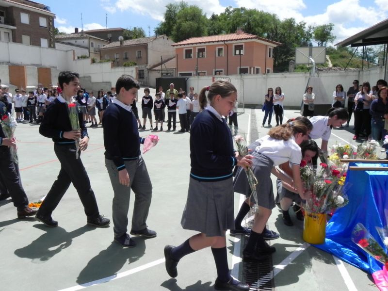 Durante el mes de mayo, los alumnos del Colegio La Inmaculada han coloreado, dibujado y plasmado en una mariposa todos los valores que han trabajado a lo largo del curso: solidaridad, diálogo, silencio, contemplación, fragilidad, meditación, etc. Hoy todos estaban preparados con sus flores para comenzar la procesión con la Virgen Niña por las calles anexas al cole. Una vez en el patio, cada uno ofreció su flor a María a la vez que enseñaba su mariposa como símbolo de amor hacia ella. Cada tutor leyó una pequeña oración de agradecimiento.