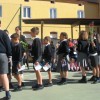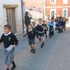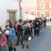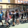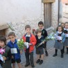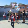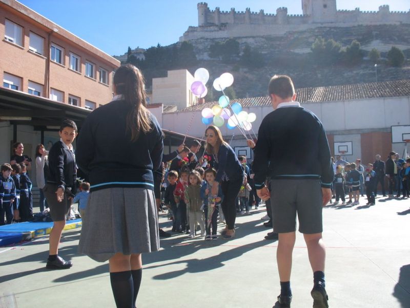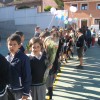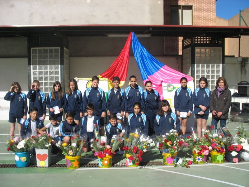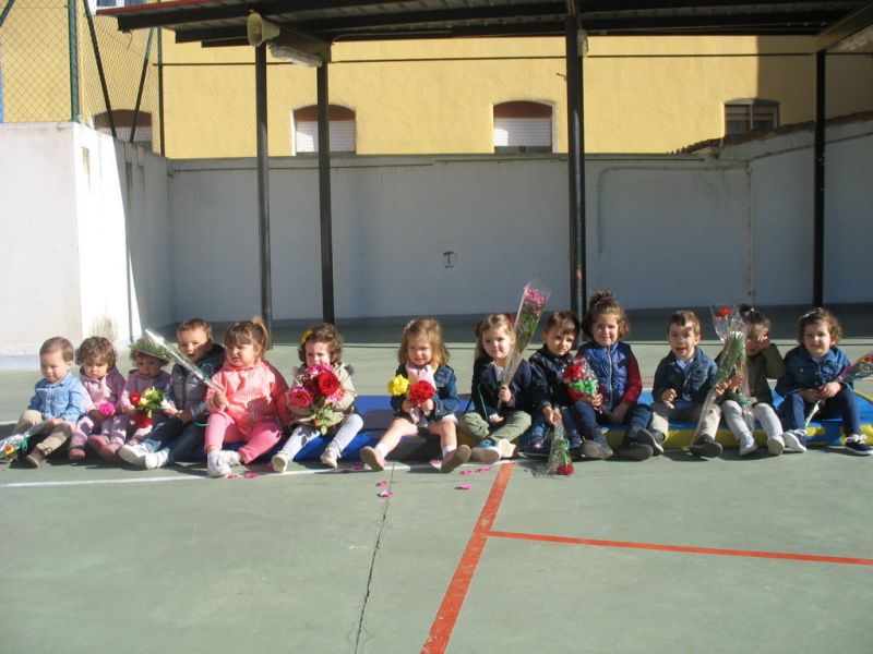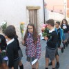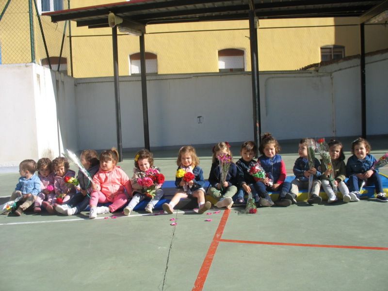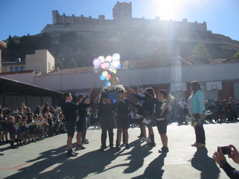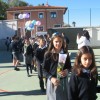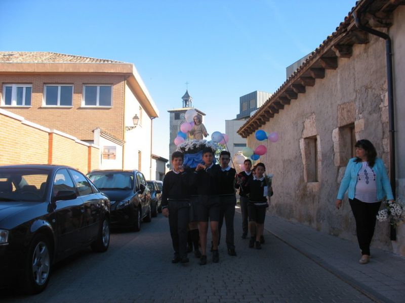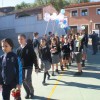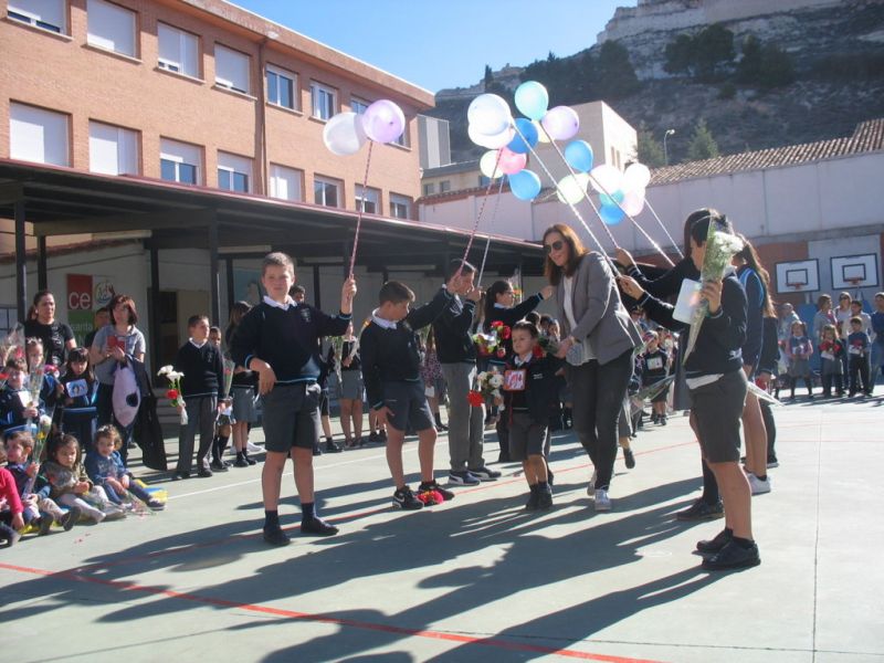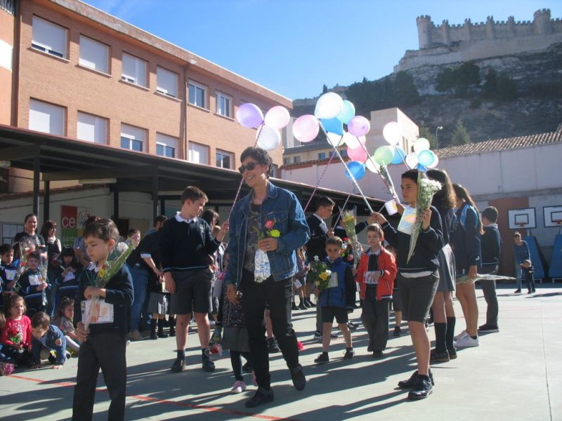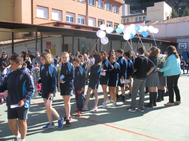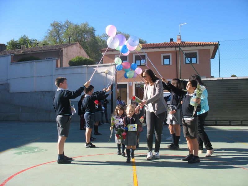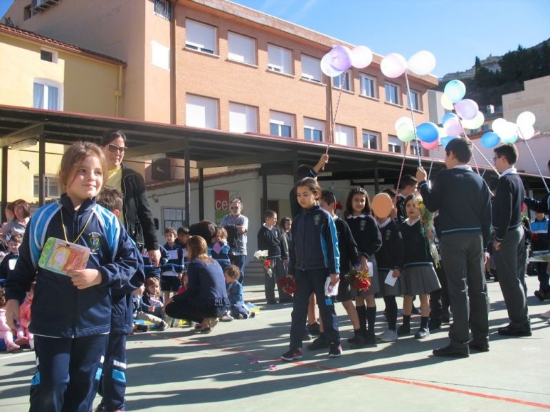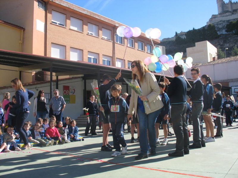 Hoy  todos estaban preparados con sus flores y sus mensajes para comenzar la procesión con la Virgen Niña por las calles anexas al cole. Una vez en el patio,  cada uno ofreció su flor a María a la vez que enseñaba su mensaje como símbolo de amor hacia ella.