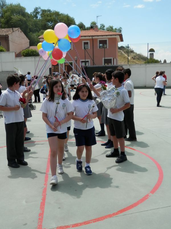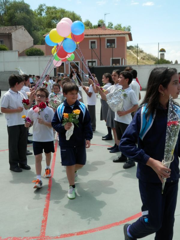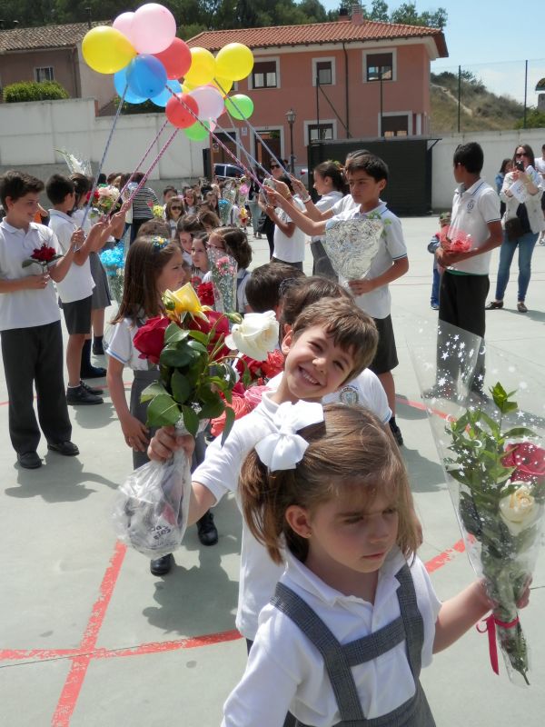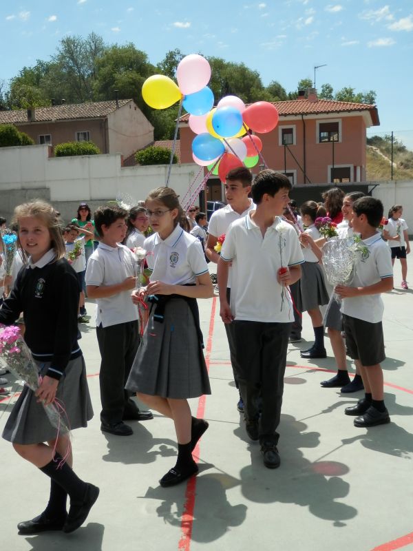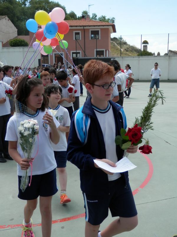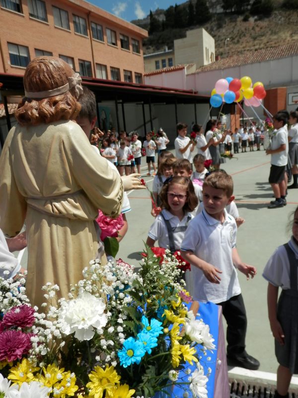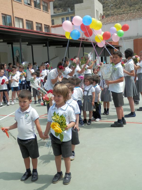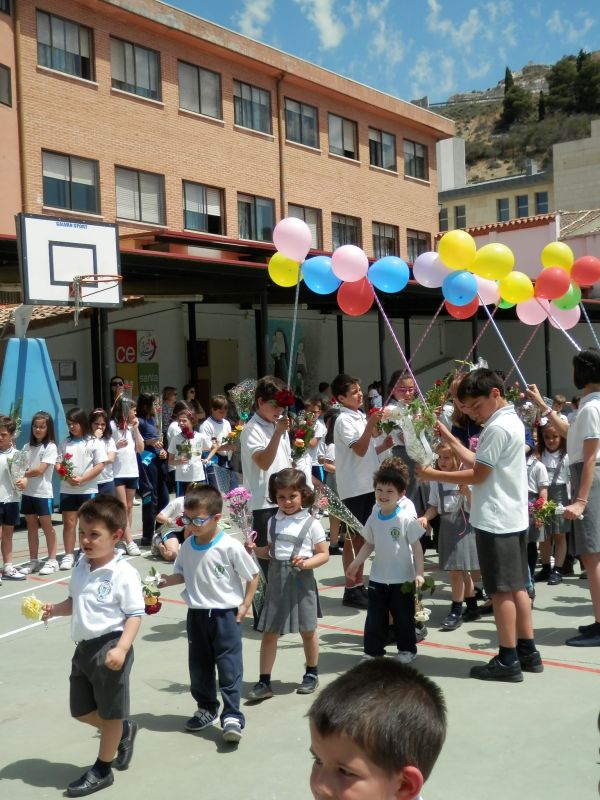 Durante el mes de mayo, los alumnos del Colegio La Inmaculada han estado trabajando la estrella que cada uno tenemos en nuestro interior, como la podemos exteriorizar y hacer felices a los demás. El último día lectivo de mayo, a las 13:00 horas, todos los alumnos del cole estaban preparados con sus flores para comenzar la procesión con la Virgen Niña por las calles anexas al cole. Una vez en el patio del cole, cada alumno ofreció su flor a María, en agradecimiento al amor que nos regala cada día de nuestra vida. Además de la flor, los más pequeños cantaron y bailaron una canción y el resto de cursos leyeron su oración.