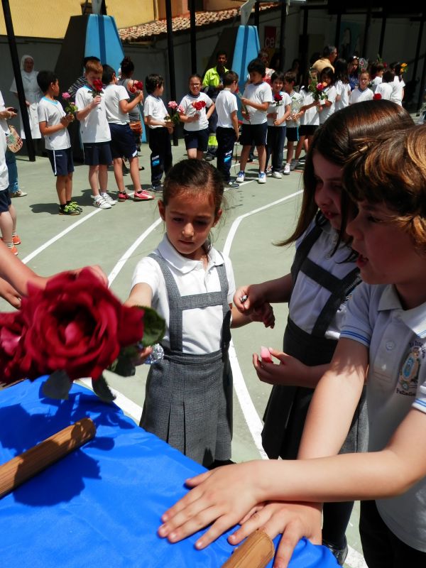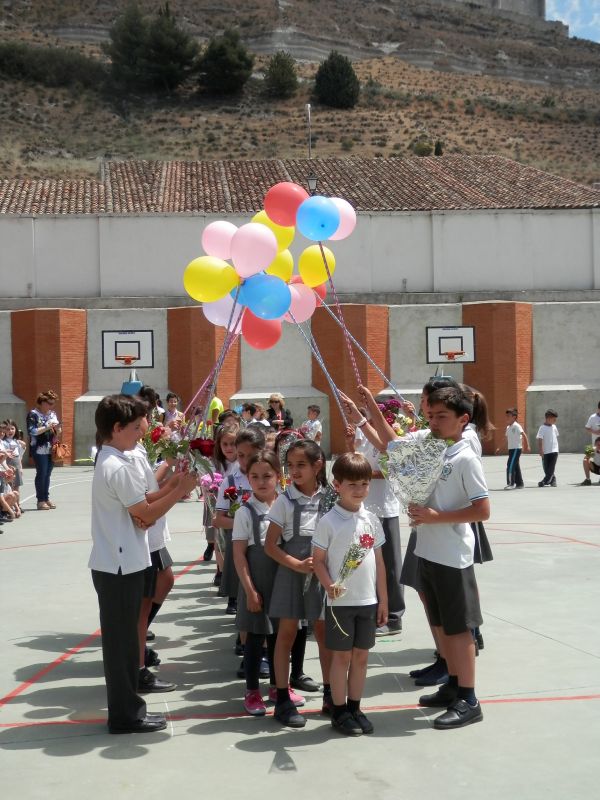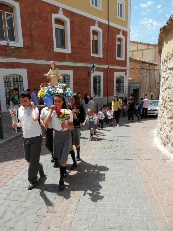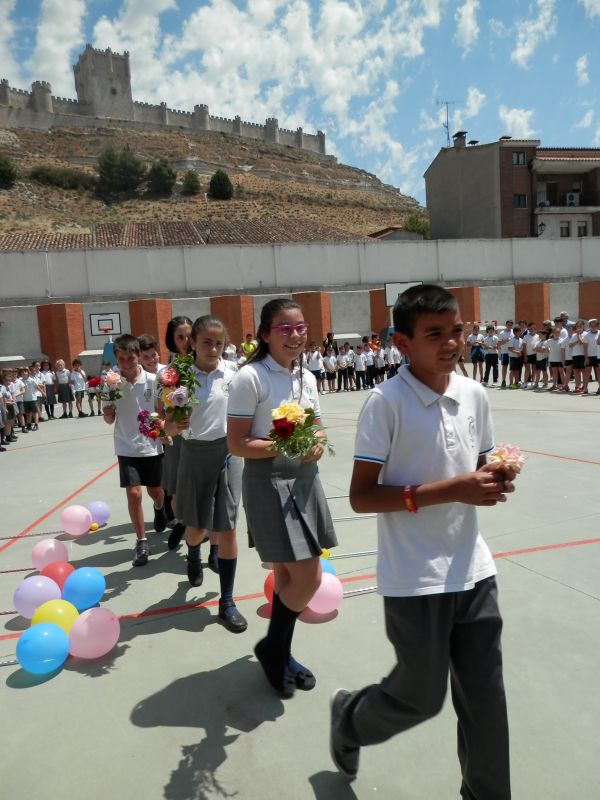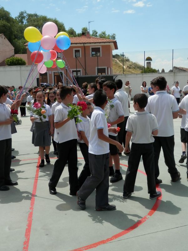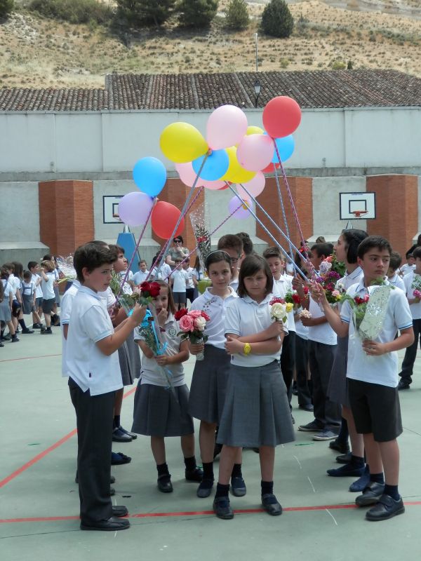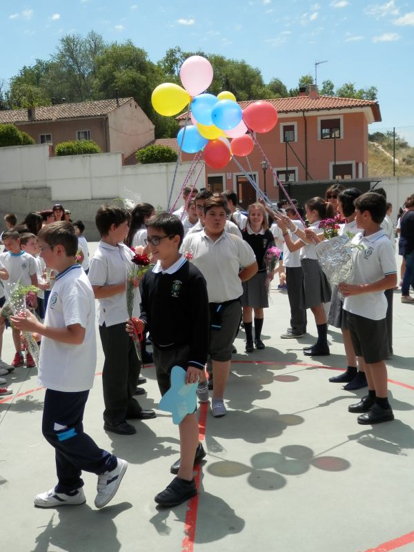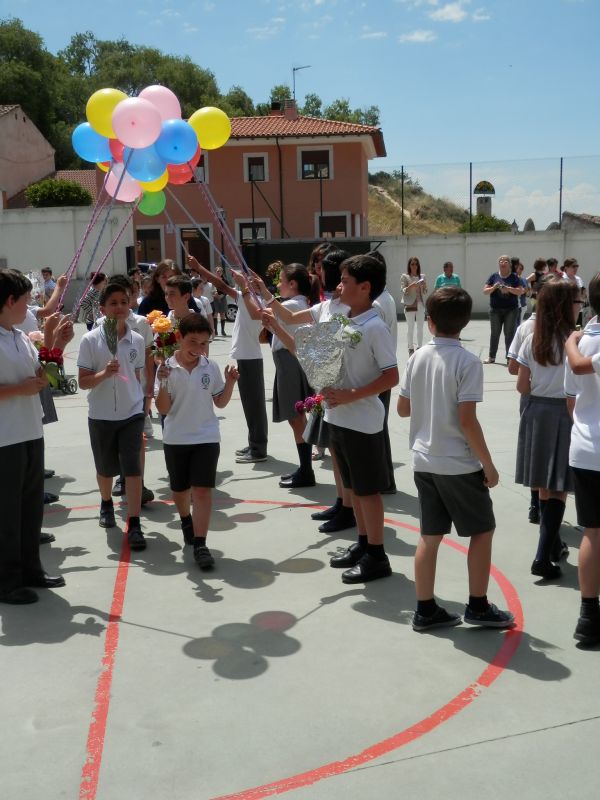 Durante el mes de mayo, los alumnos del Colegio La Inmaculada han estado trabajando la estrella que cada uno tenemos en nuestro interior, como la podemos exteriorizar y hacer felices a los demás. El último día lectivo de mayo, a las 13:00 horas, todos los alumnos del cole estaban preparados con sus flores para comenzar la procesión con la Virgen Niña por las calles anexas al cole. Una vez en el patio del cole, cada alumno ofreció su flor a María, en agradecimiento al amor que nos regala cada día de nuestra vida. Además de la flor, los más pequeños cantaron y bailaron una canción y el resto de cursos leyeron su oración.