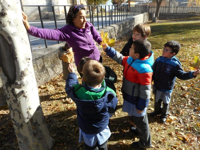 Los alumnos de 3º de Infantil han recibido una petición muy especial: convertirse en “cuidadores” de árboles. En clase han repasado todo lo que saben sobre los árboles y las estaciones y han contado el cuento de “El último día del verano”. A continuación, han ido en busca de “sus” árboles por los alrededores de San Vicente. Los escogidos han sido un platanero de sombra (al que cuidará el equipo de los leones), un olmo (cuidado por el equipo de las águilas), un aligustre (al cargo del equipo de los lobos) y un arce (encargado al equipo de los búhos).