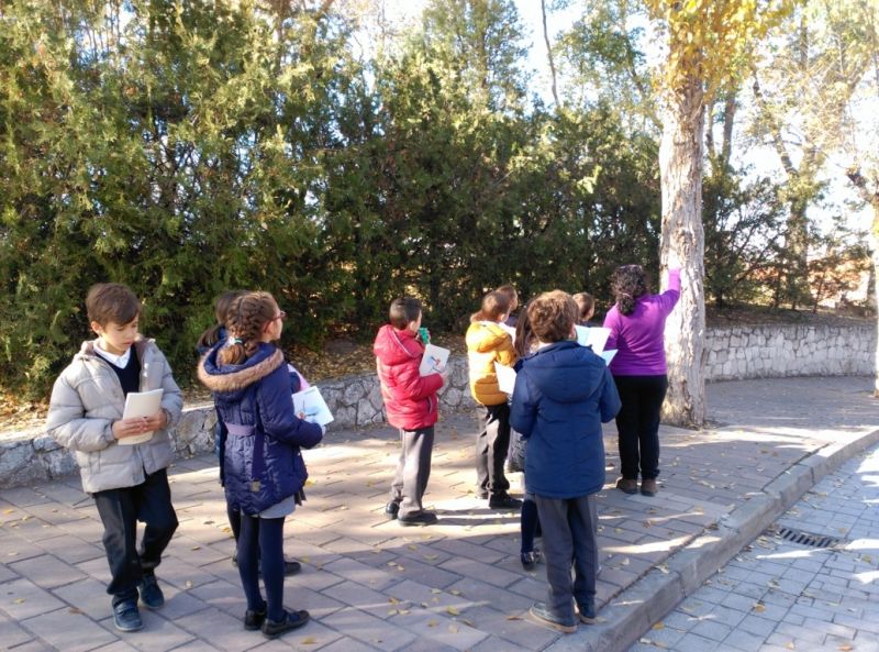 Hoy, los niños/as de 3º de E. Infantil y 3º de Primaria han realizado una de las sesiones para fomentar el cuidado y respeto por el medio ambiente. Han estado guiados, magníficamente por Clara, especialista de la Diputación de Valladolid. Les ha repartido, a cada uno, un cuaderno de campo (de estaciones) donde tienen que apuntar todo lo que van descubriendo, árboles, arbustos, animales…, aprendiendo su nombre y características y dando alguna pequeña tarea de investigación para casa.