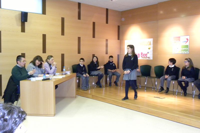 Hoy se ha realizado la segunda fase, en la que los semifinalistas acudieron al salón de actos del colegio, donde también las familias estaban invitadas. El jurado lo formaban profesoras de inglés del colegio, Mar-bella Morán y Ana Jiménez y como invitado especial Santiago de la Horra, profesor y director de la academia SH Idiomas.