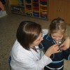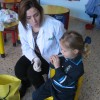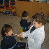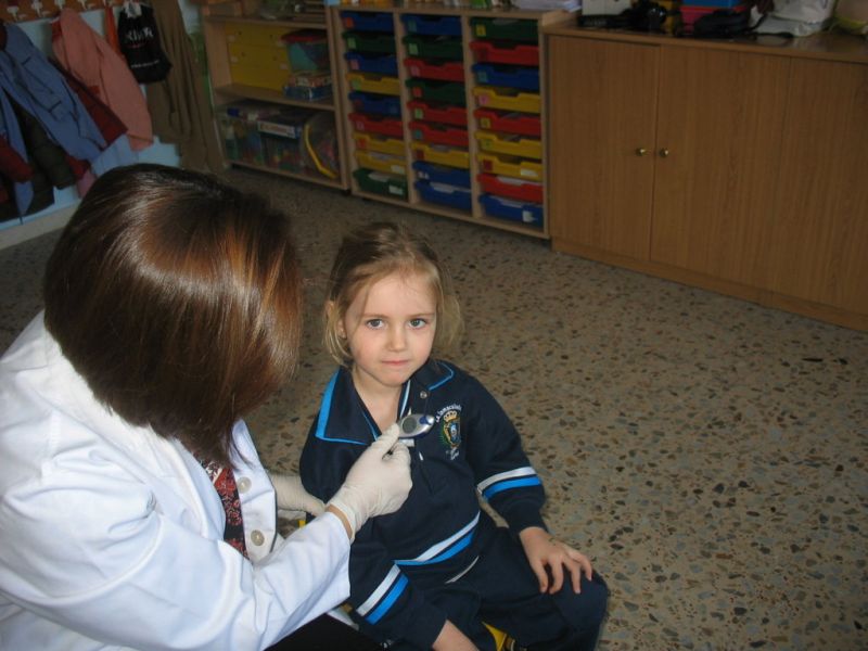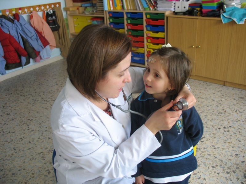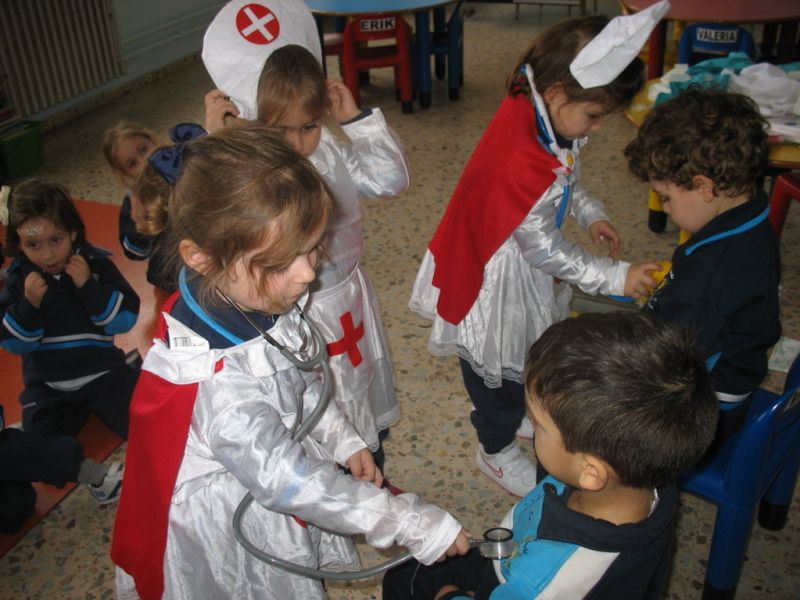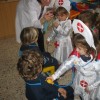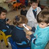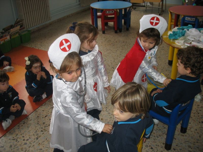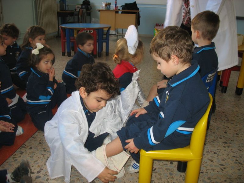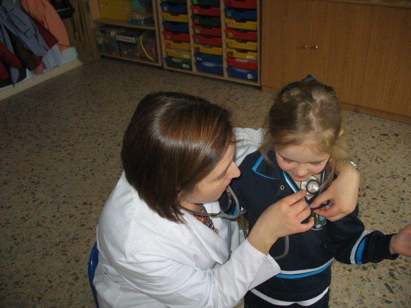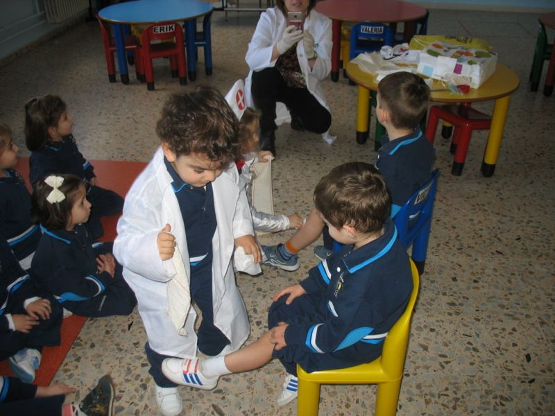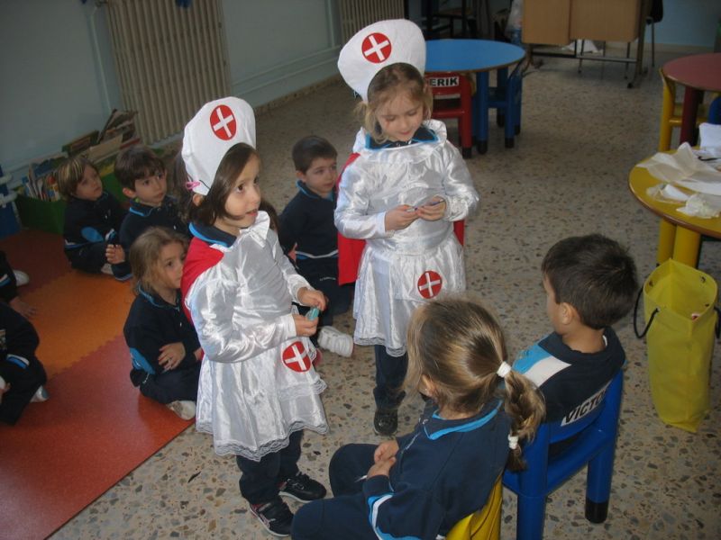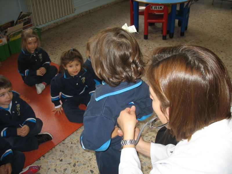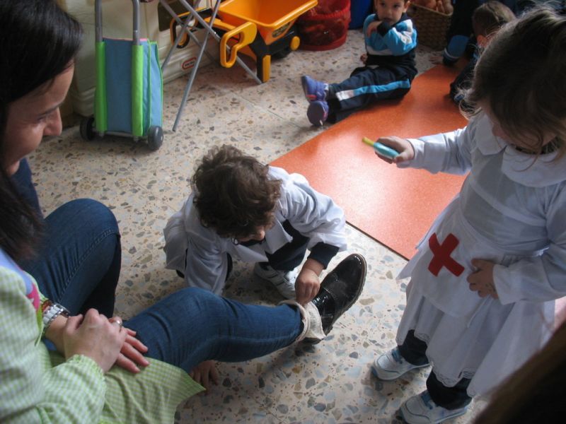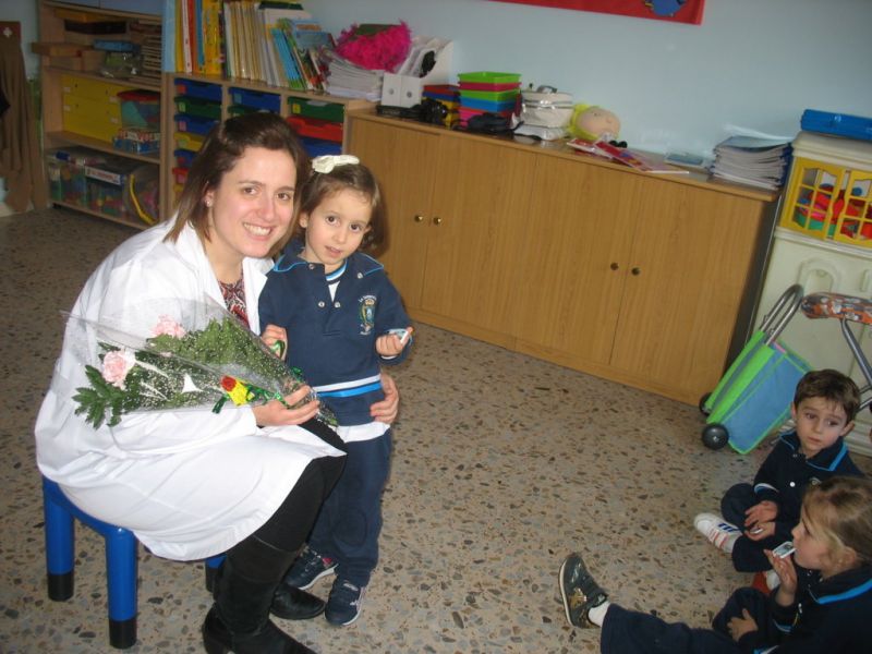 Ayer. los alumnos de 1º de infantil tuvieron una visita muy especial. Una profesional de la enfermería vino a contarnos muchas cosas de cuando nos ponemos malitos o nos hacemos alguna herida. Nos enseñó vendas, termómetros, tiritas, esparadrapos, palitos, etc. Nuestra clase se convirtió en una auténtica enfermería y con su ayuda ya tenemos menos miedo cuando nos hacen una cura o nos ponen una vacuna. Todos querían ser enfermeras y doctores.