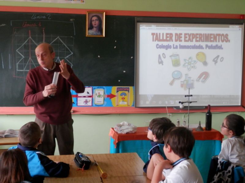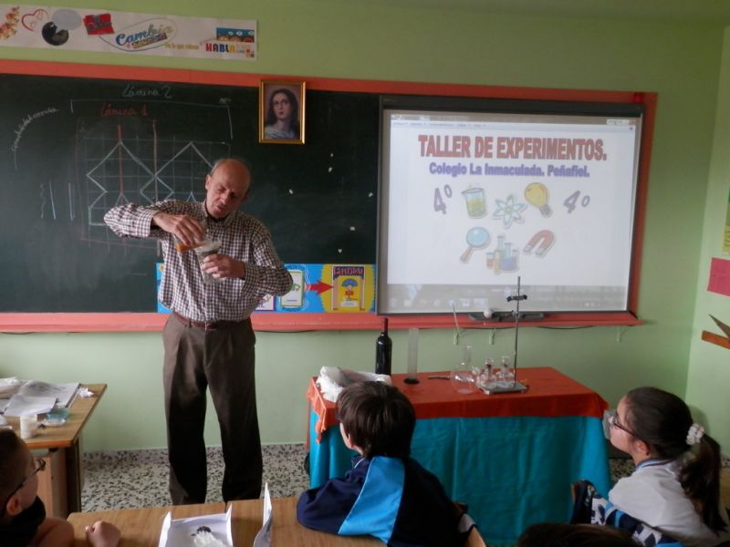 Los alumnos de 4º de primaria reciben  la visita de  D. Antonio Alonso, profesor experto en ciencias puras y técnicas de laboratorio que sorprendió a nuestros alumnos con increíbles y divertidos experimentos donde afianzaron los contenidos vistos en éstos días.