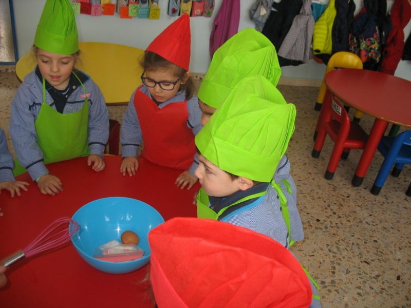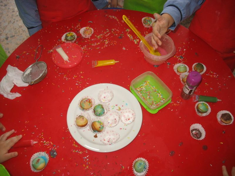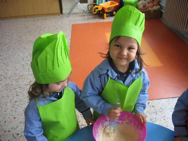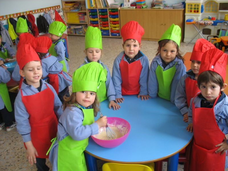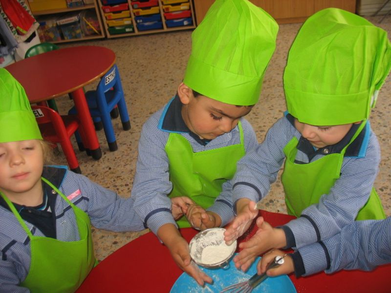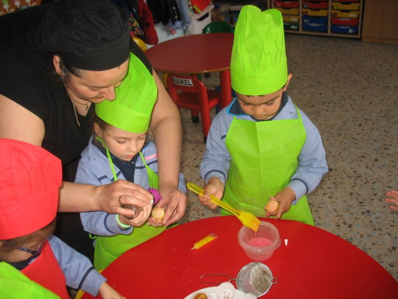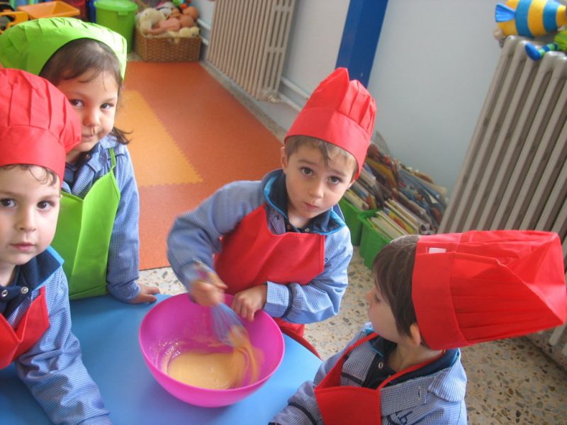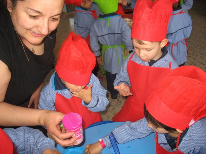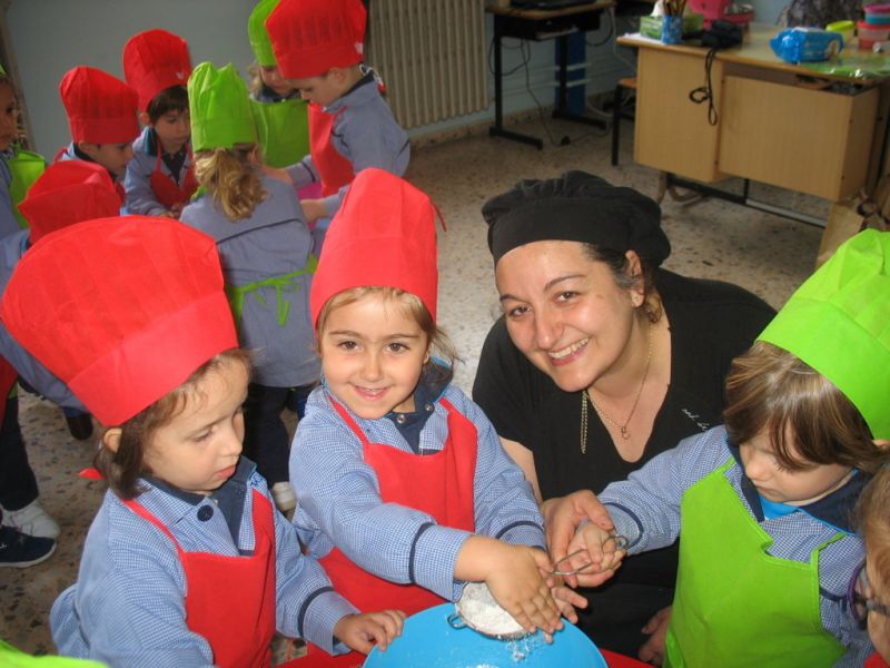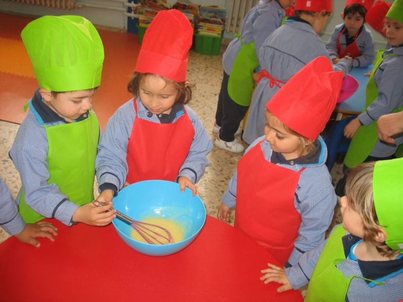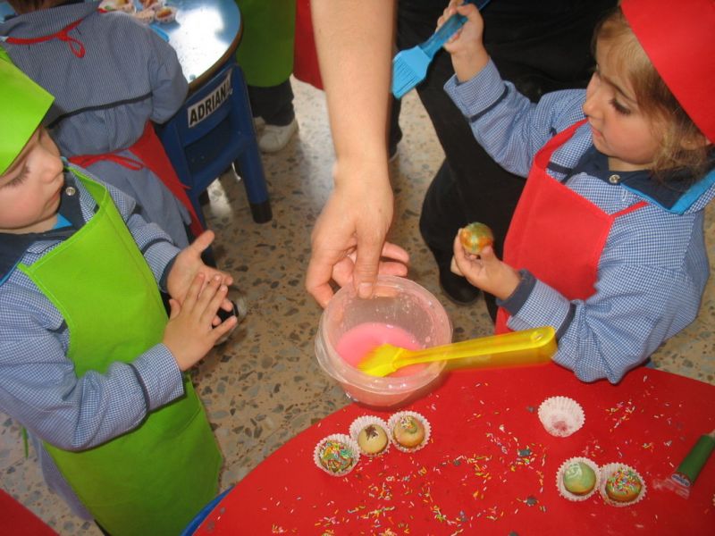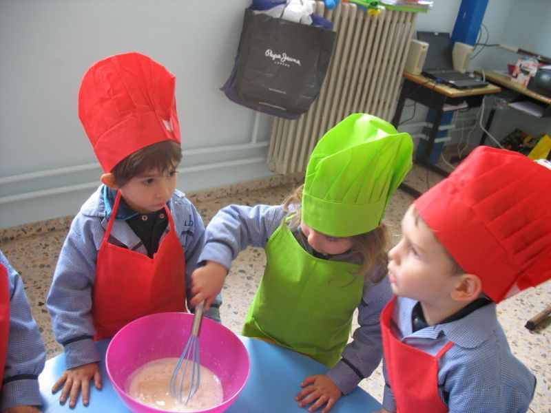 Hoy, los niñ@s de 1º de Infantil han tenido un taller de repostería, han amasado, batido y decorado sus propios dulces, todo de la mano de una experta cocinera.