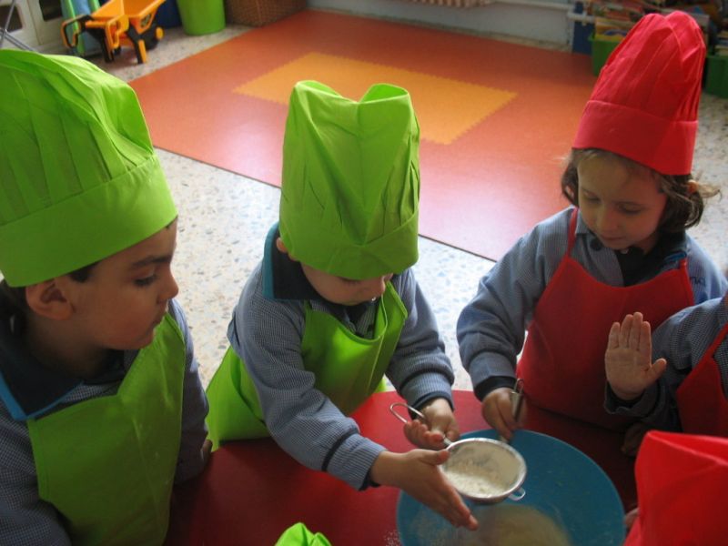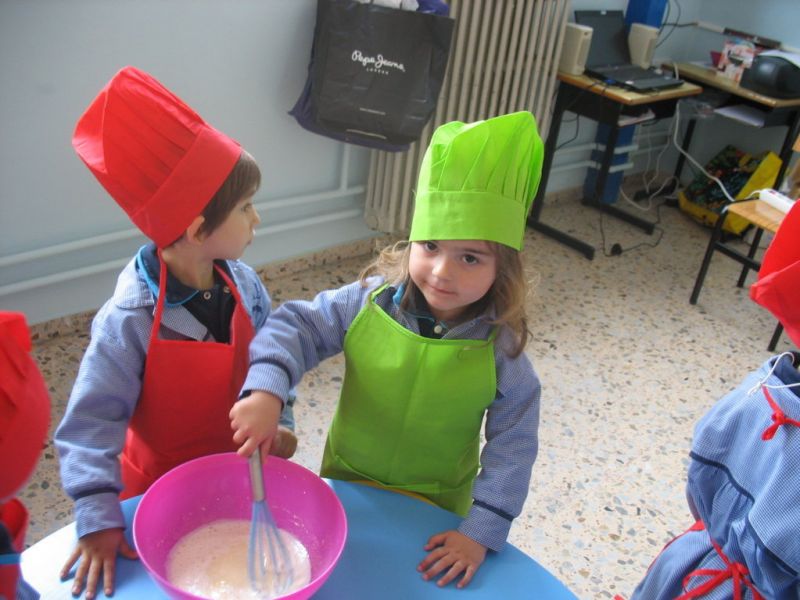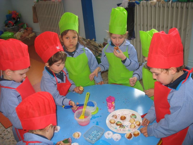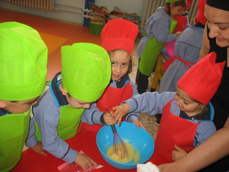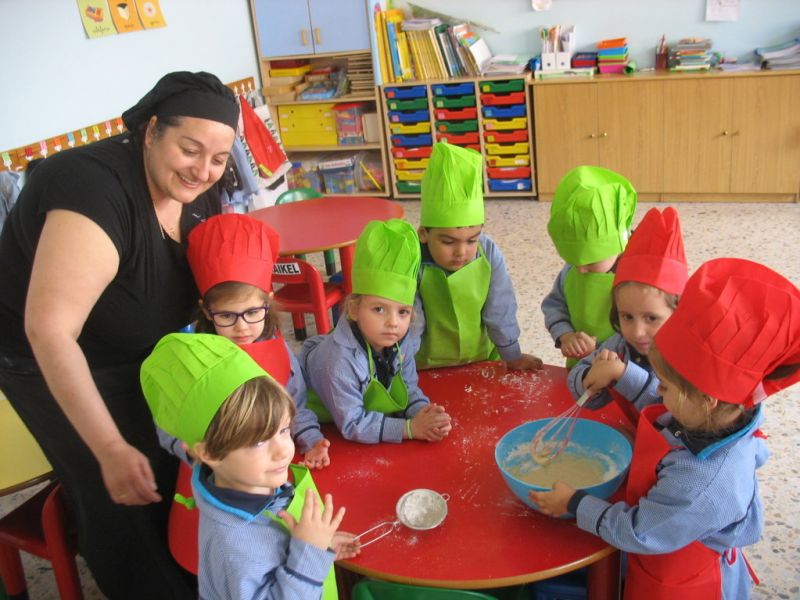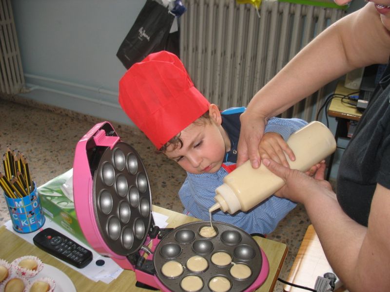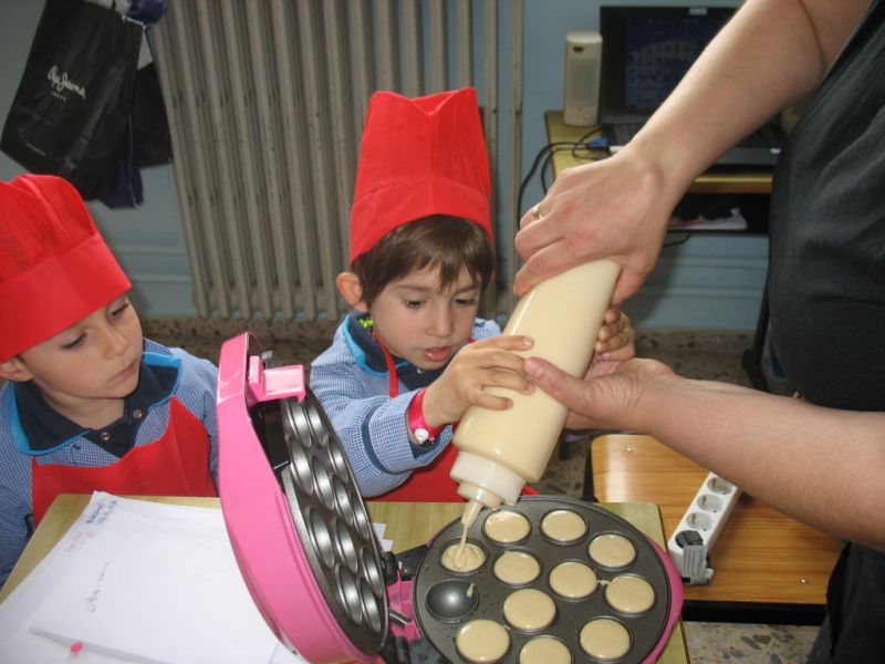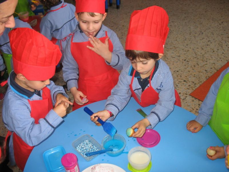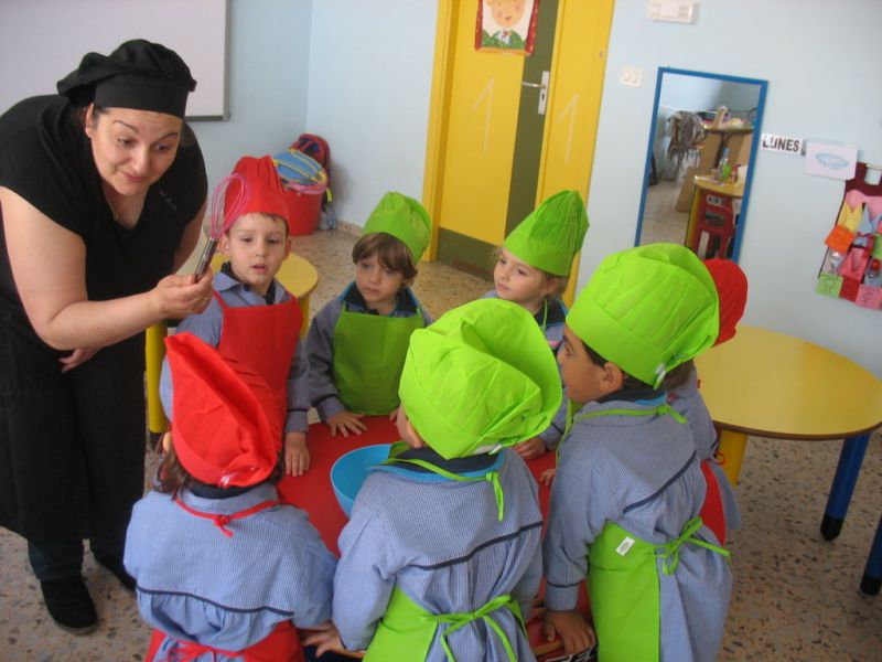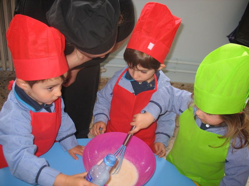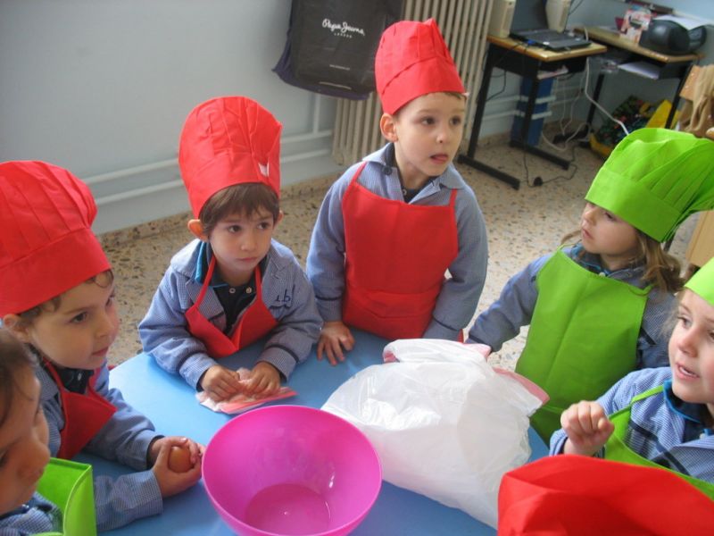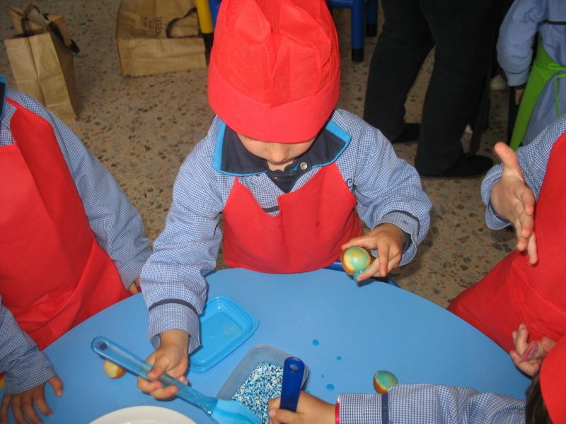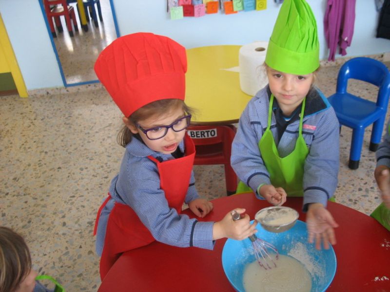 Hoy, los niñ@s de 1º de Infantil han tenido un taller de repostería, han amasado, batido y decorado sus propios dulces, todo de la mano de una experta cocinera.