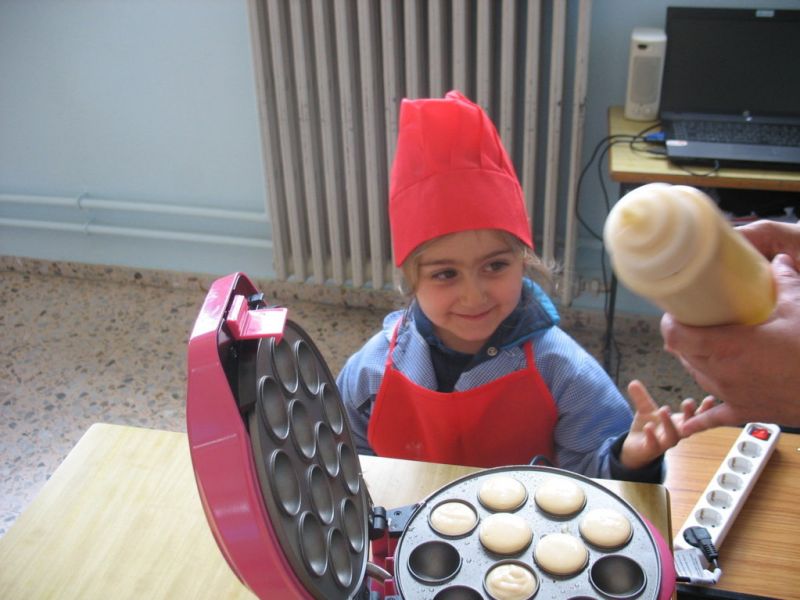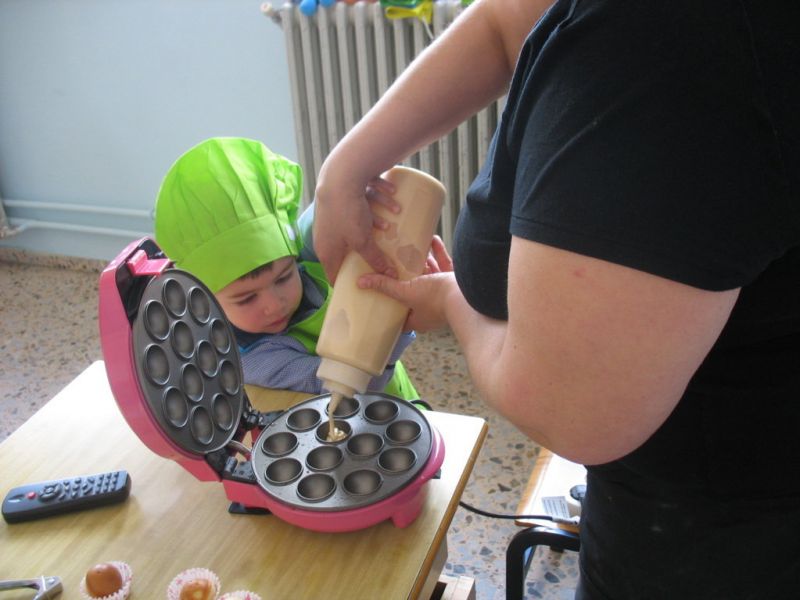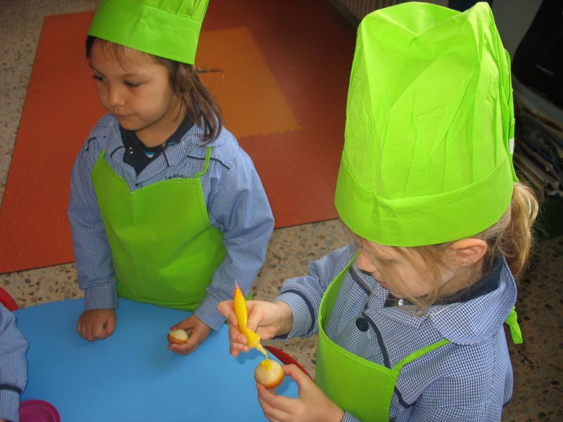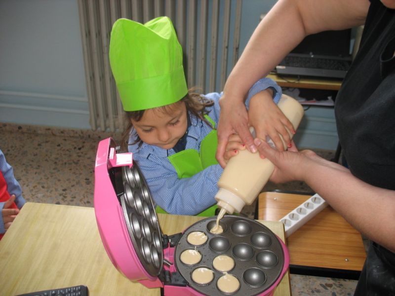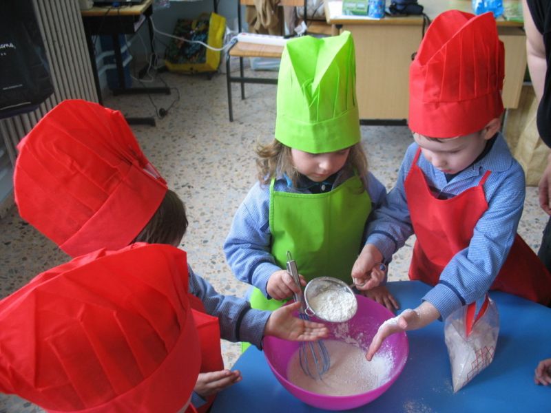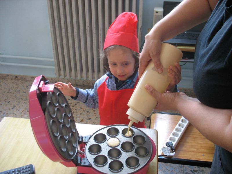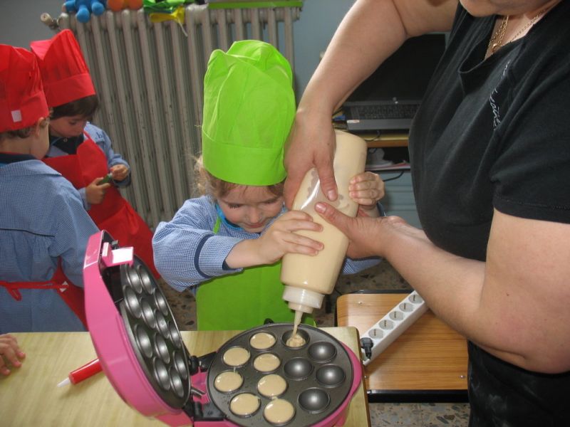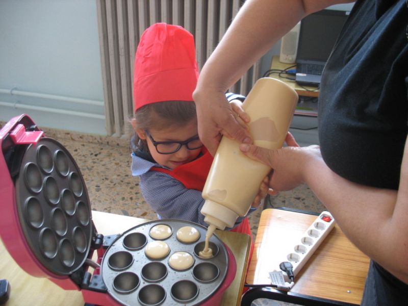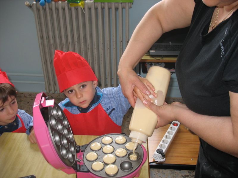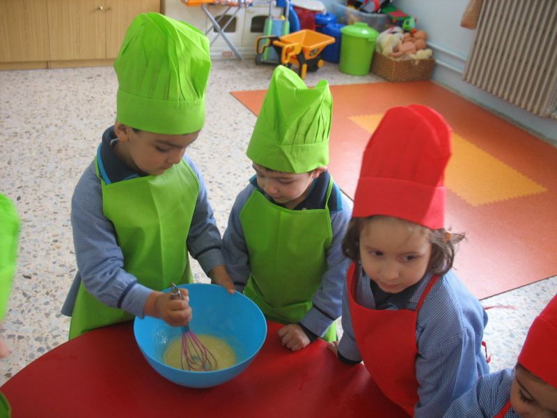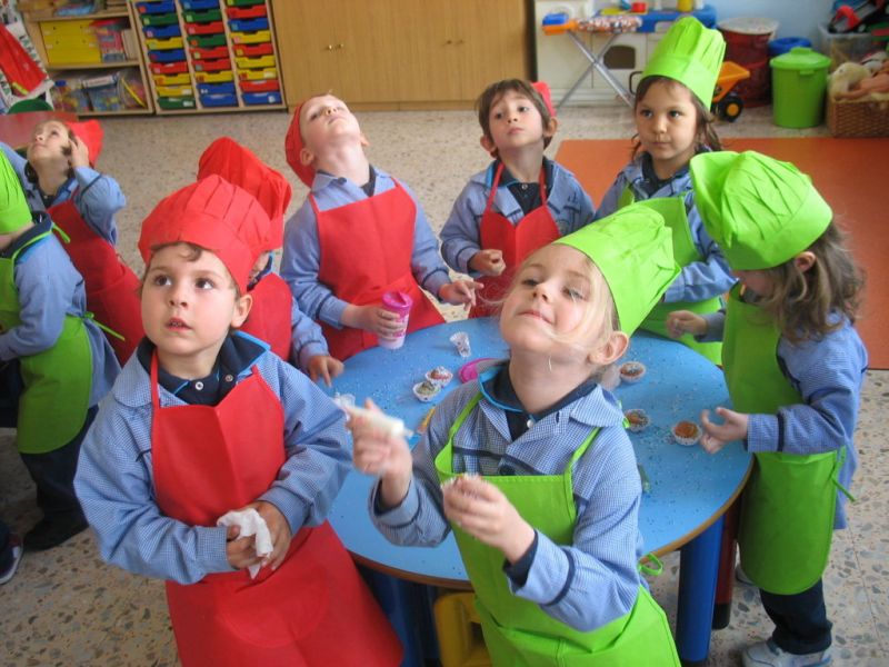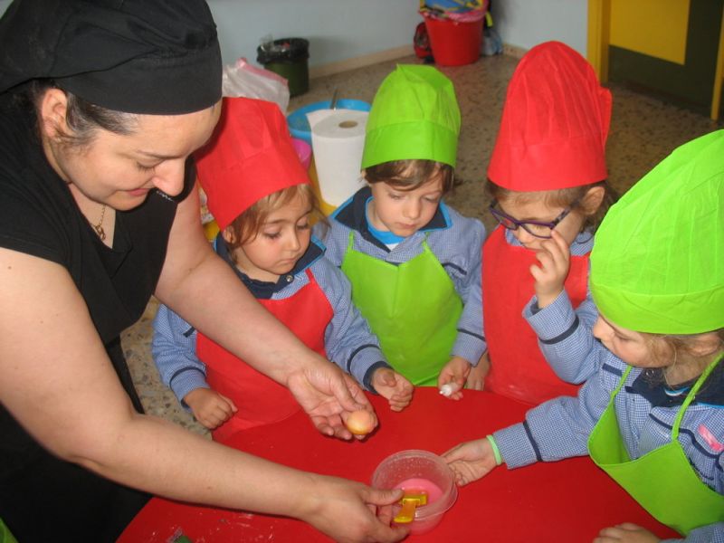 Hoy, los niñ@s de 1º de Infantil han tenido un taller de repostería, han amasado, batido y decorado sus propios dulces, todo de la mano de una experta cocinera.