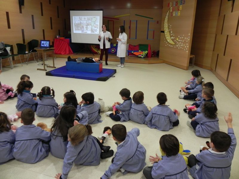 En la mañana de hoy, los niños y niñas de Guardería, Infantil y Primaria, hemos disfrutado de un interesante taller de enfermería preparado por dos enfermeras cualificadas y, gracias al AMPA de este Colegio.