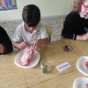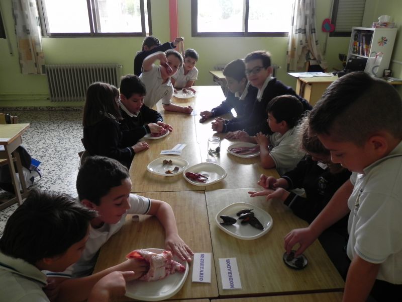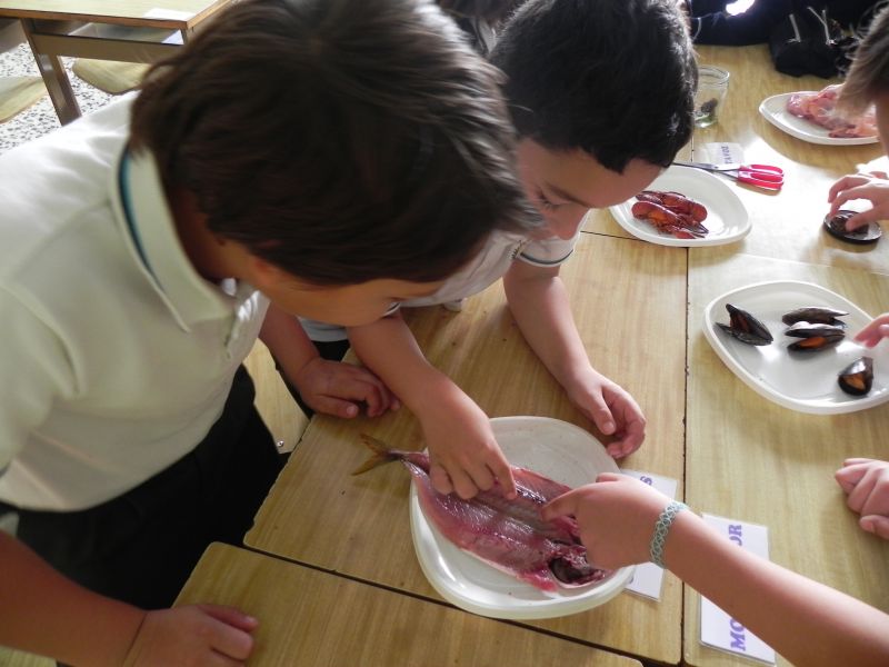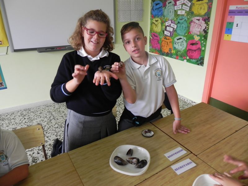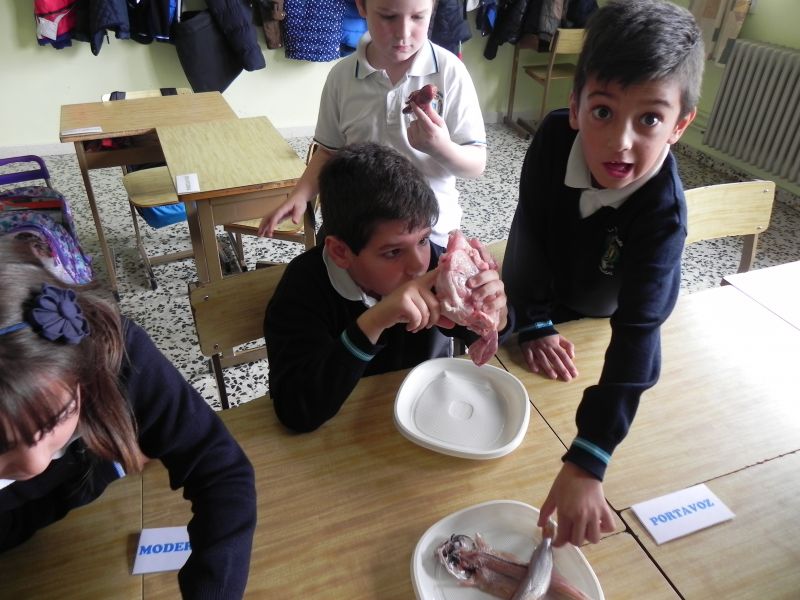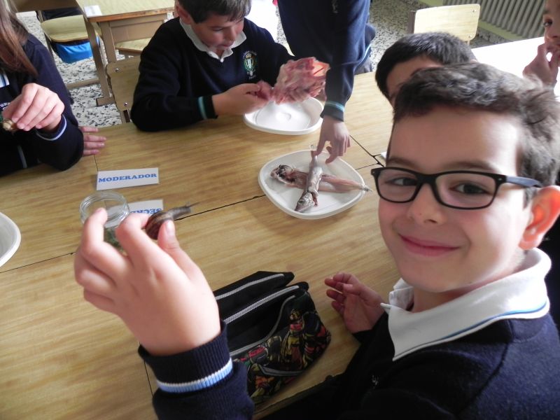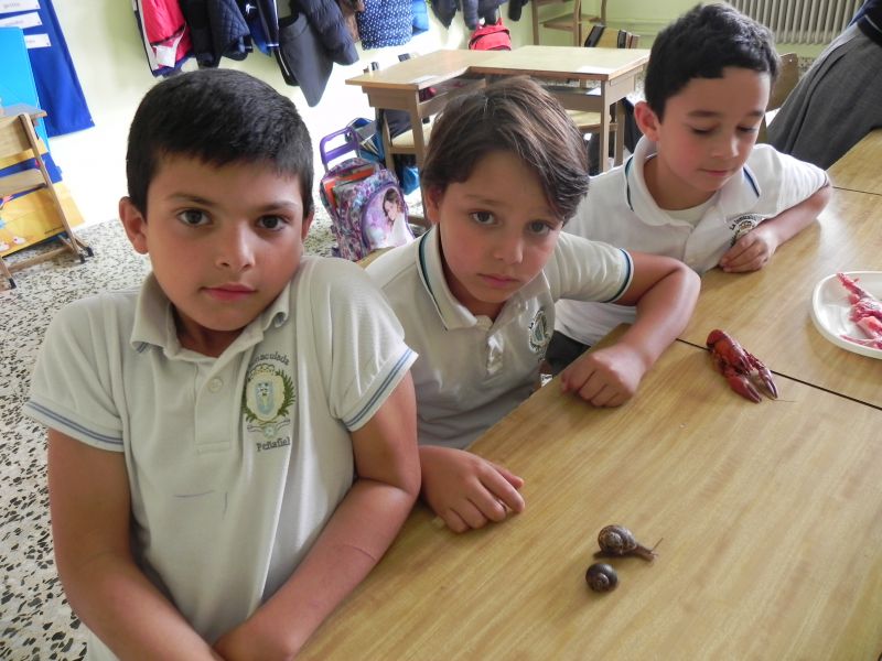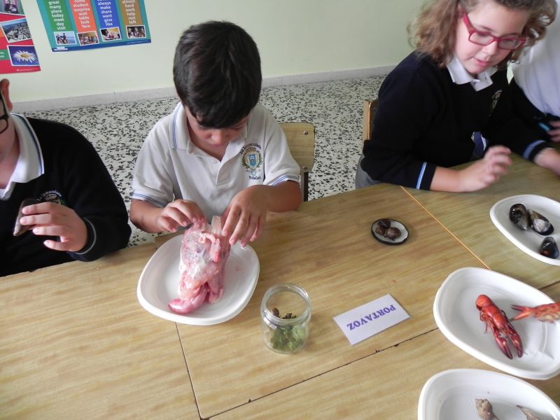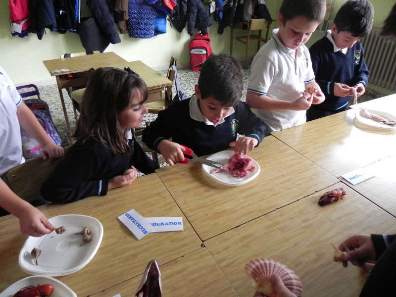 Los alumnos de 3º de Primaria están estudiando  los animales vertebrados e invertebrados, ésta mañana han podido comprobar, clasificar, comparar y enunciar las características de  algunos animales como mejillones, caracoles, bacaladitos, jureles, cangrejos, cañaillas, codornices, esqueletos de pollo, etc. Han tocado, olido, extirpado y experimentado todo lo que han estudiado y aprendido en esta unidad.