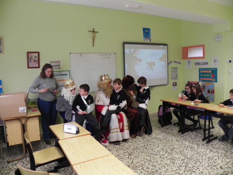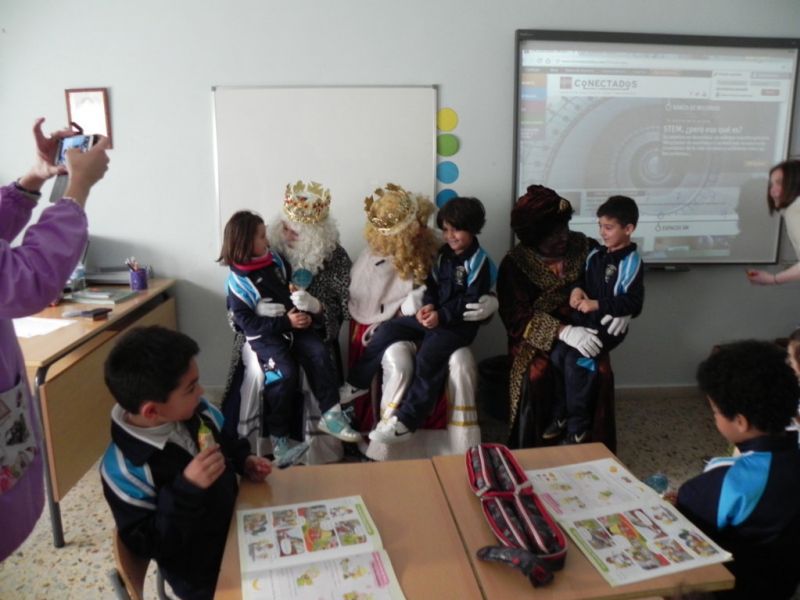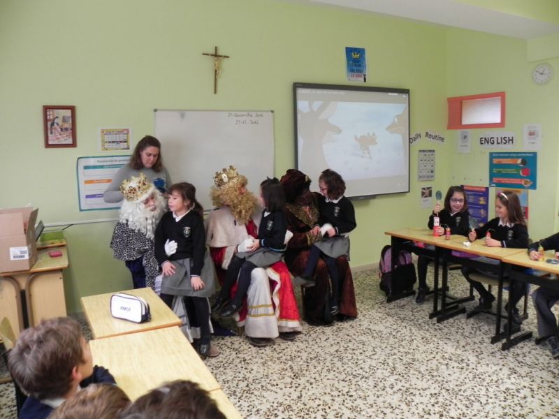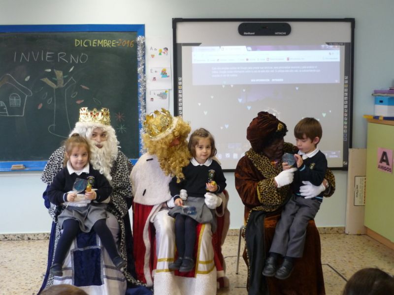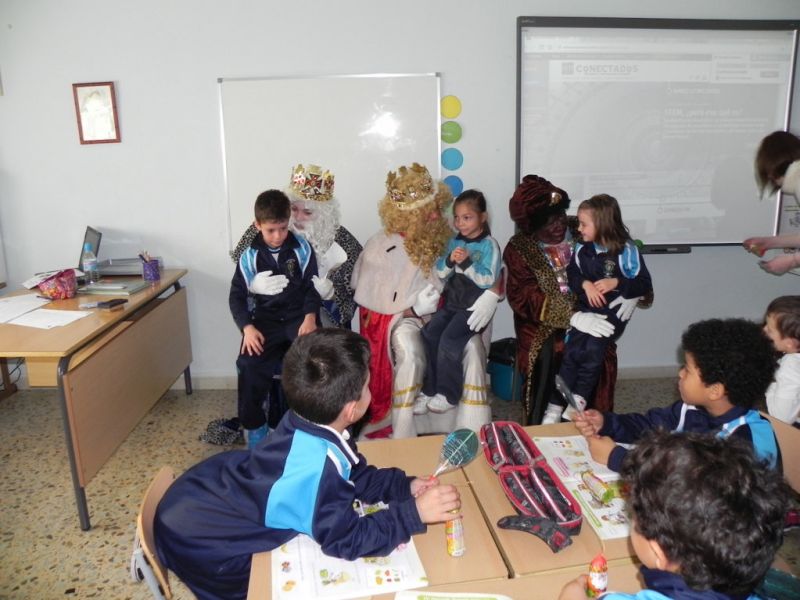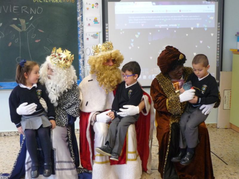 Como todos los años por estas fechas, sus Majestades los Reyes Magos de Oriente vienen a nuestro cole, ya que reciben la carta del AMPA, para visitarnos y hablar con cada uno de los alumnos, preguntándoles por su comportamiento y por los juguetes que les han pedido. A las 11:00 de la mañana llegaron cargados de ilusión, alegría y emoción por ver las caritas de los más pequeños y poder escuchar a los más mayores. Al final de la visita entregaron a cada niño un pequeño detalle.