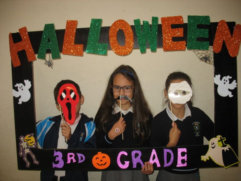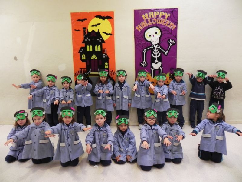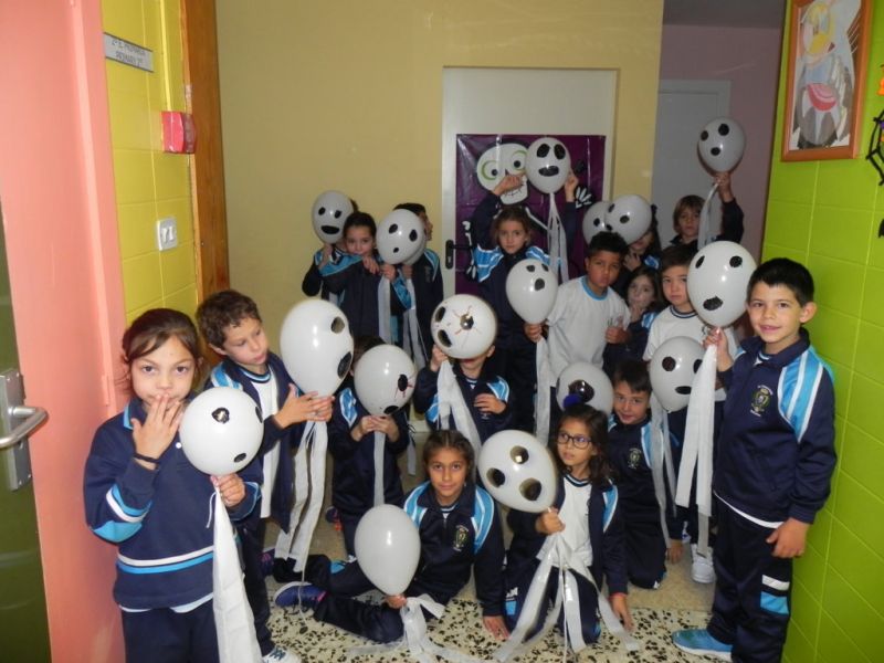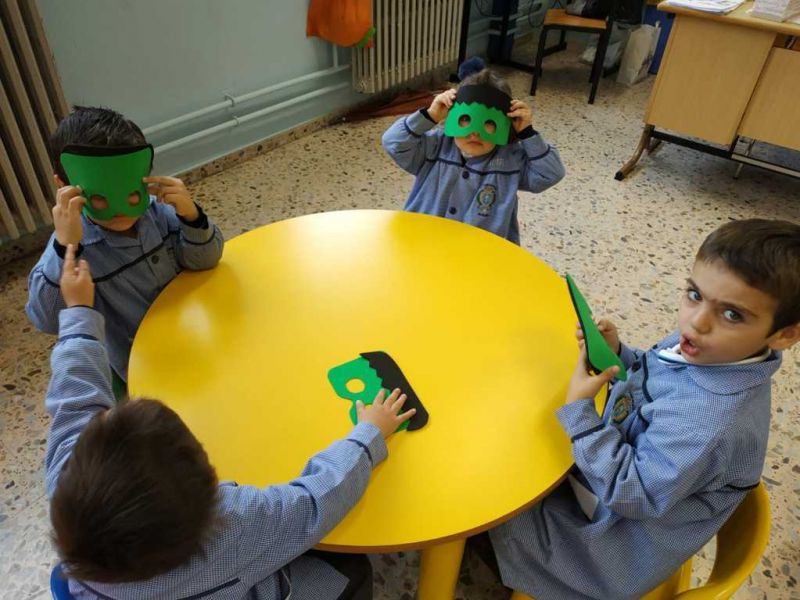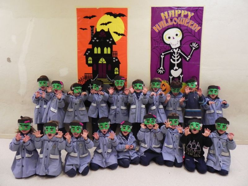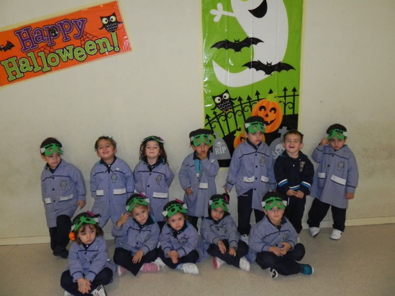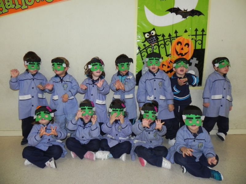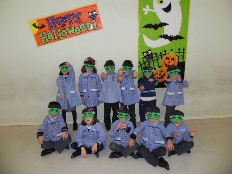Las sombras fantasmagóricas, brujas y casas encantadas se han adueñado de los pasillos y clases de nuestro colegio. Los alumnos de guardería han hecho unos divertidos colgantes de fantasmas y los de E. Infantil de 3, 4 y 5 años, unas bonitas máscaras de Frankenstein.