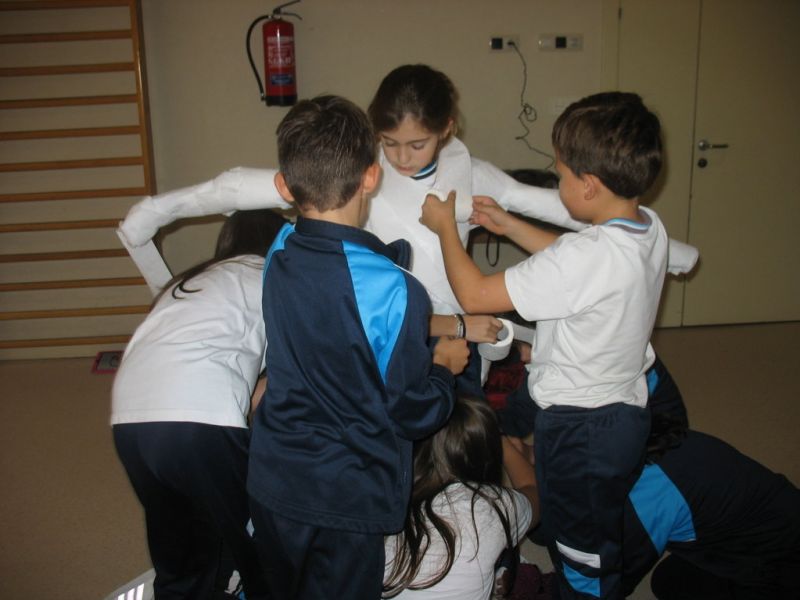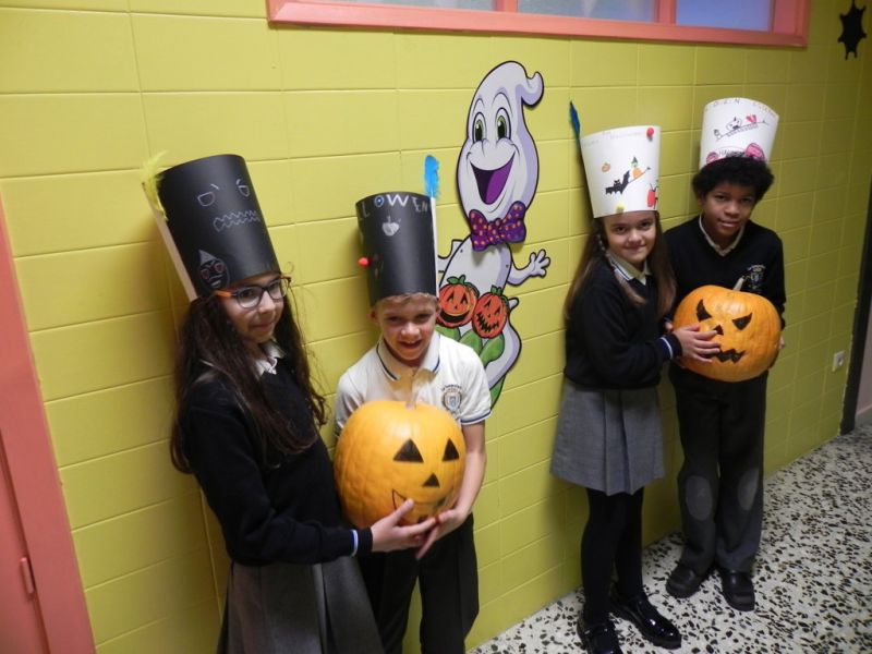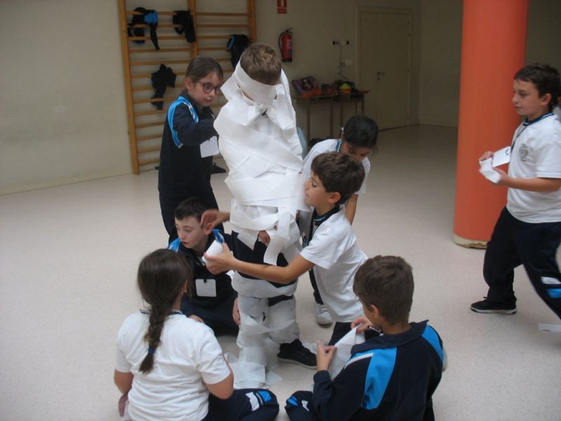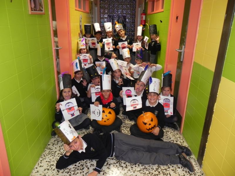En Primaria han trabajado más en profundidad esta festividad realizando manualidades tenebrosas, como bolsitas monstruosas, pequeñas brujas, piedras decorativas para guardar golosinas, máscaras, gorros monstruosos, tarjetas vampiro, marionetas de drácula… y en E. Física, juegos relacionados con Halloween además de ahondar en el vocabulario, raíces y orígenes de dicha tradición.