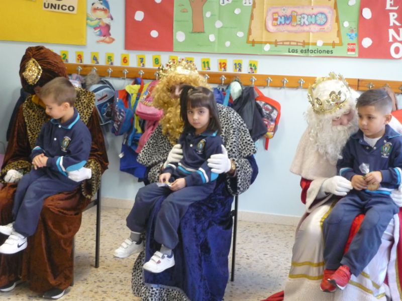 Como todos los años por estas fechas, sus Majestades los Reyes Magos de Oriente vienen a nuestro cole, ya que reciben la carta del AMPA, para visitarnos y hablar con cada uno de los alumnos, preguntándoles por su comportamiento y por los juguetes que les han pedido. A las 11:00 de la mañana llegaron cargados de ilusión, alegría y emoción por ver las caritas de los más pequeños y poder escuchar a los más mayores. Al final de la visita entregaron a cada niño un pequeño detalle.