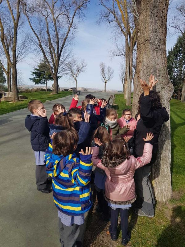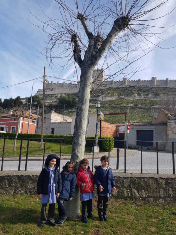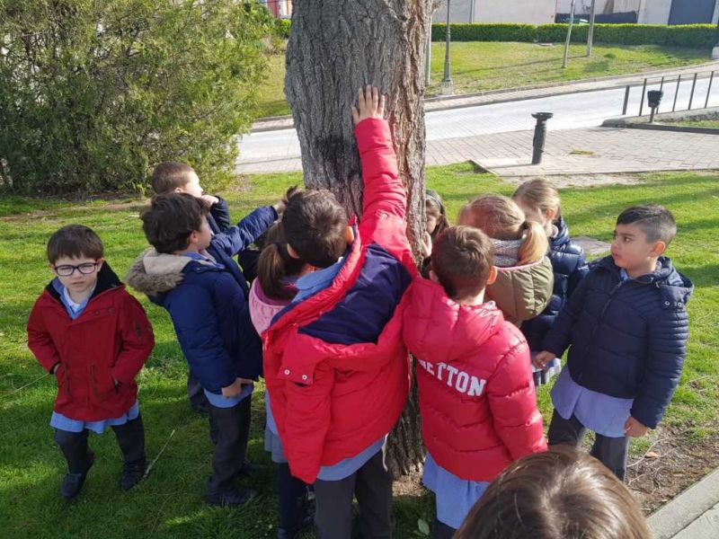 Los alumnos de 3º de E. Infantil y 3º de Primaria han realizado su primera jornada mediambiental. Han estado guiados por Soraya, especialista de la Diputación de Valladolid, que les ha explicado todos los cambios que se producen en los árboles de la localidad, así como la fauna autóctona. Los alumnos tienen un cuaderno guía donde irán recogiendo dibujos, anotaciones y curiosidades sobre la flora y fauna aprendida. Esperaremos impacientes, la siguiente jornada.