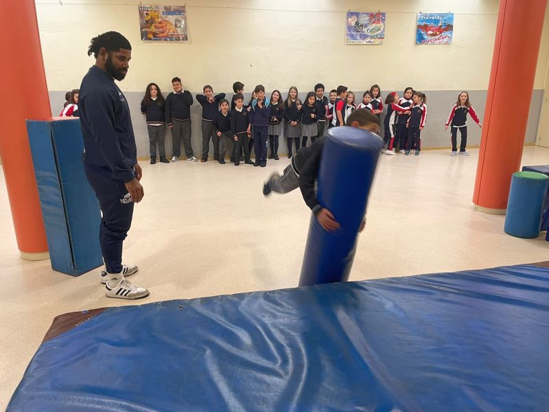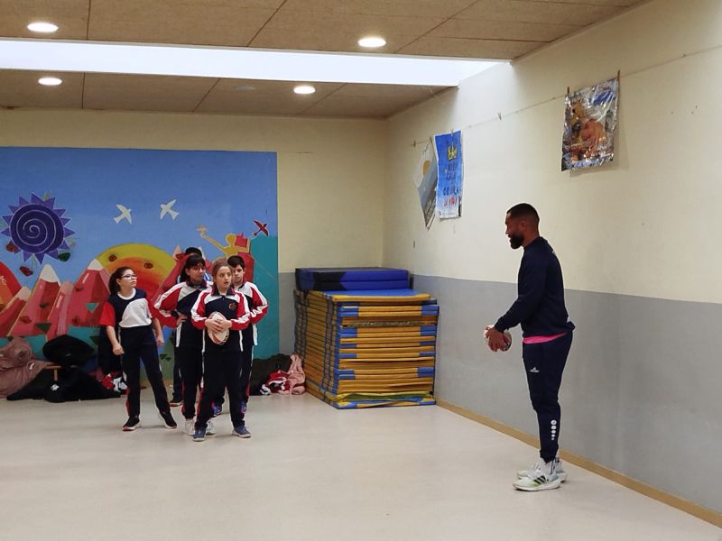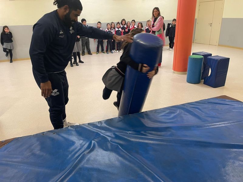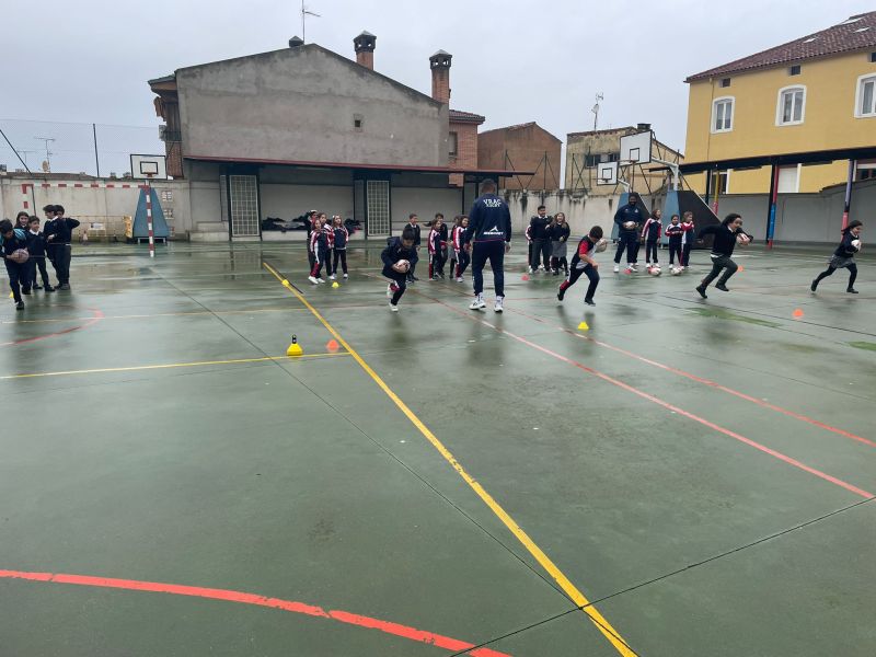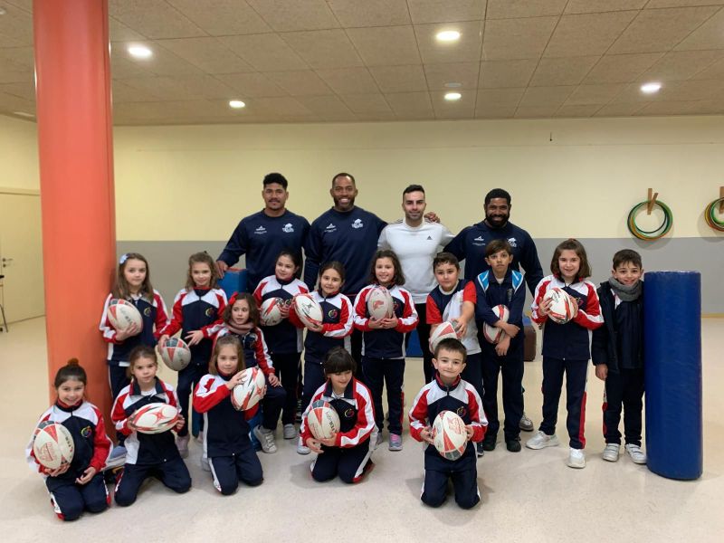 East Timor Viliamu, Carlos Gavidi y Jerry Surumi internacionales con la selección española y jugadores de división de honor del rugby VRAC, han realizado una interesante actividad de promoción en nuestro colegio, juegos, dinámicas y divertidas propuestas han dinamizado la mañana y acercado este deporte a todos los alumnos de primaria.