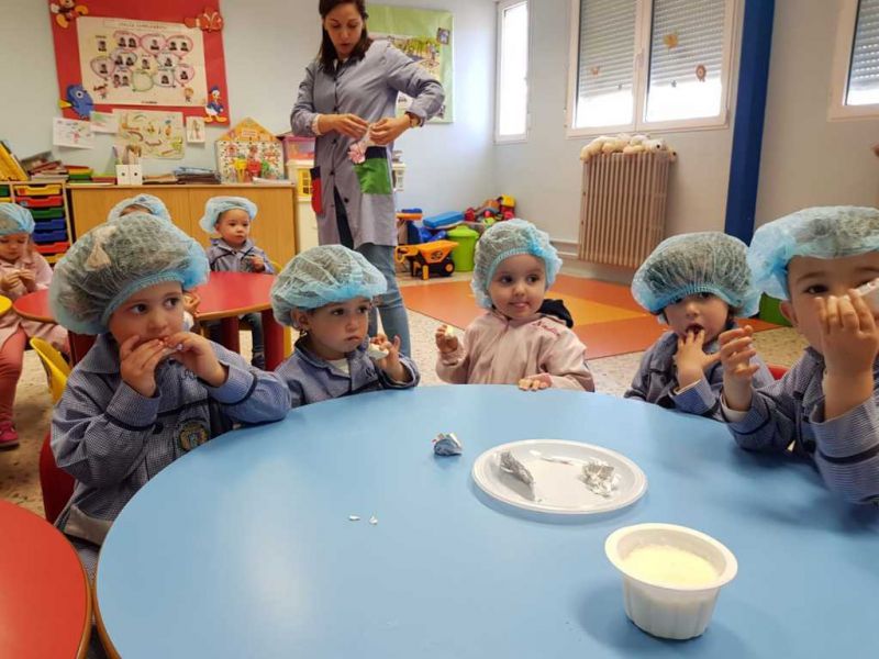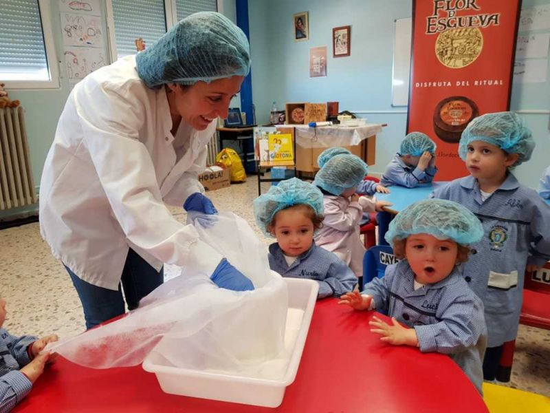 Los niñ@s de Educación Infantil han tenido hoy un taller de «Elaboración de queso», impartido por profesionales del sector de la empresa «Lactalis» de nuestra localidad, donde se elabora el famoso y riquísimo queso «Flor de Esgueva» y organizado por el AMPA de nuestro cole. Los niños se han convertido en pequeños queseros por unas horas, siendo un taller muy práctico, dinámico y sensorial.