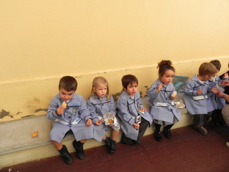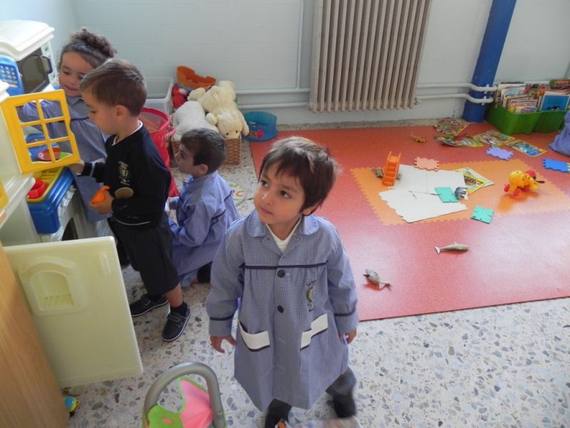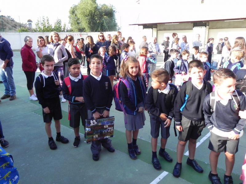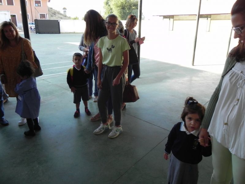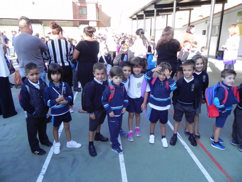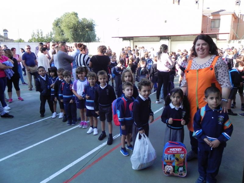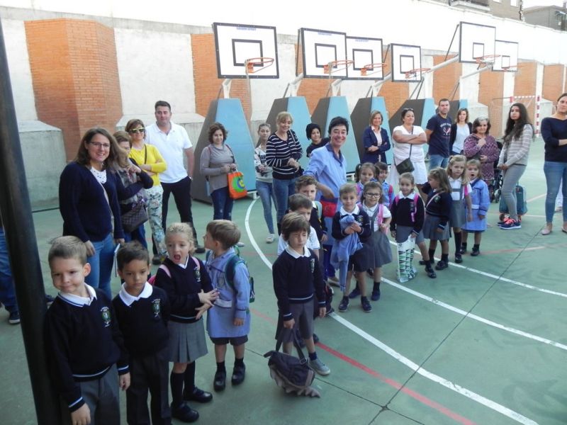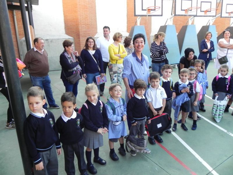 Pero no todo han sido risas y alegría, los alumnos de 1º de Infantil para los que hoy ha sido su primer día de cole han entrado a la clase con un poco de miedo, pero contentos porque iban de la mano de sus padres y madres. Cuando ha llegado la hora de despedirse de sus familiares, en la carita de algunos niños se ha dibujado la tristeza y alguna que otra lagrimilla ha recorrido sus mejillas. Las lágrimas han ido desapareciendo poco a poco con los abrazos, besos y canciones de las señoritas.