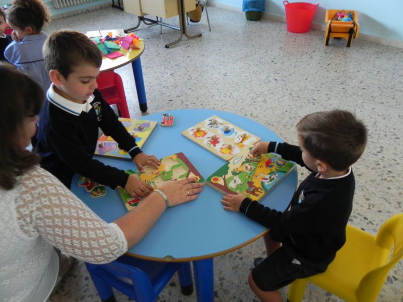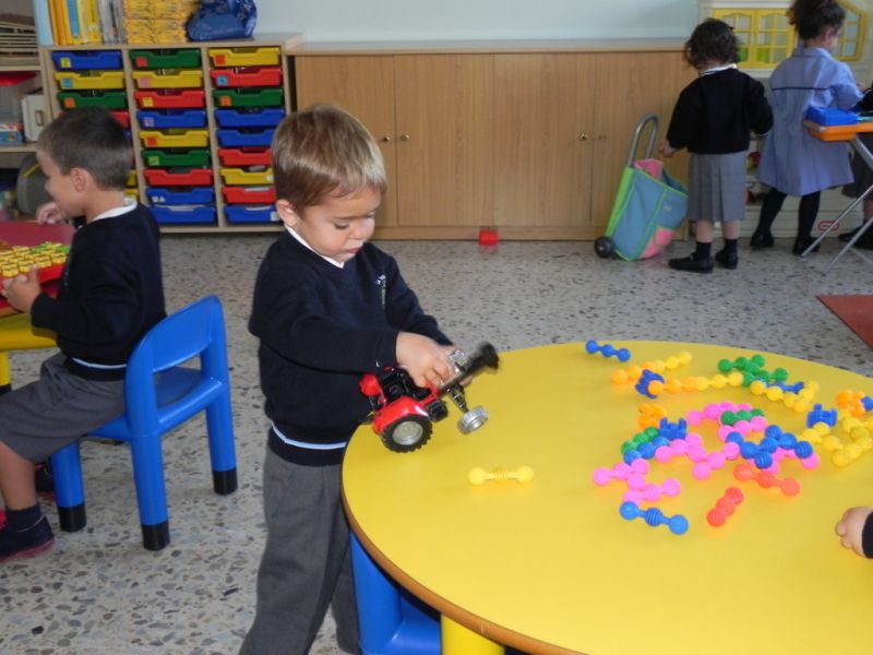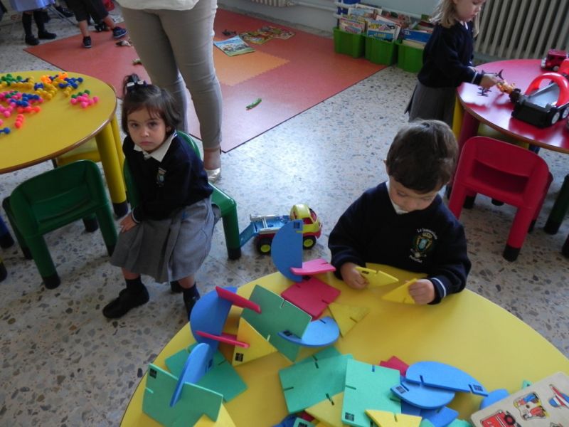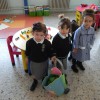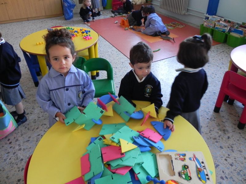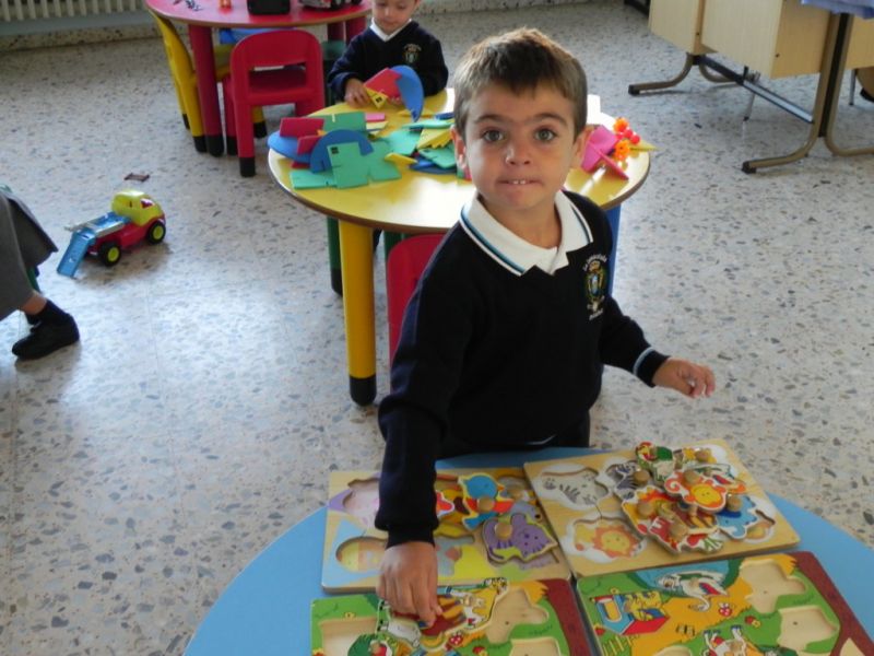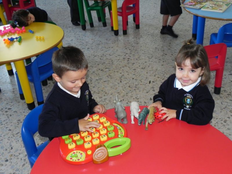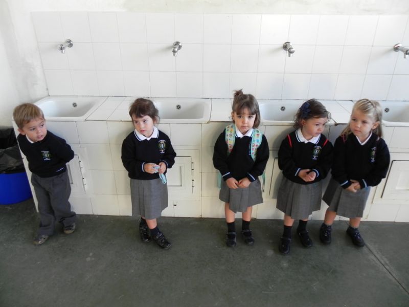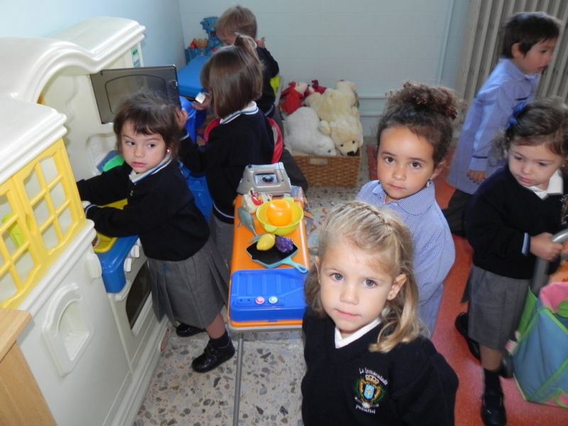 Pero no todo han sido risas y alegría, los alumnos de 1º de Infantil para los que hoy ha sido su primer día de cole han entrado a la clase con un poco de miedo, pero contentos porque iban de la mano de sus padres y madres. Cuando ha llegado la hora de despedirse de sus familiares, en la carita de algunos niños se ha dibujado la tristeza y alguna que otra lagrimilla ha recorrido sus mejillas. Las lágrimas han ido desapareciendo poco a poco con los abrazos, besos y canciones de las señoritas.