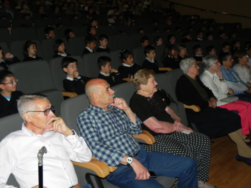 Un año más el Colegio La Inmaculada celebró su vigésima «Fiesta de los abuelos». Días antes los alumnos de guardería, Infantil, 1º y 2º de Primaria, habían trabajado en clase la figura de los abuelos, mostrando fotos, contando vivencias, así como todas las cosas buenas que los abuelos hacen por ellos. Los niños estaban deseando ir al auditorio para ver a sus abuelos y poderles demostrar sus dotes de artistas y los abuelos esperaban impacientes y emocionados la entrada de sus nietos en el auditorio. A las 11:00 de la mañana empezaban su gran fiesta, con una presentación donde vimos a los abuelos con sus nietos, donde pudimos comprobar las risas de los más pequeños al reconocerse y alguna lágrima de los abuelos por ver a sus pequeños junto a ellos. Pero la fiesta continuaba, los alumnos nos deleitaban con bailes y canciones, derrochando alegría, desparpajo y espontaneidad sobre el escenario. Una vez acabado el acto en el auditorio, todos fueron al patio del colegio a tomar un refresco.